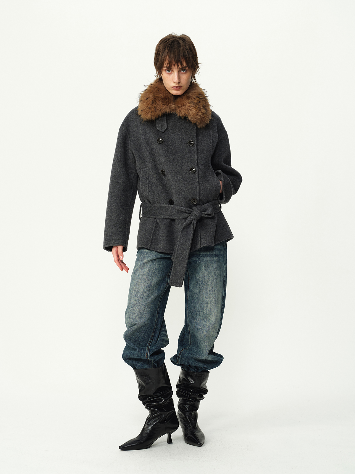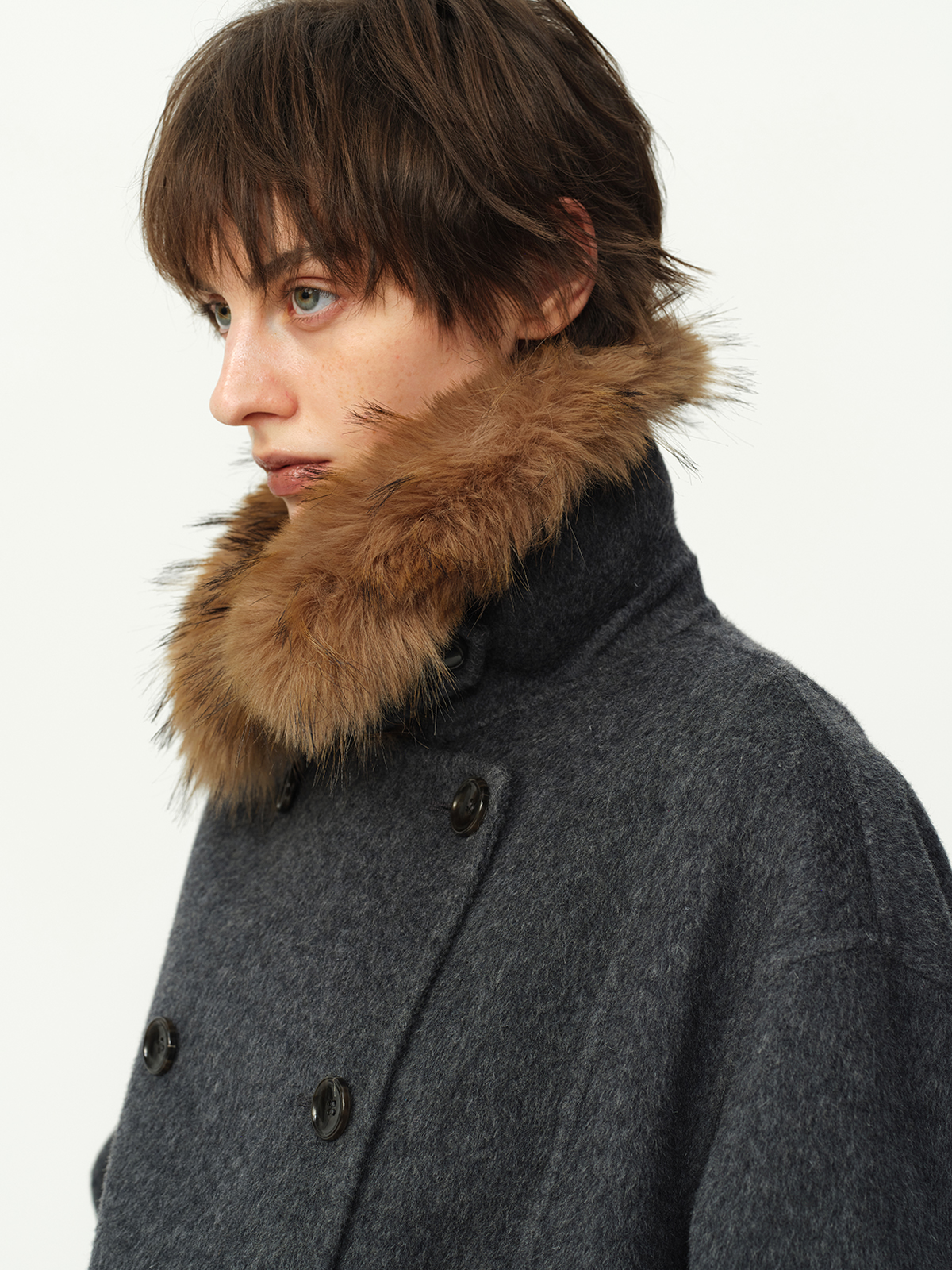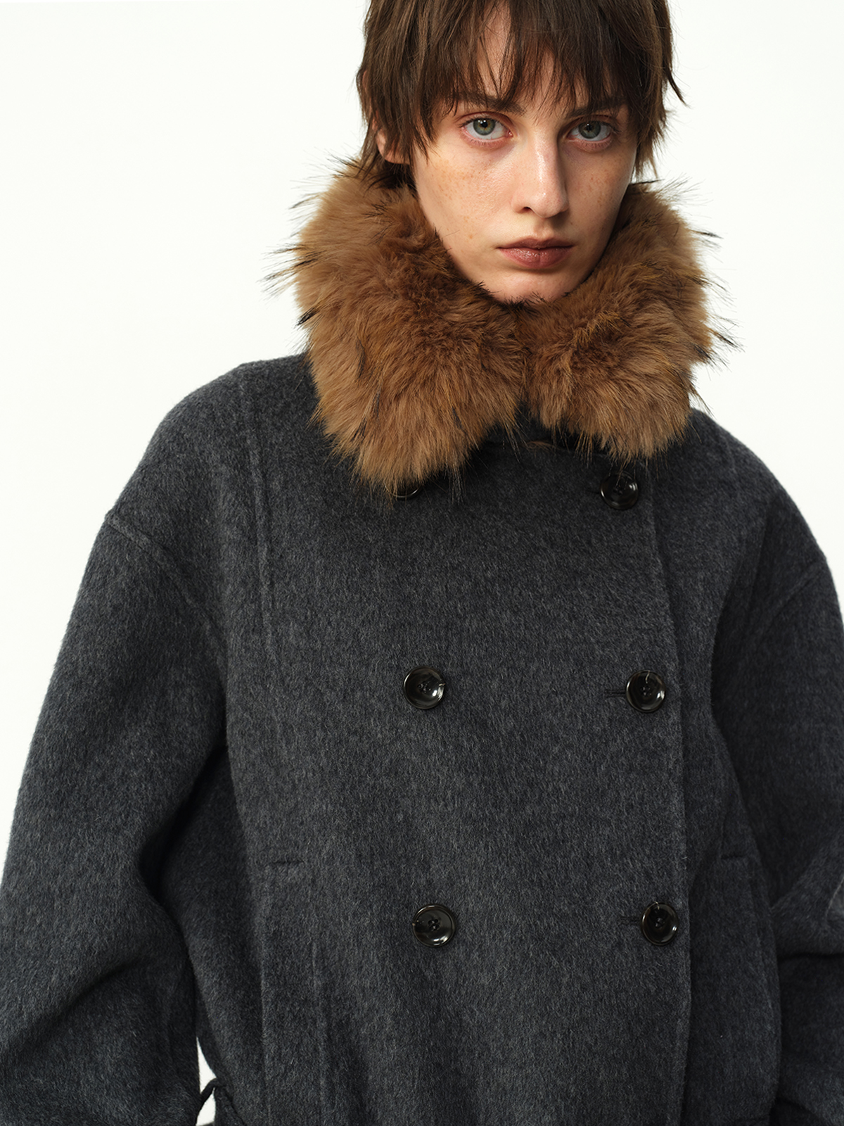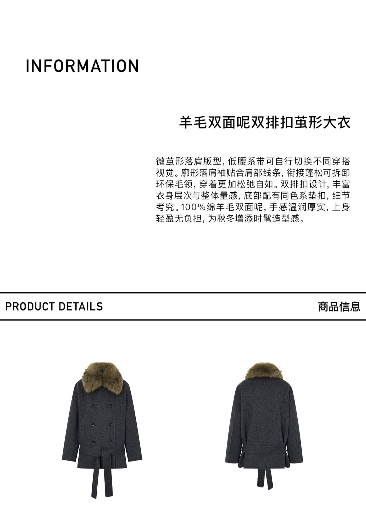 Evistub girls/E-5DWT1429/绵羊毛排扣双面呢大衣