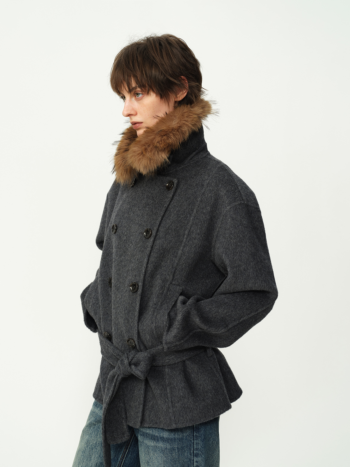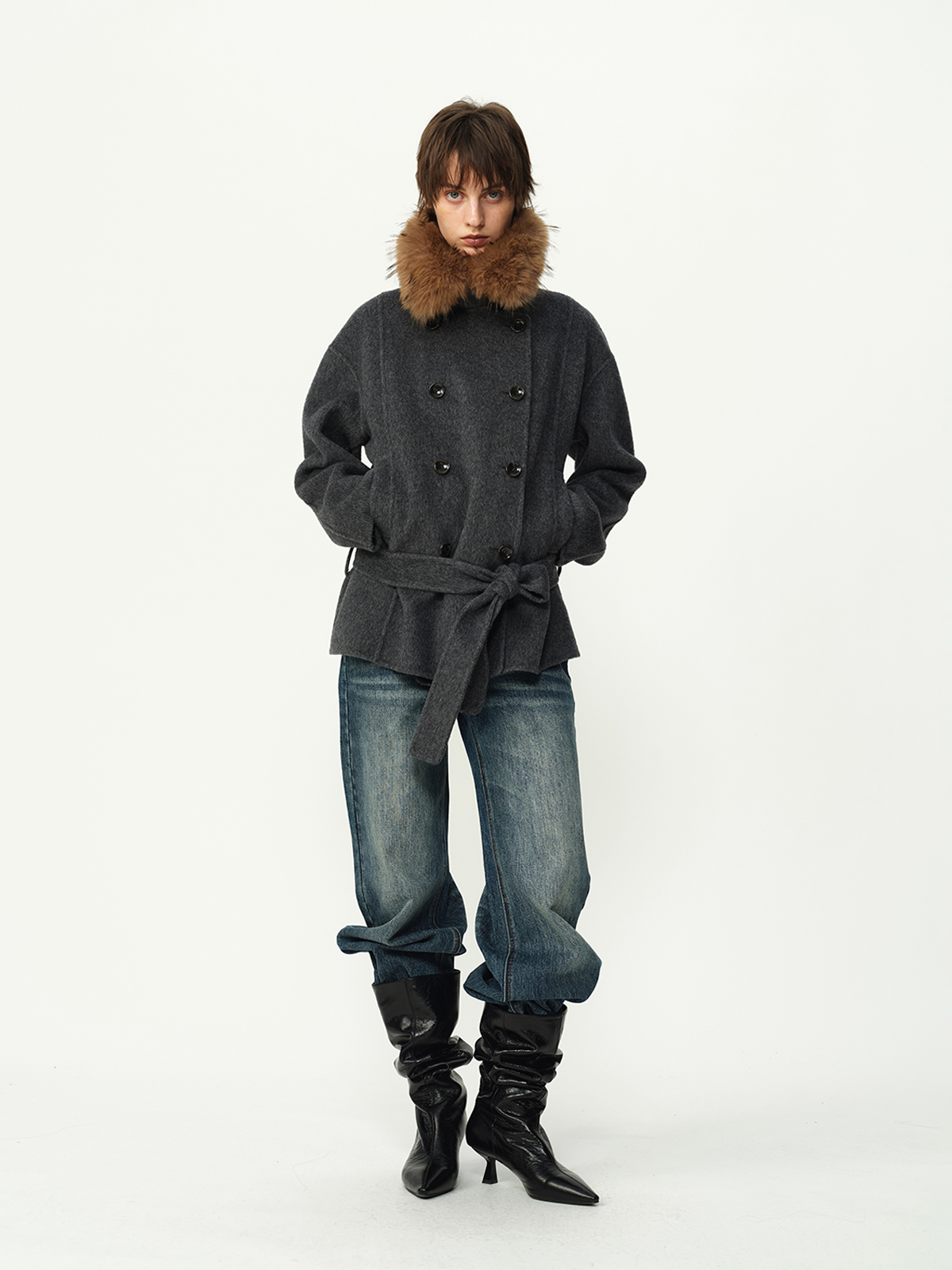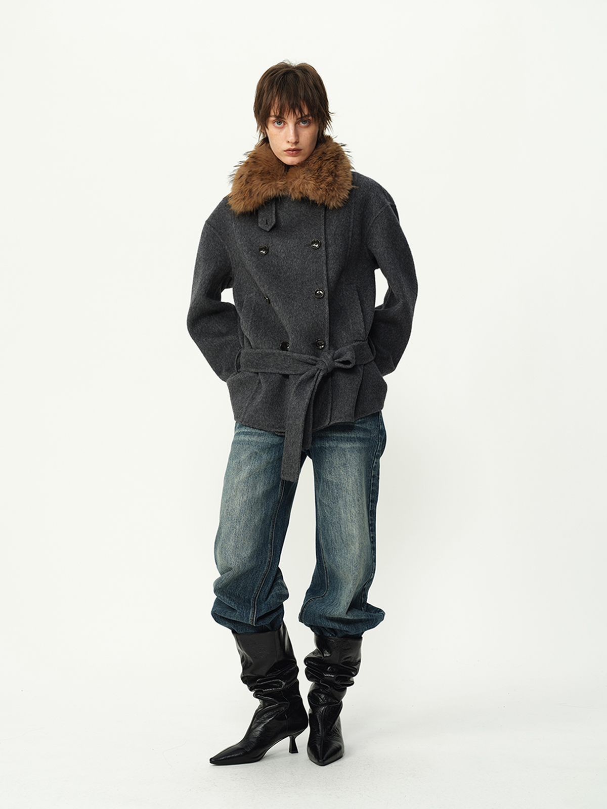 Evistub girls/E-5DWT1429/绵羊毛排扣双面呢大衣