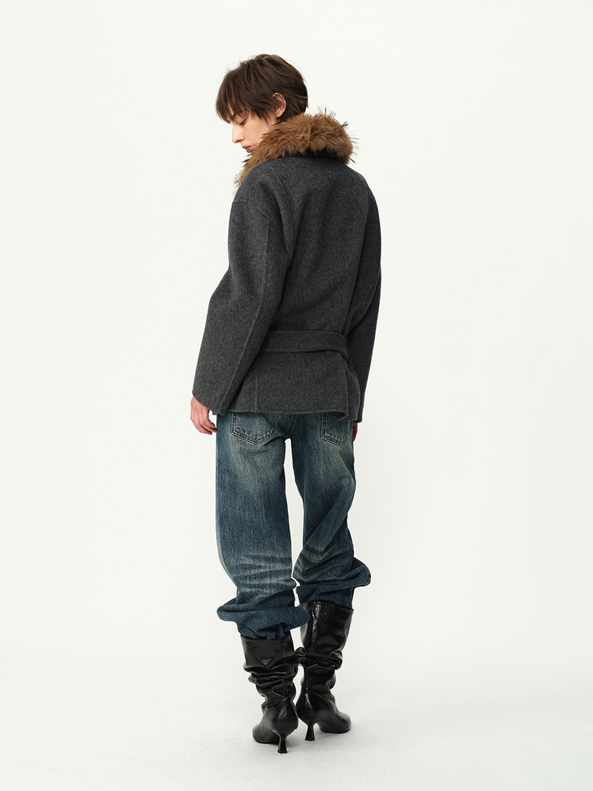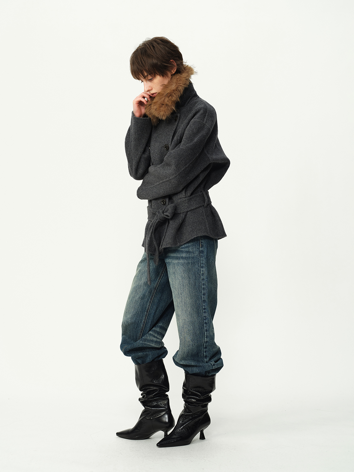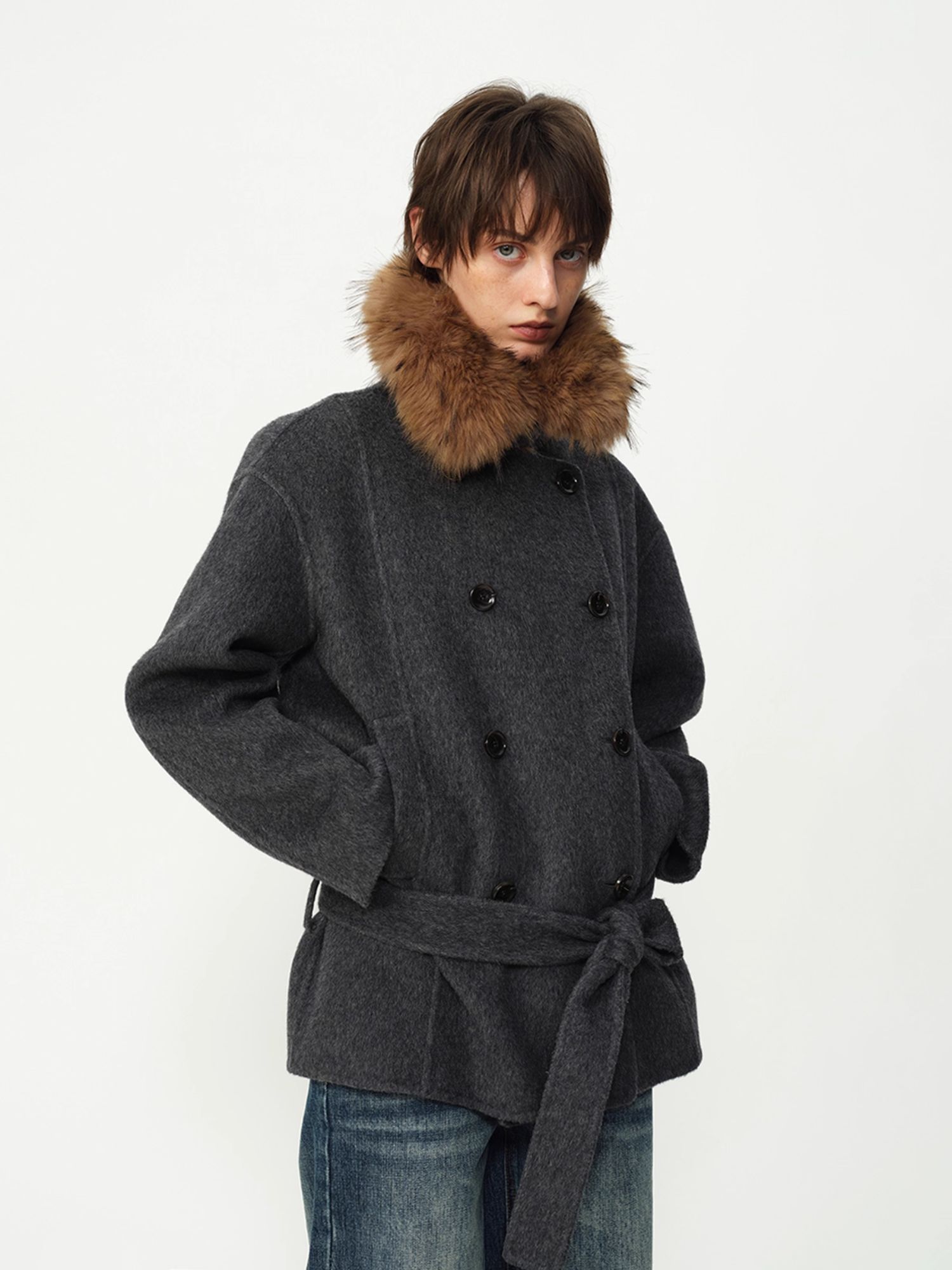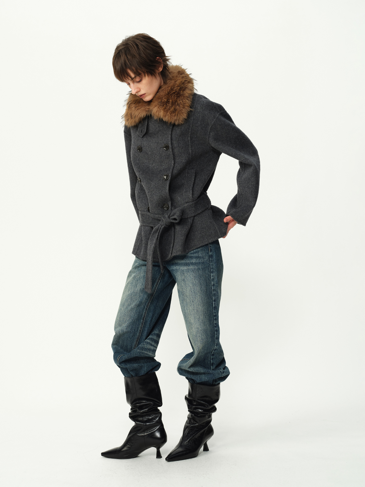 Evistub girls/E-5DWT1429/绵羊毛排扣双面呢大衣