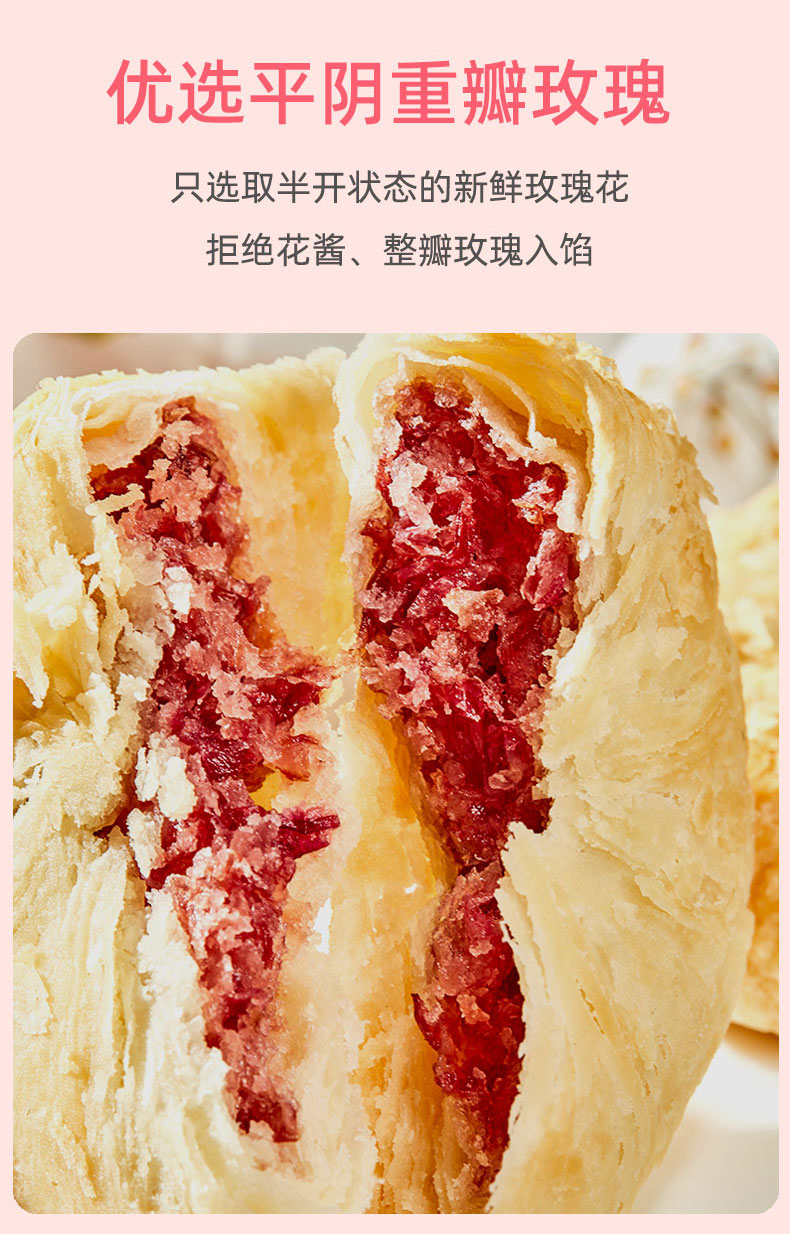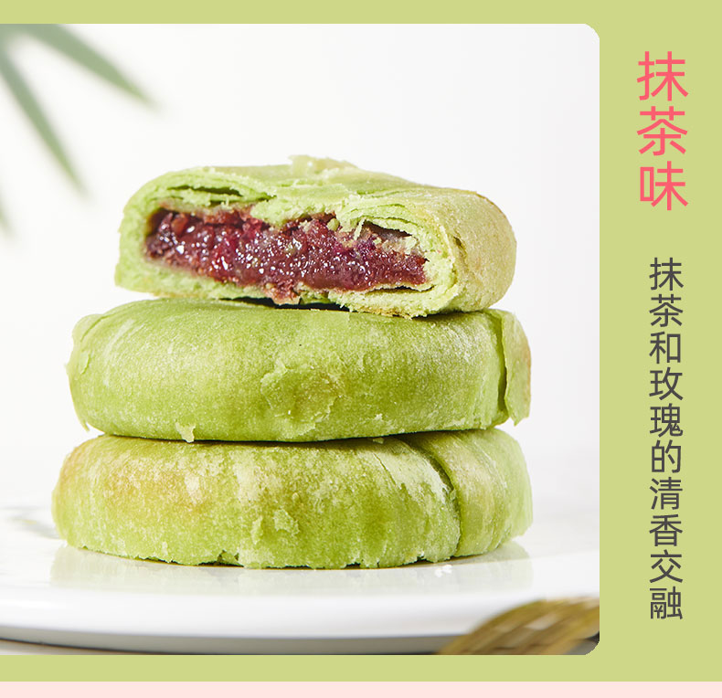 野风酥山东特产玫瑰鲜花饼200g盒装(抹茶味紫薯味玫瑰味)