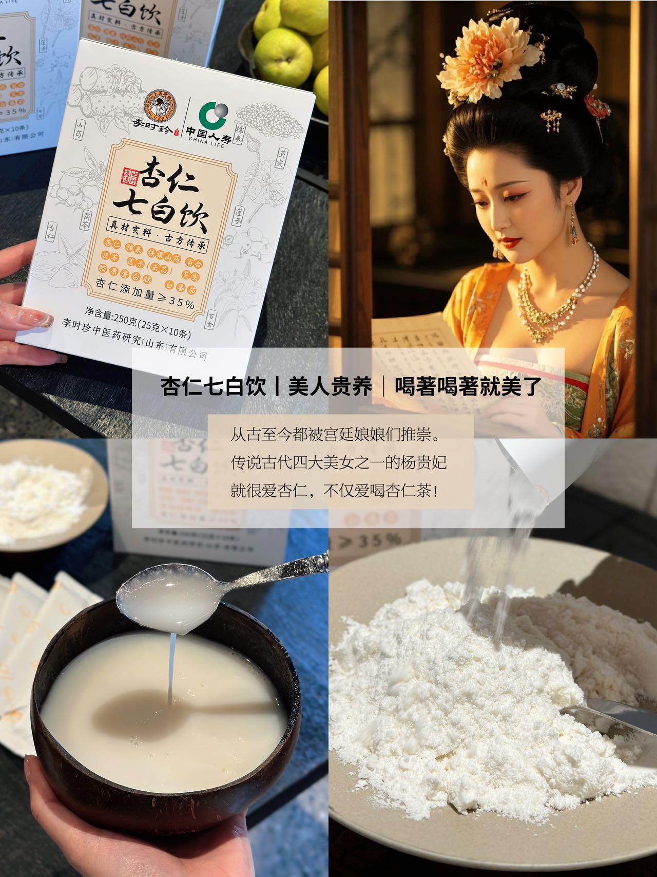 【买2送1,买3送2】李时珍·杏仁七白饮 七种白色食材 内调美白 焕亮肌肤 粉质细腻 口感顺滑 独立小袋包装 冲泡即饮 25g*10条/盒