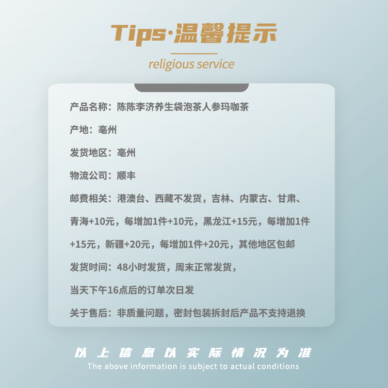 【陈李济人参玛咖茶】养生袋泡茶 参味香醇热水冲泡饮茶 100克 (20包)/1盒