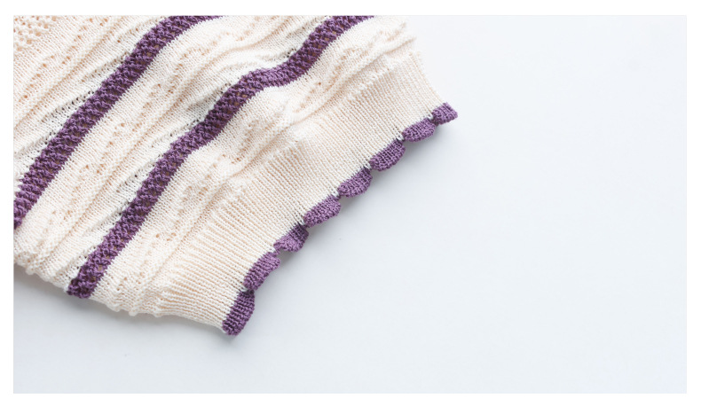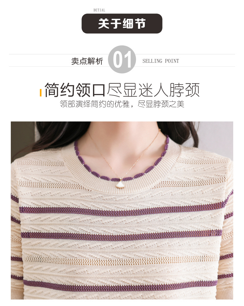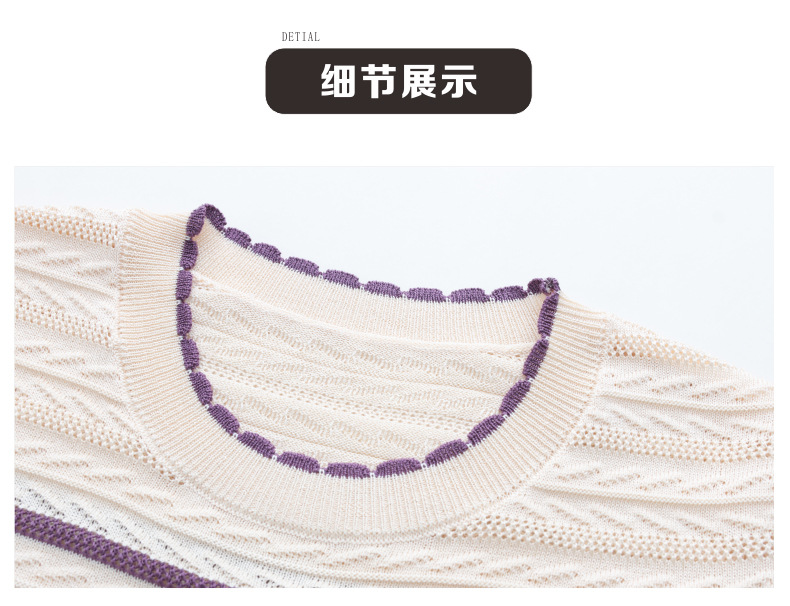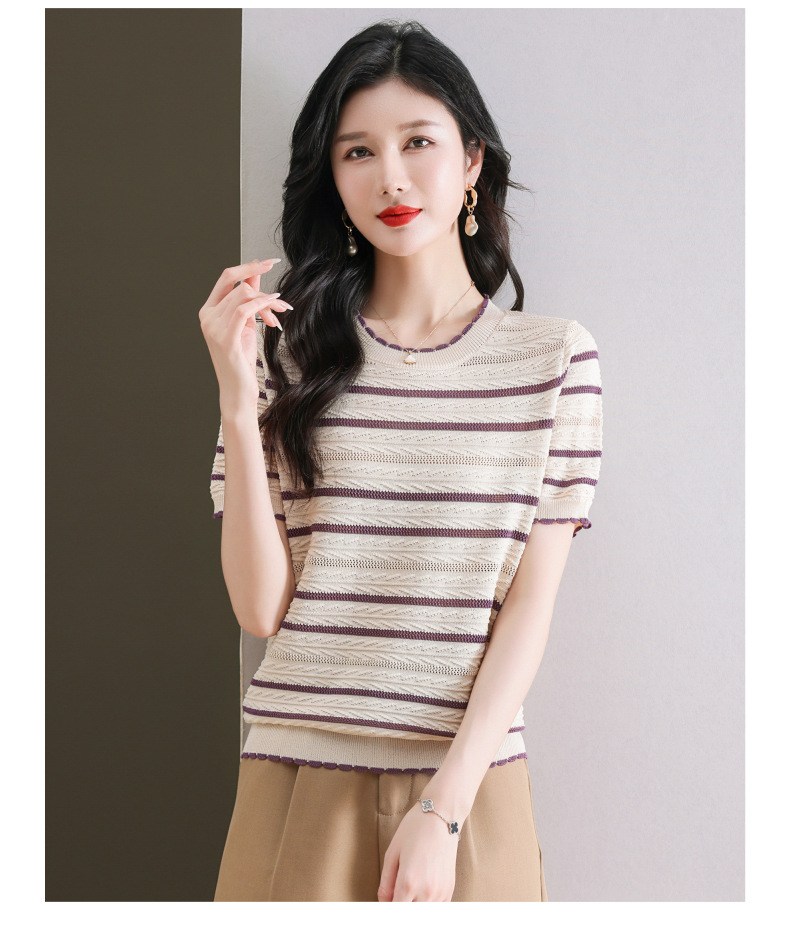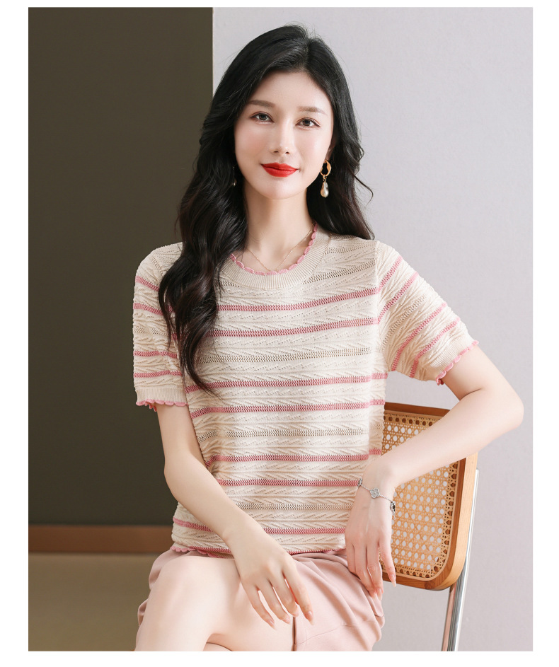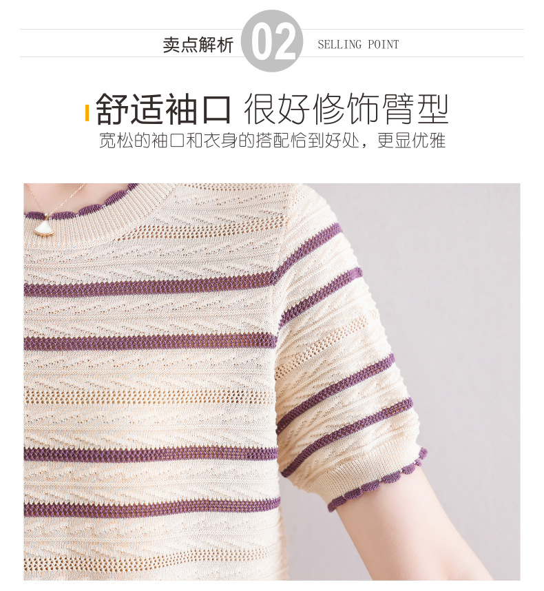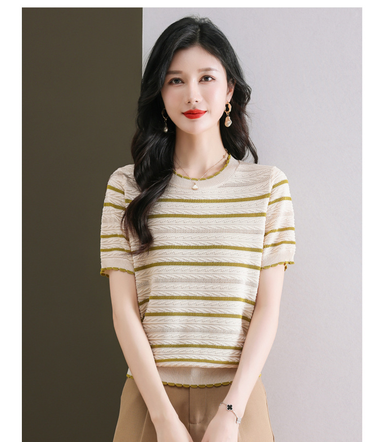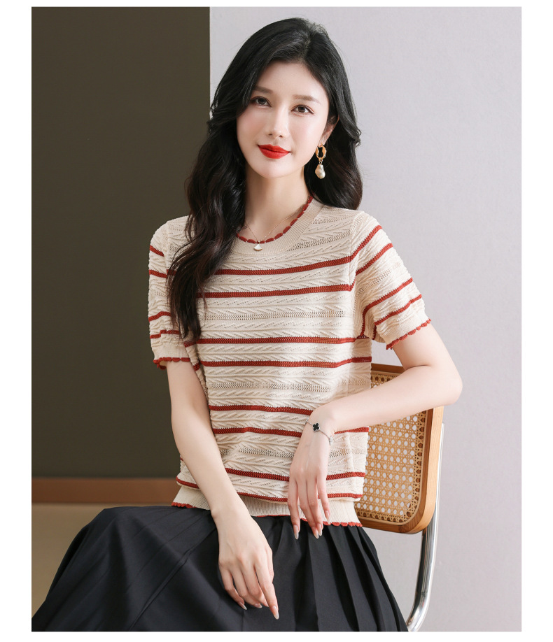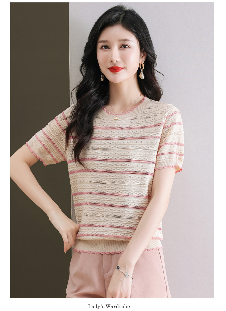 短袖针织减龄圆领,短款配裙子上衣冰丝条纹小衫CC-101-90325