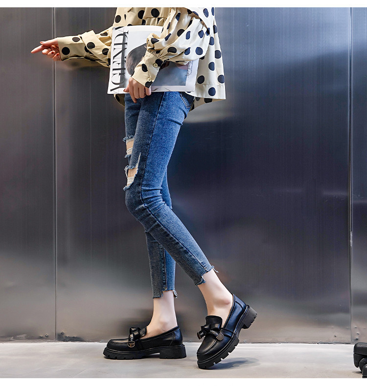 头层牛皮玛丽珍鞋新款休闲粗跟真皮鞋一脚蹬鞋ML8978