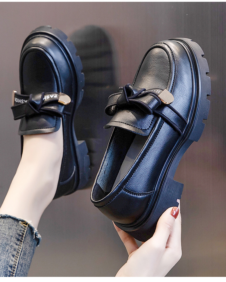 【预售5天】复古豹纹头层牛皮蝴蝶结单鞋女高级感春秋季粗跟低跟浅口小皮鞋LD&7280