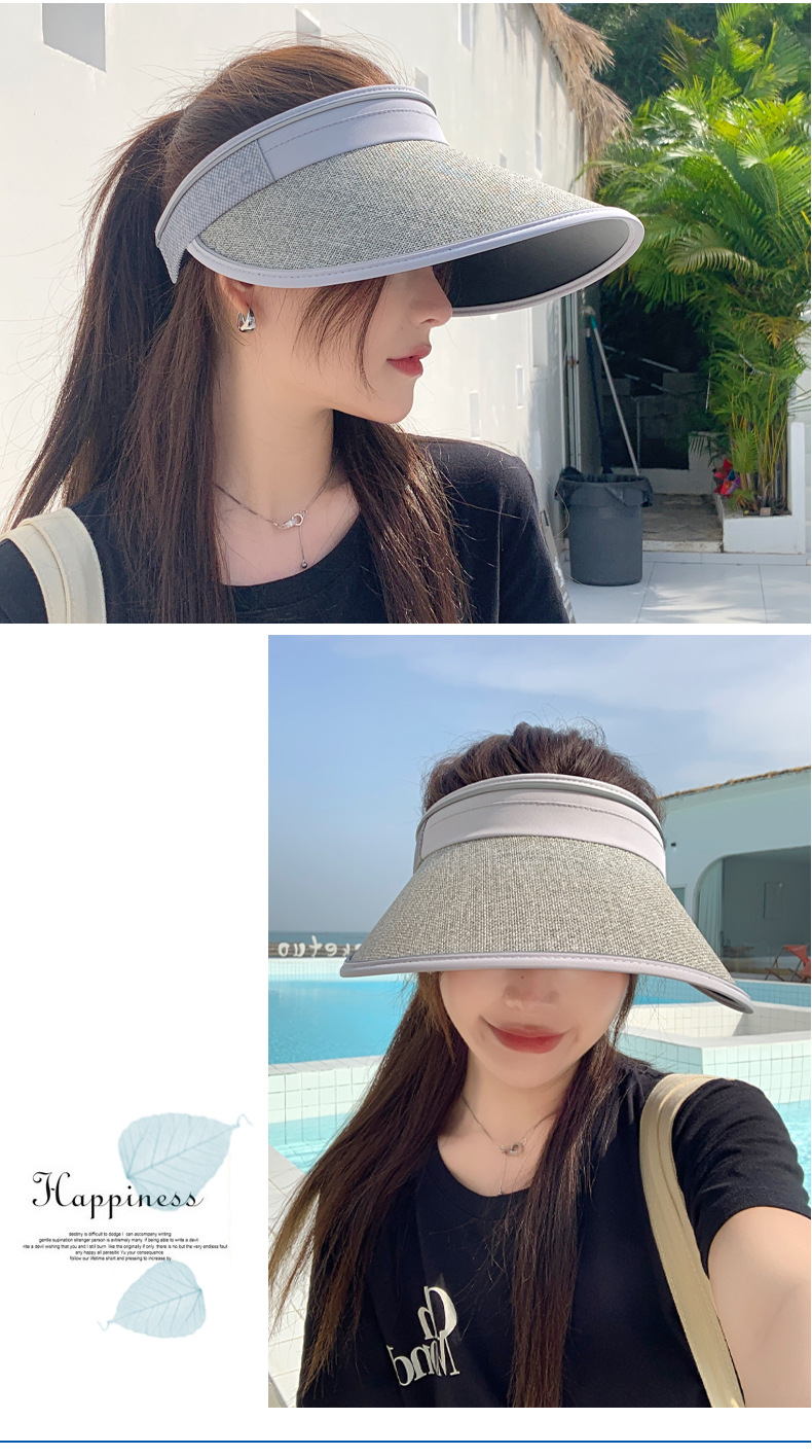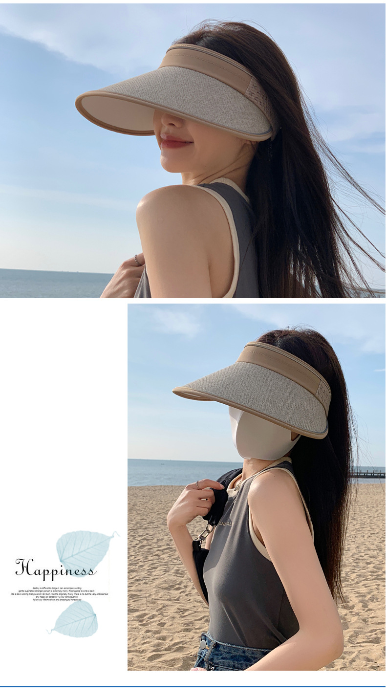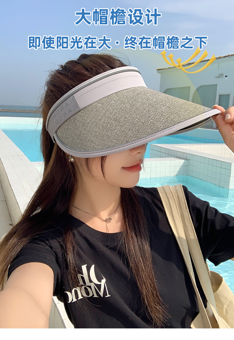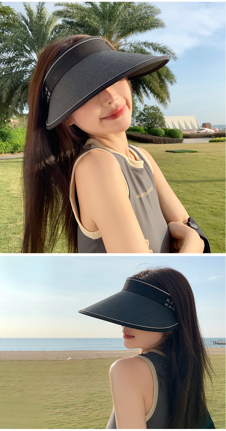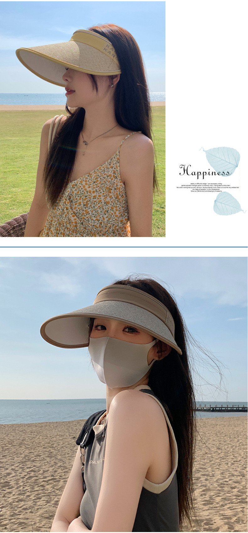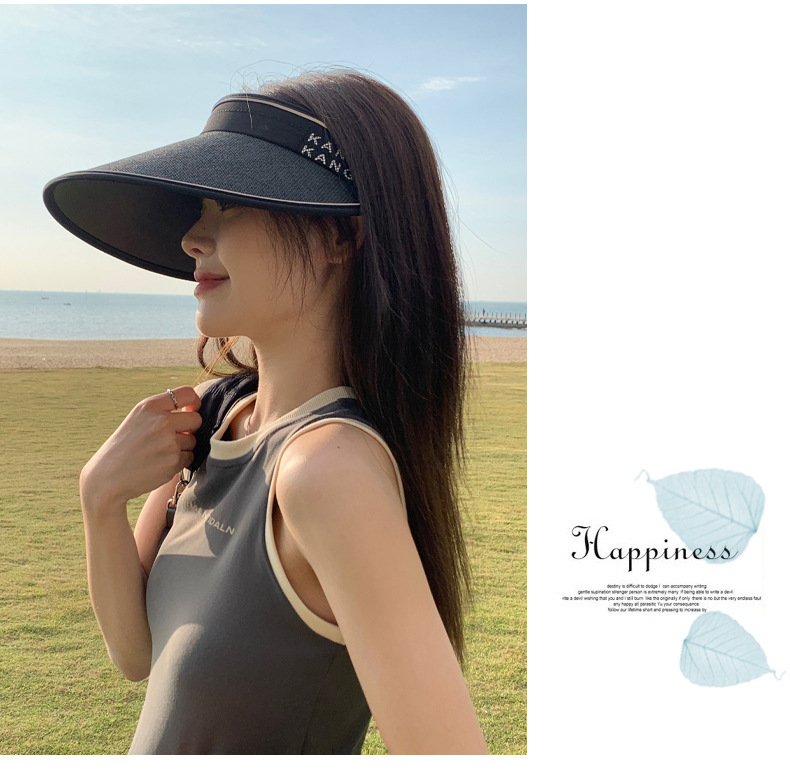 【满足你的户外需求,遮阳舒适,轻巧便捷!】韩版夏季帽子女 时尚字母纸草防晒遮阳帽 太阳大檐遮脸空顶帽!-QQ-ry