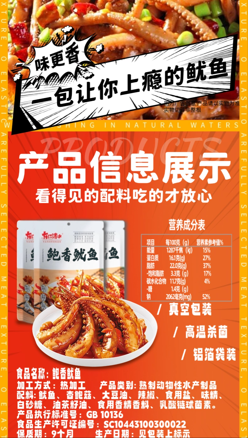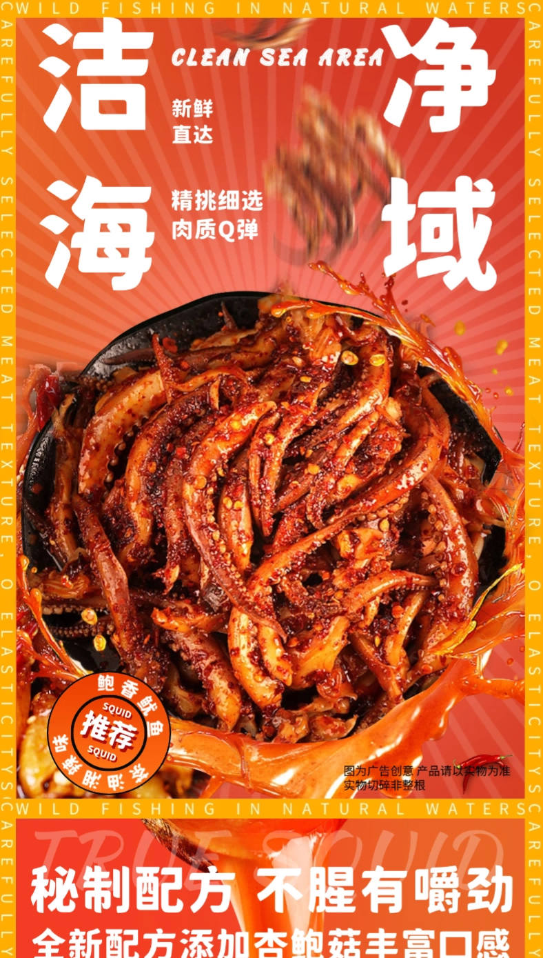 【醒粉福利29.9元12袋】东江清水鲍香鱿鱼香辣鱿鱼丝 休闲追剧即食40g/袋