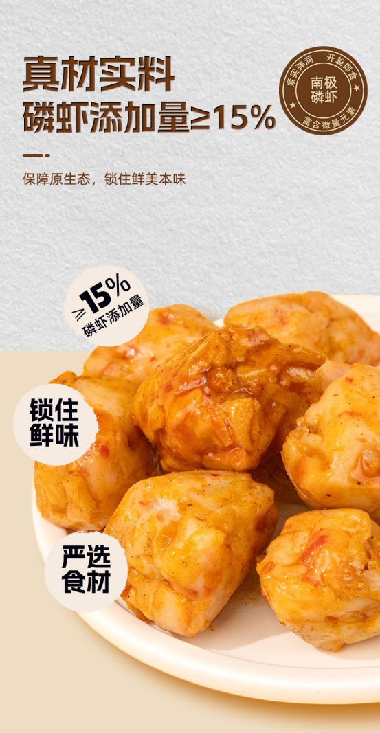 【商超同款6折】年货福利价【2袋19.9】 1口5只虾虾中贵族以富硒高钙高蛋白南极磷虾为原料 免煮即食低脂减盐,鲜香弹牙,满口肉感,随时享受虾丸自由 ✅≥15%南极磷虾含量,≥65%鱼糜含量 ✅0色素,0卡拉胶,0杂肉 ✅独立小包装,真空锁鲜,好吃便携 ✅南极磷虾富含硒元素,含钾、钙、铁、锌等多种矿物质营养