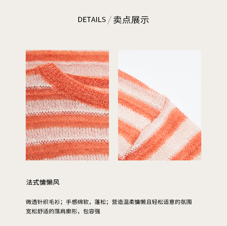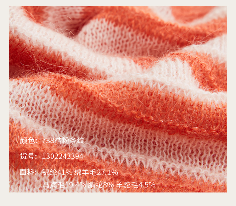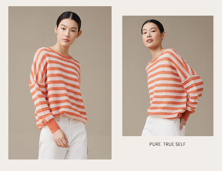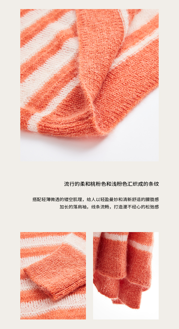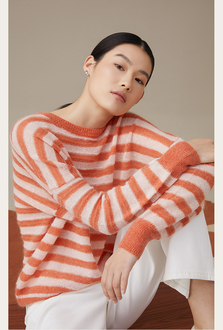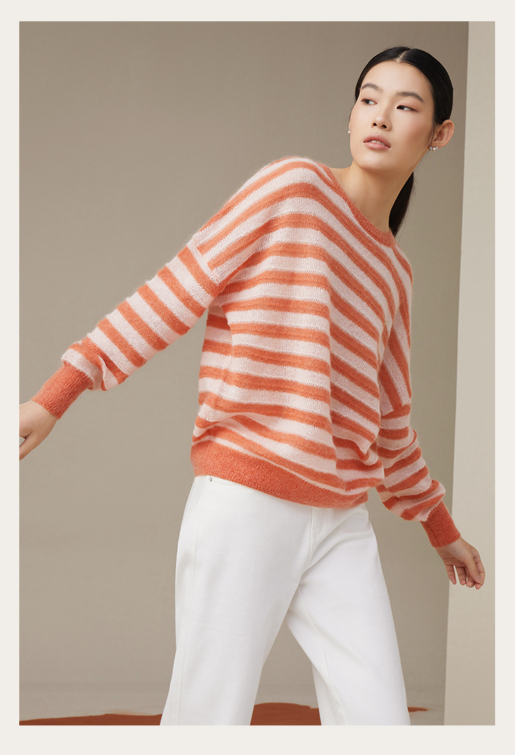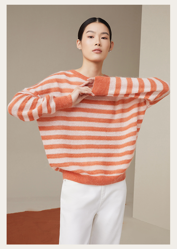 pure touch女士马海毛条纹廓形针织衫1302243394