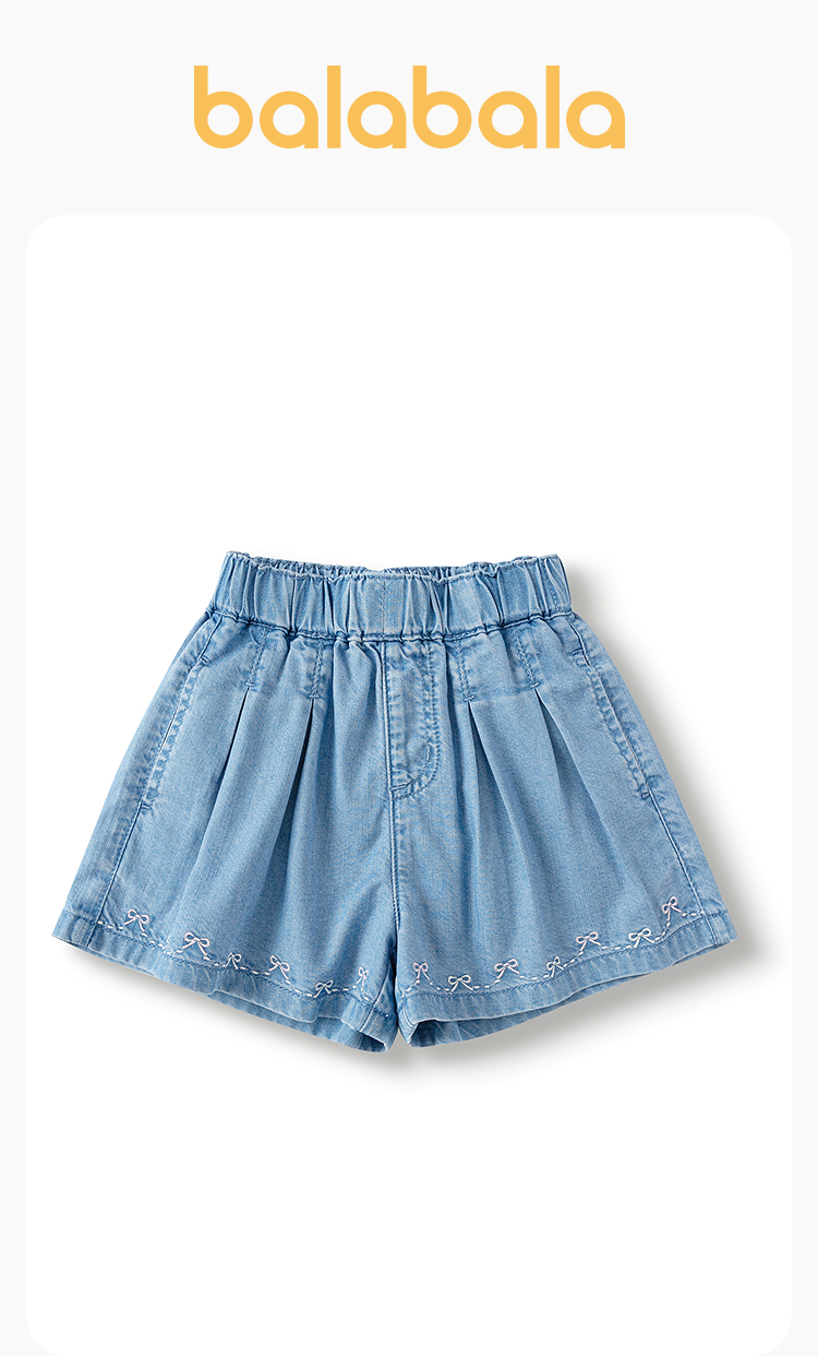 巴拉巴拉童装儿童短裤女童牛仔裤2025夏季新款A字裙裤蝴蝶结抑菌