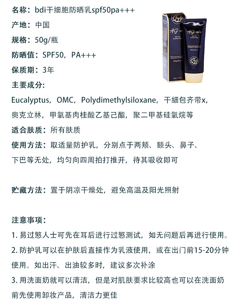 Bdi AG干细胞养肤防晒乳