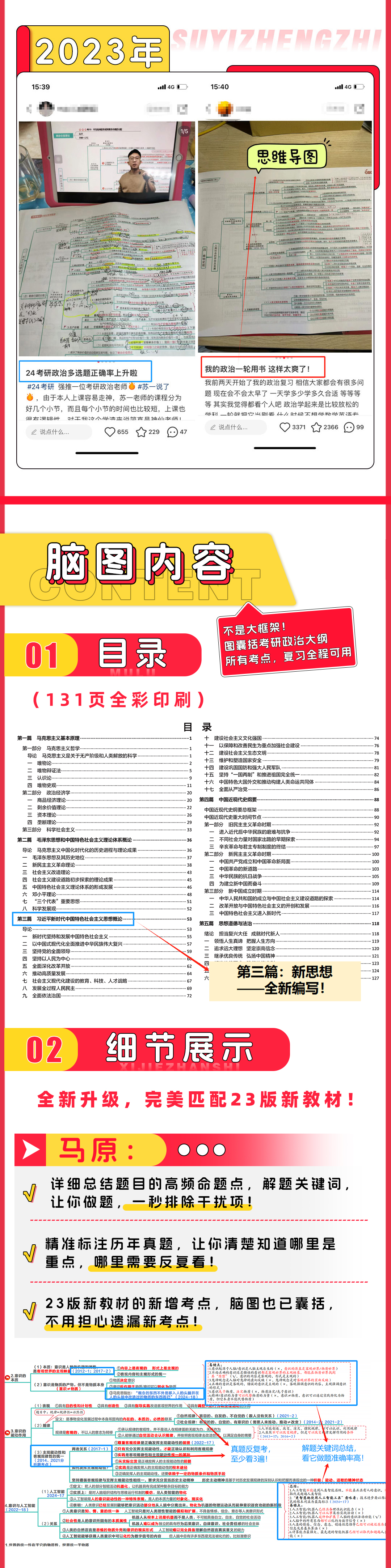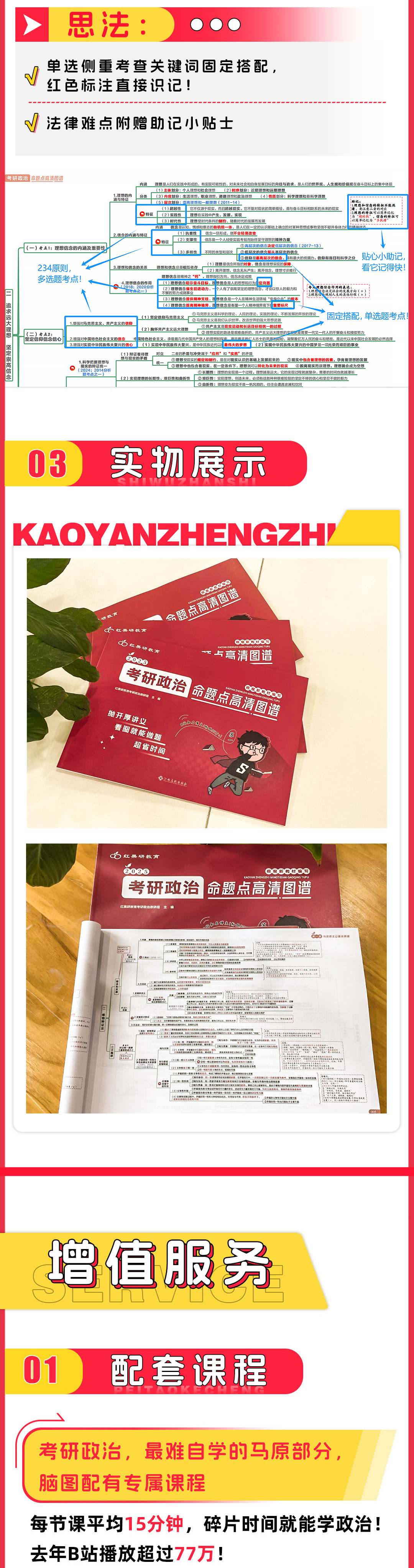 【红果研】2025考研政治思维导图131页全彩印制!做题神器!完美对应1000题!