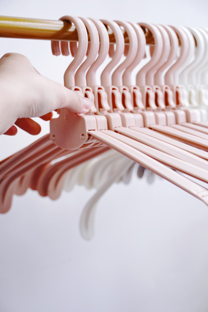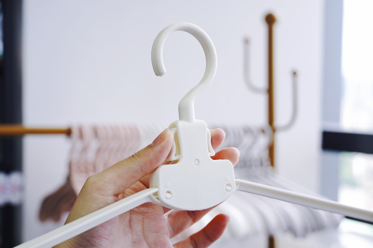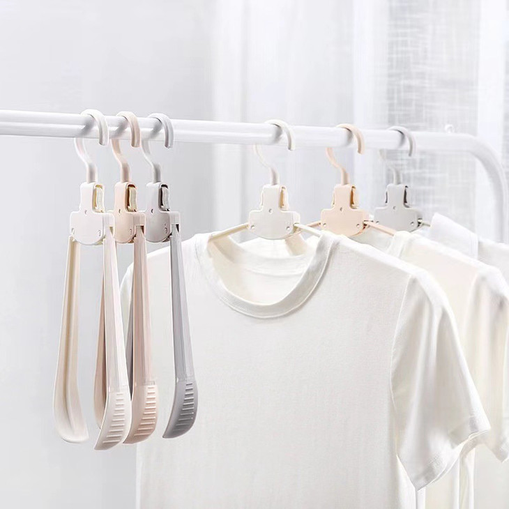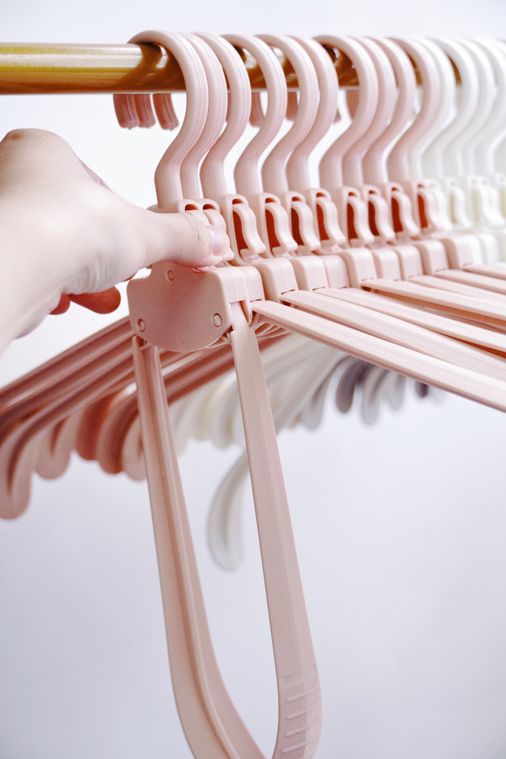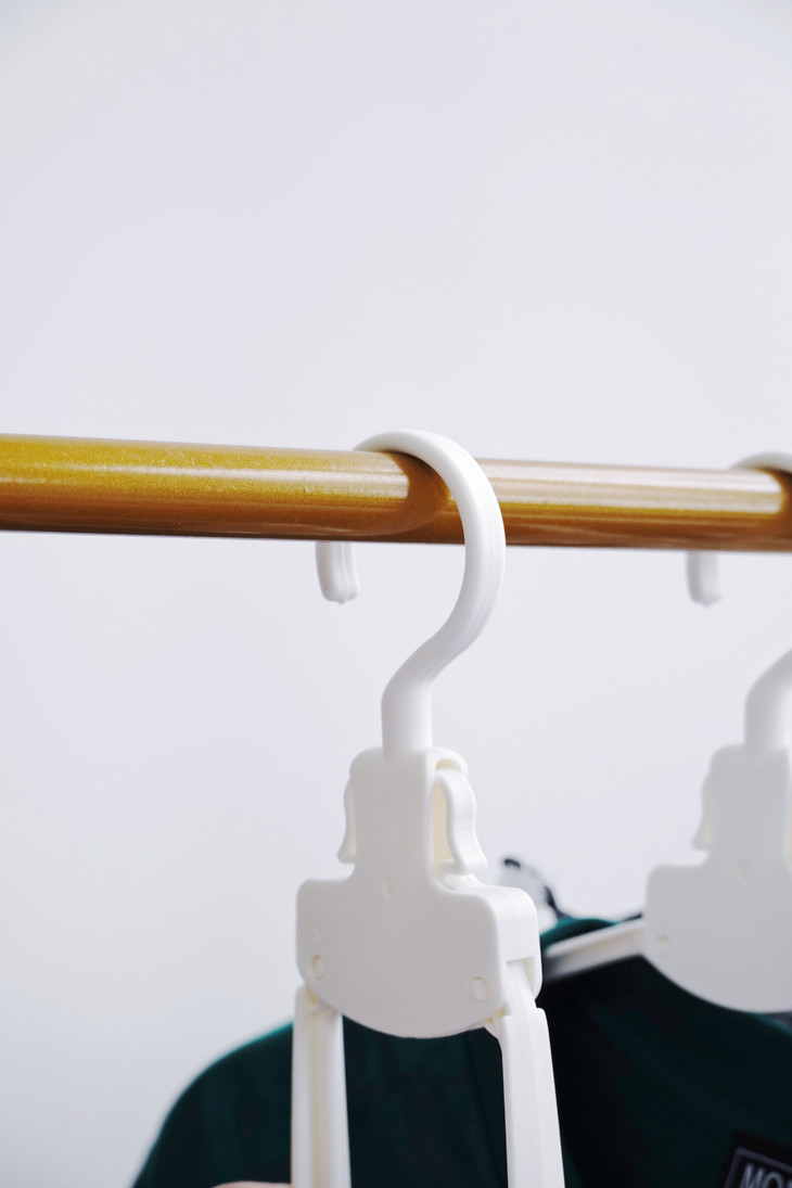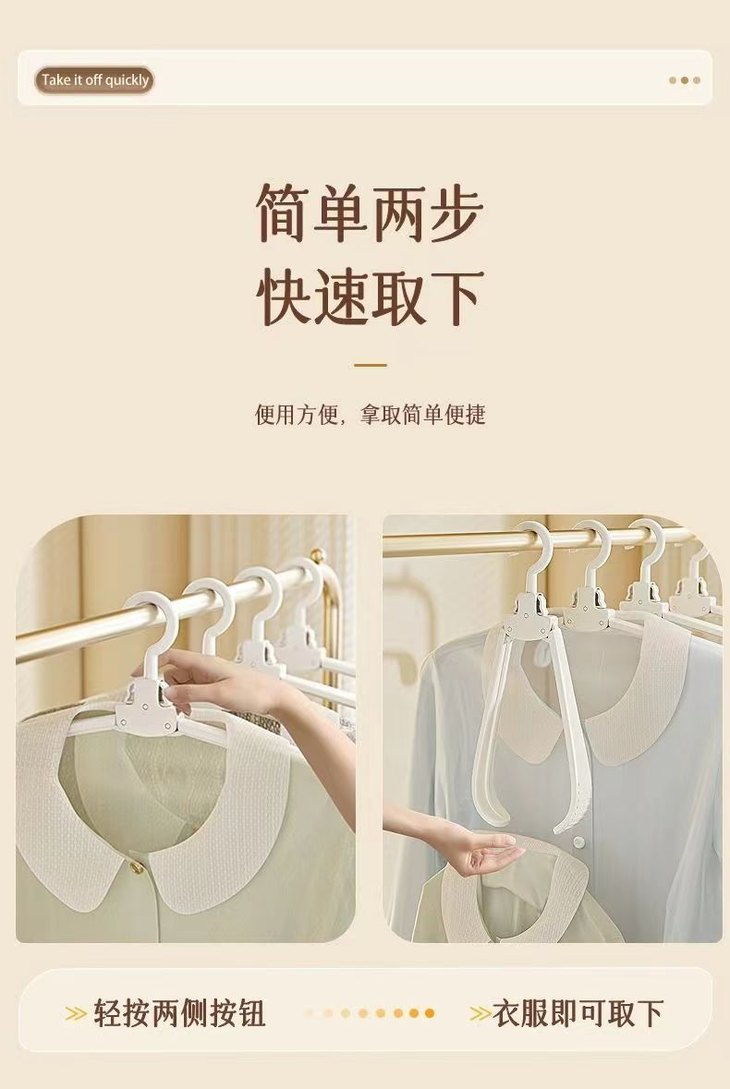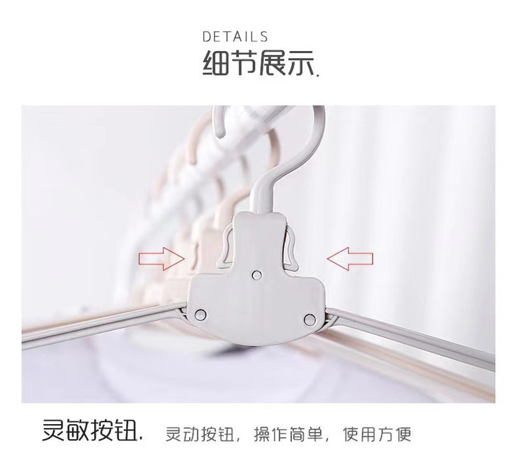 🔹一按即收纳,一撑即展开 用在家里晒衣服 取下不会那么占据收纳位置, 衣架与衣架之间也不容易穿插错位打结到一起