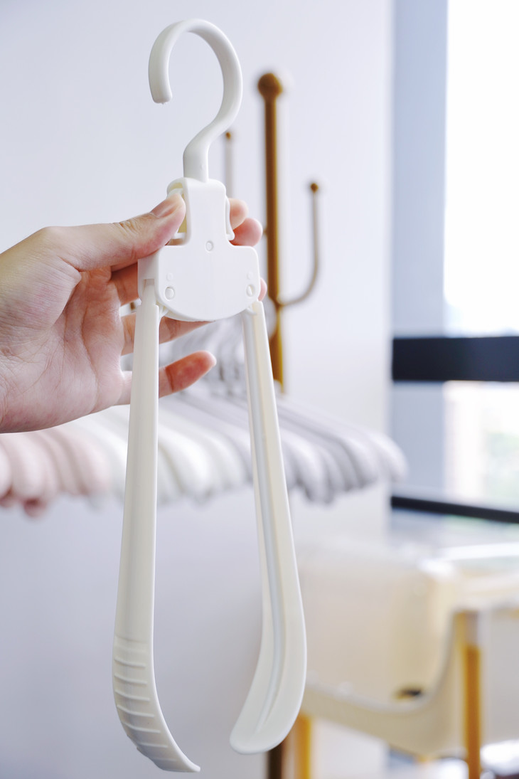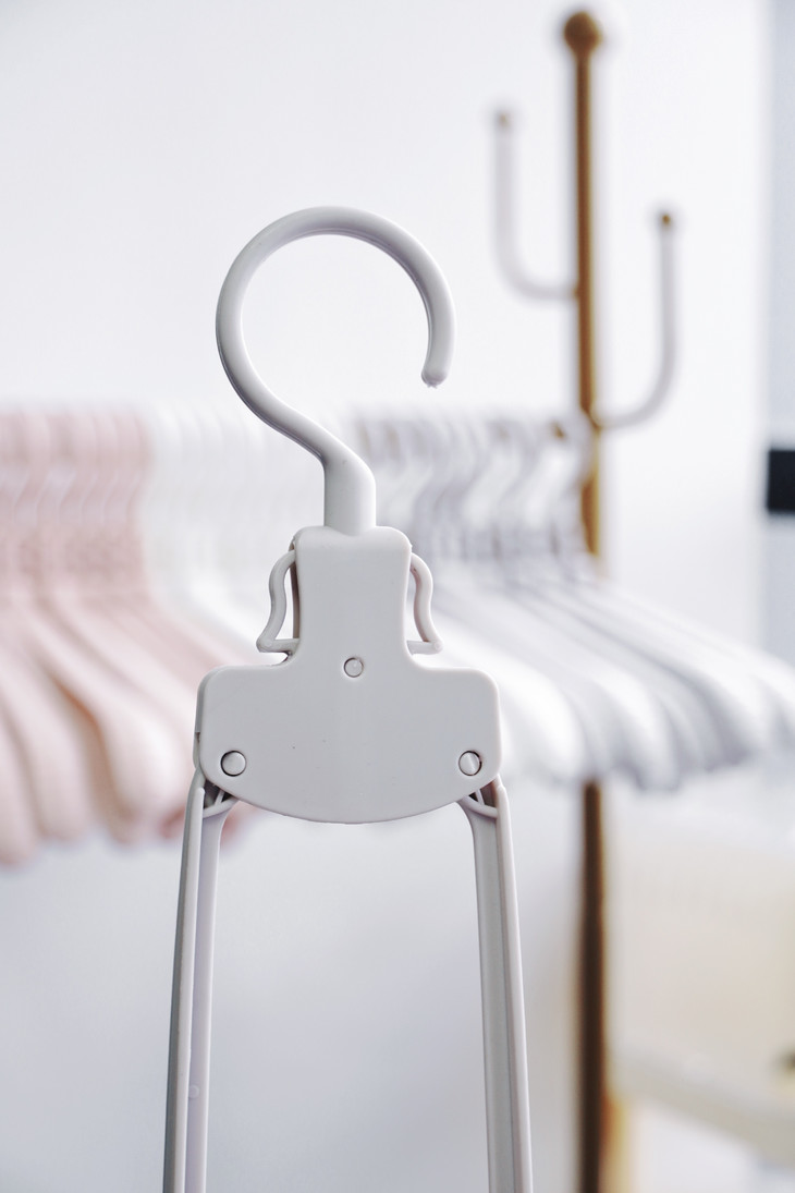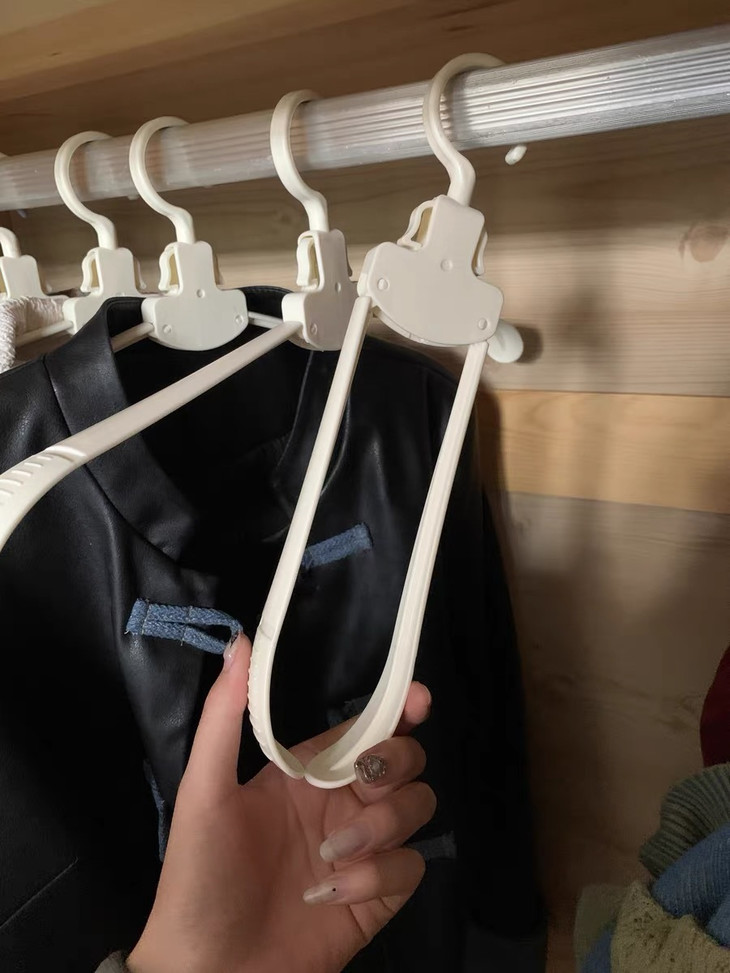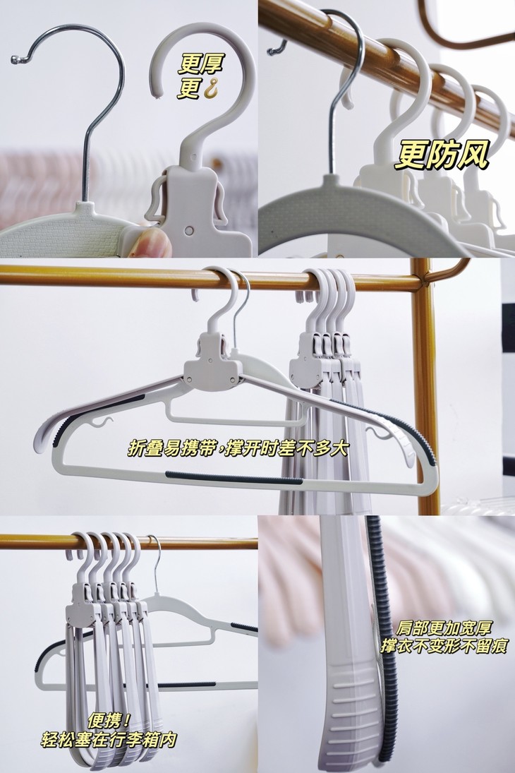 秋冬季节的出差出游 大衣、棉服都是又重又厚 不及时挂起来就会皱皱巴巴的影响体面💢 酒店民宿提供的衣架又太多人用过,干净不到哪里去 自己带上两三把折叠衣架,并不会很占行李箱的位置✔✔ 洗晒内衣裤、挂晾大衣、甚至小孩的衣物 就都能搞定了