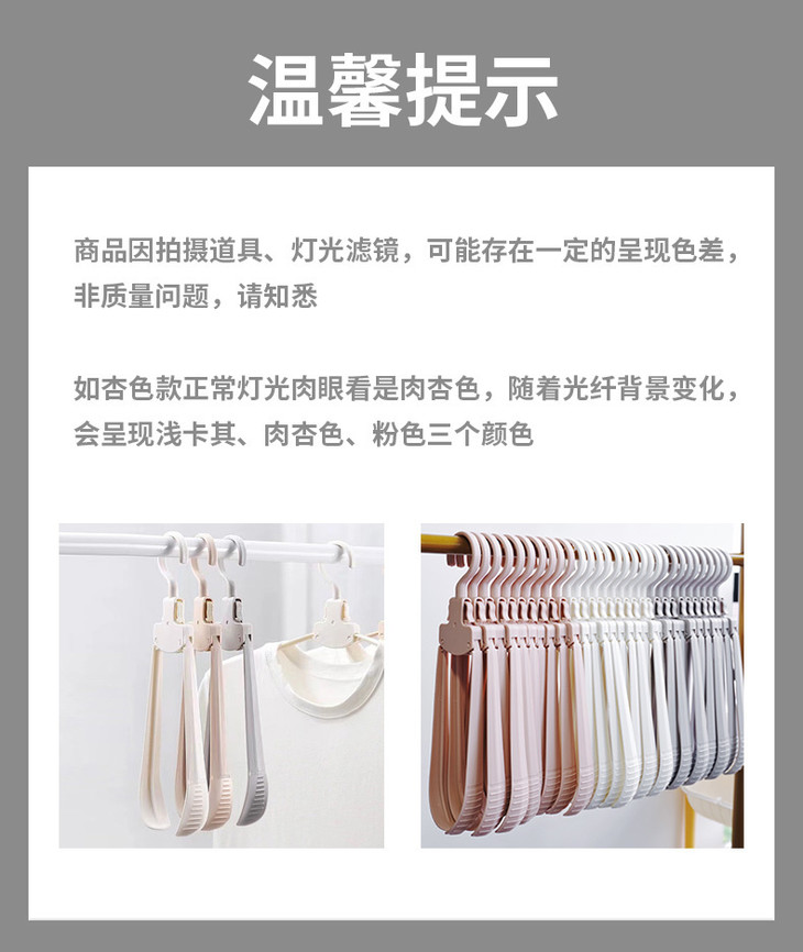 贴合衣物,不留痕不变形 宽领口窄领口都能轻松挂置 厚实坚韧不变形,拯救行李箱内的衣物褶皱 💰39.9到手三十把 杏粉色、浅灰色、奶白色混合发货