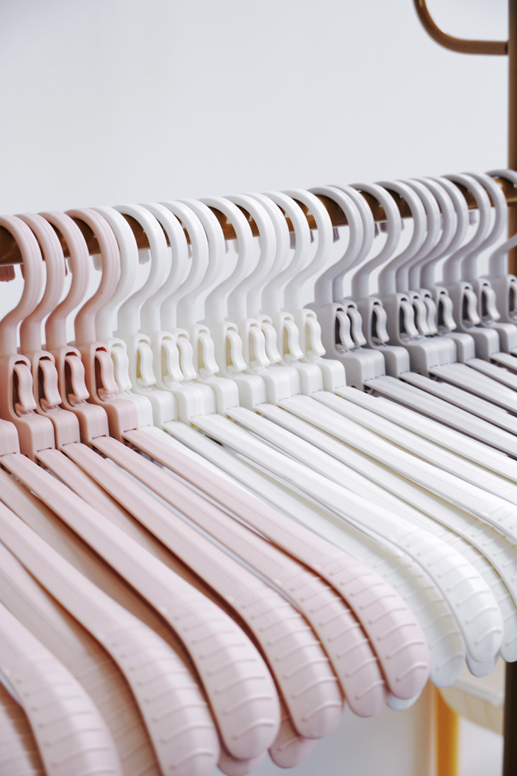 🔹无痕圆肩但防滑 没有方方角角会把布料顶变形的地方, 多棱条的细节处理 挂吊带或丝绸制等容易滑落的衣物面料可以加大摩擦力