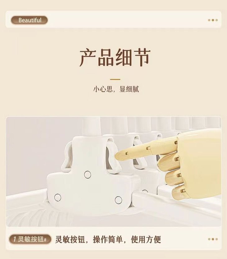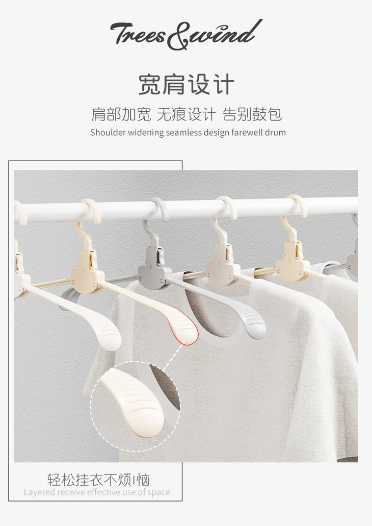 1️⃣ 折叠不到九公分宽,撑开后宽达42cm,便携易带,放在家里也好收纳 2️⃣ 真正大宽肩防滑设计,圆头无痕不鼓包,大号衣物随便挂 3️⃣ 灵敏按键,半秒就能收缩。轻按下更方便晾晒收取 4️⃣ Abs+pp坚韧材质,加粗骨架,承重力很强 5️⃣ 加粗加弯防风挂钩,好挂好收但风吹不落 6️⃣ 灰色+白色+杏色 温柔三色搭配,到手整整三十支!
