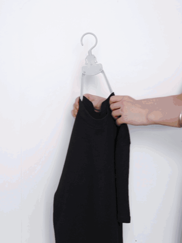 伸缩款的衣架没撑开的时候才八公分多点宽◾ 先塞进去一节,再提起一边的挂臂就好了 无袖、窄袖、窄领、宽领 都能轻松晾晒收衫 真的让我很多小衣服都找到了本命衣架!