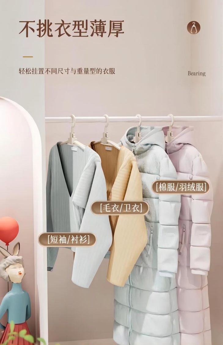 🔹不挑衣型薄厚 轻量的t、重量的大衣棉衣,都需要这种肩部人性化设计的衣架 来拯救晾晒时最容易被撑到变形的肩袖部分