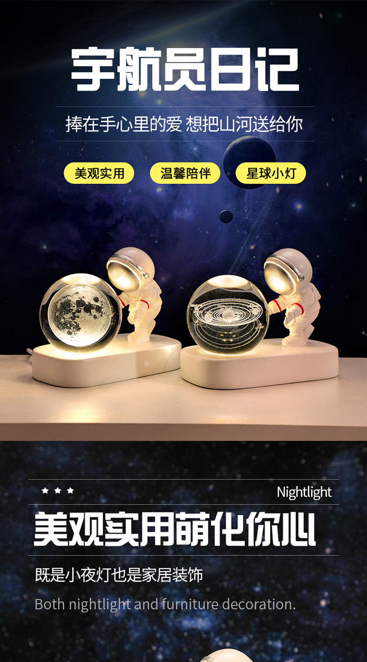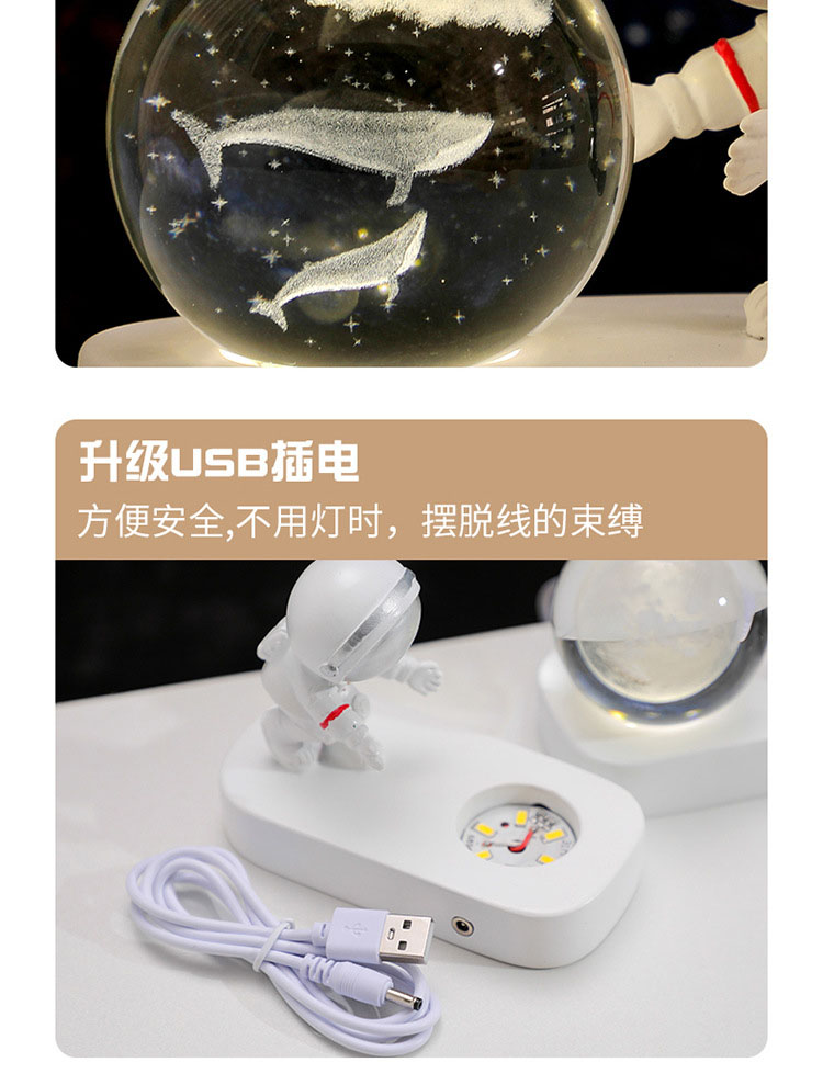 【捧在手里的爱!想把山河送给你】创意宇航员星空漫步小夜灯,内雕水晶球发光摆件节日纪念礼物,美观实用萌化你的心 温馨陪伴一整个夜晚lm