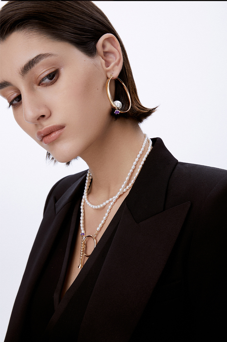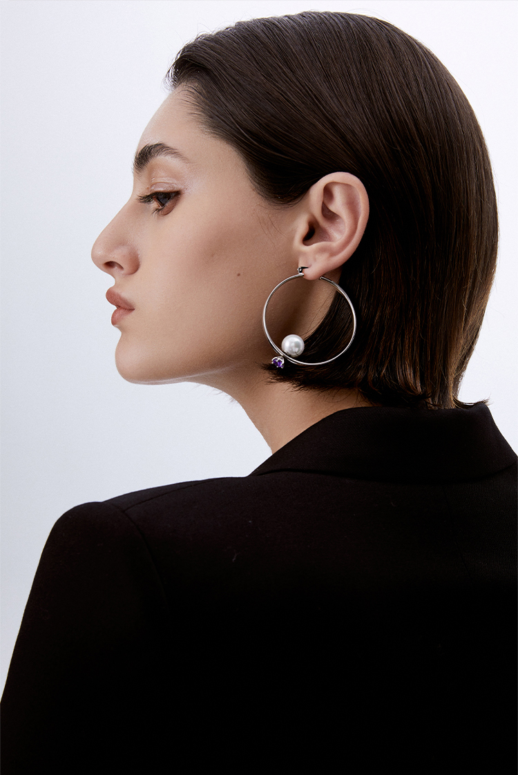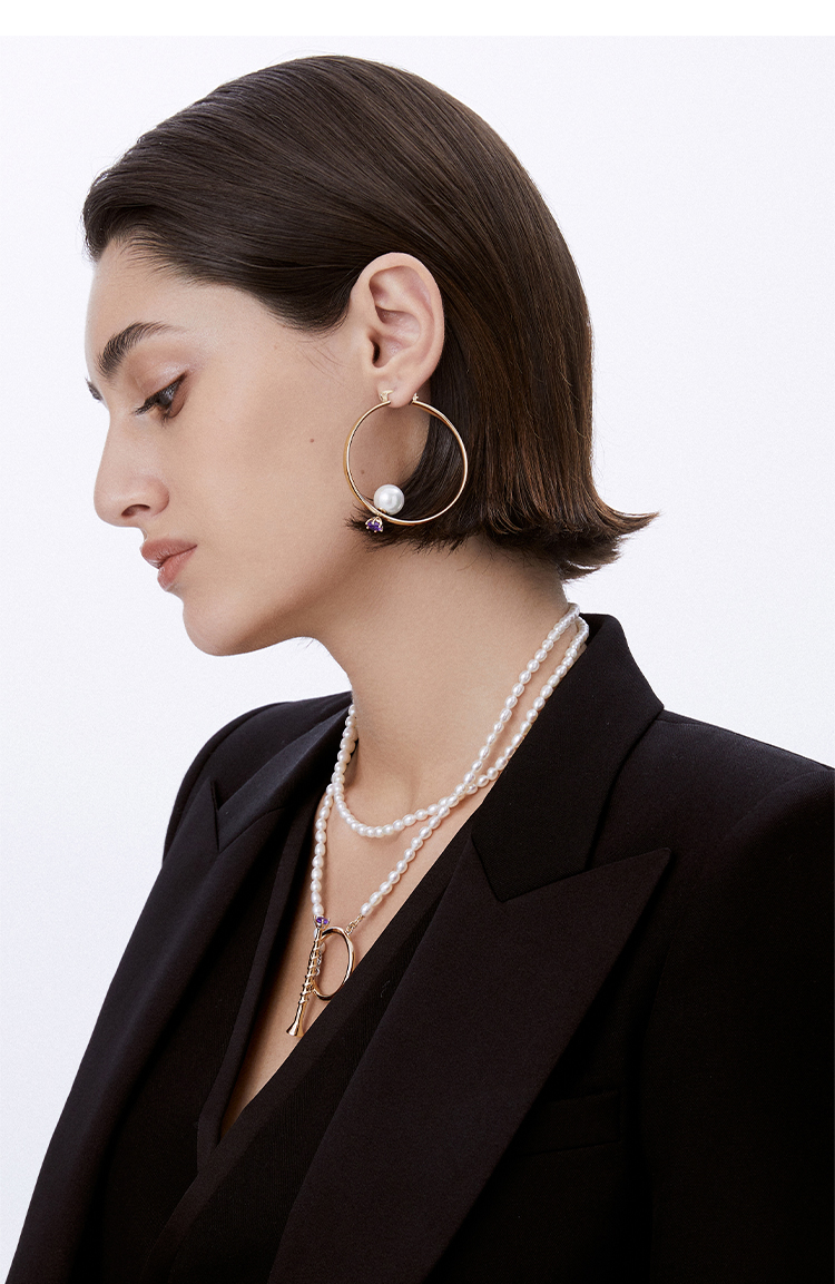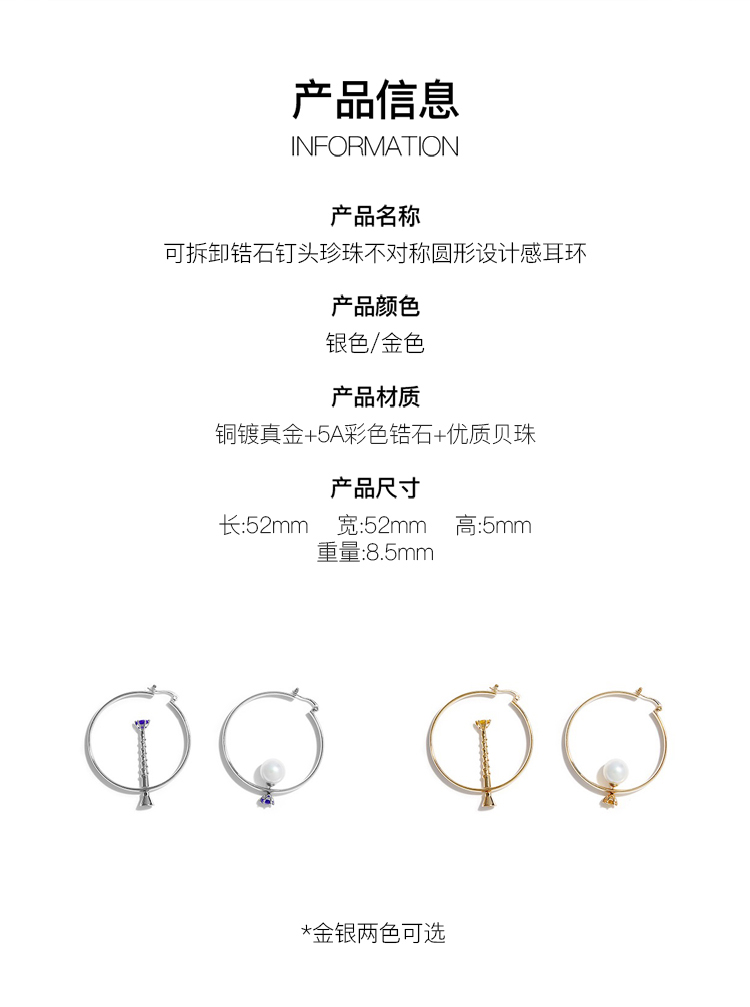 lost in echo 原创设计师品牌 可拆卸锆石钉头珍珠不对称圆形设计感耳环