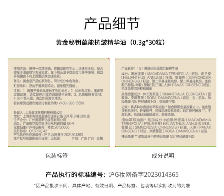 TST黄金秘钥蕴能抗皱精华油(0.3g*30粒)