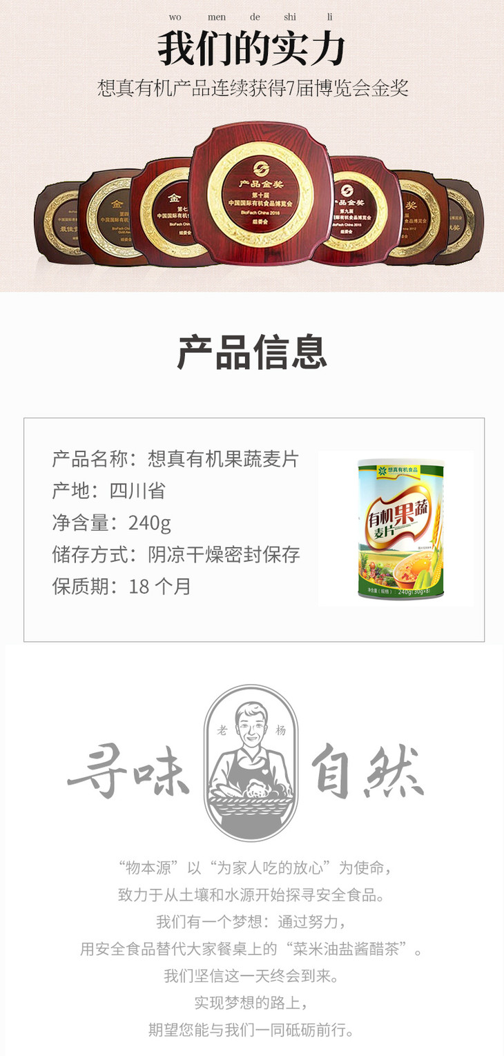 有机果蔬麦片30g*8袋 物本源×想真