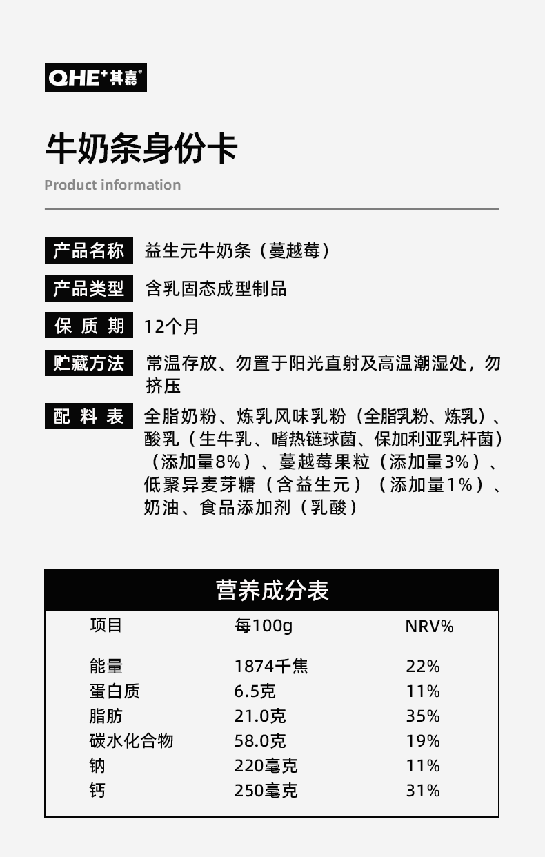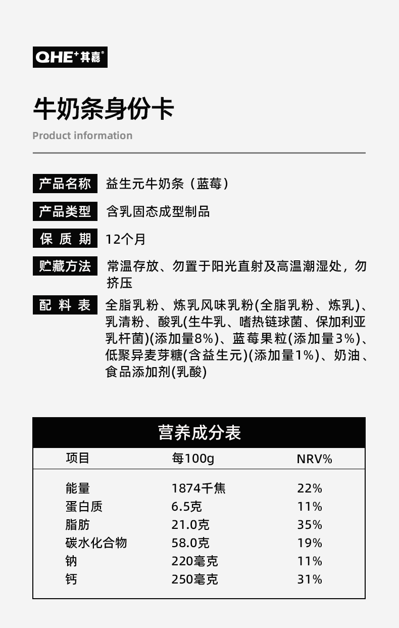 QHE含牛初乳有芝士奶棒棒80g棒棒奶酪儿童零食