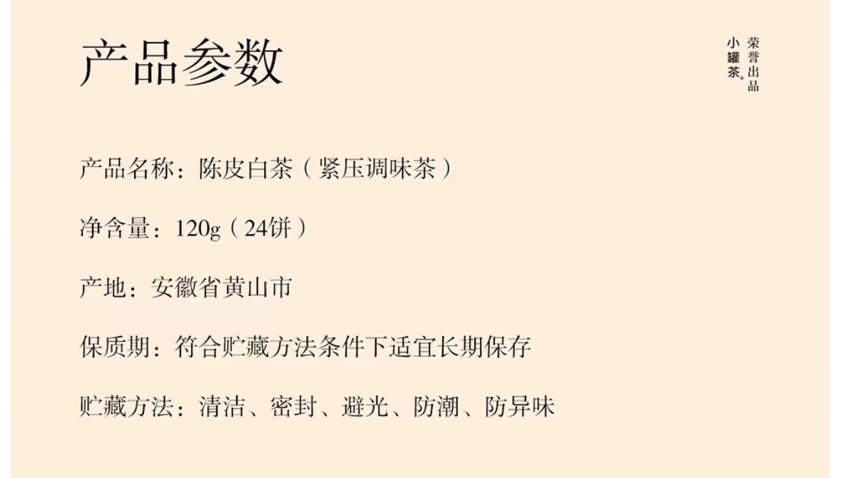 小罐茶茶园系列茶叶彩标陈皮白茶