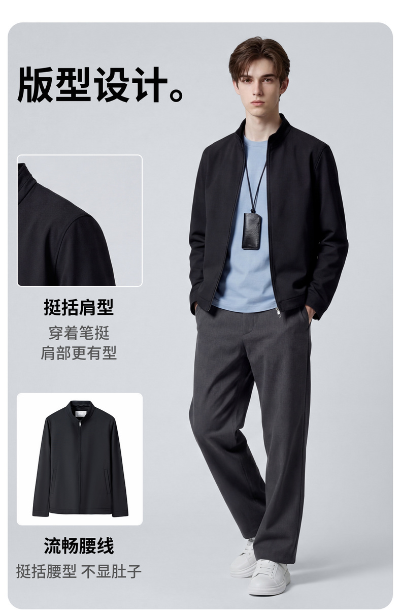 【含羊毛】圣得西高端商务立领夹克外套男款2026新款春季行政上衣