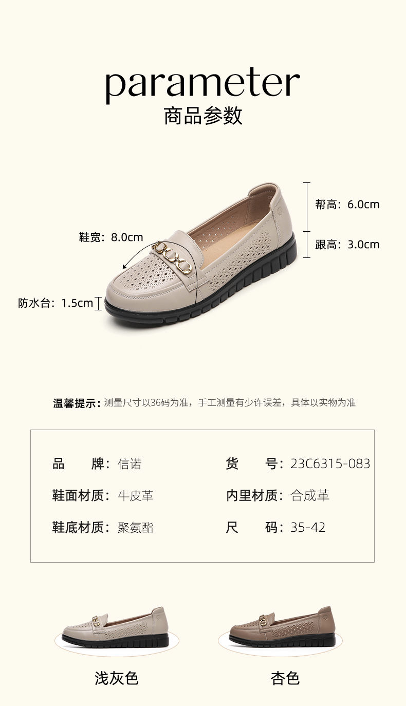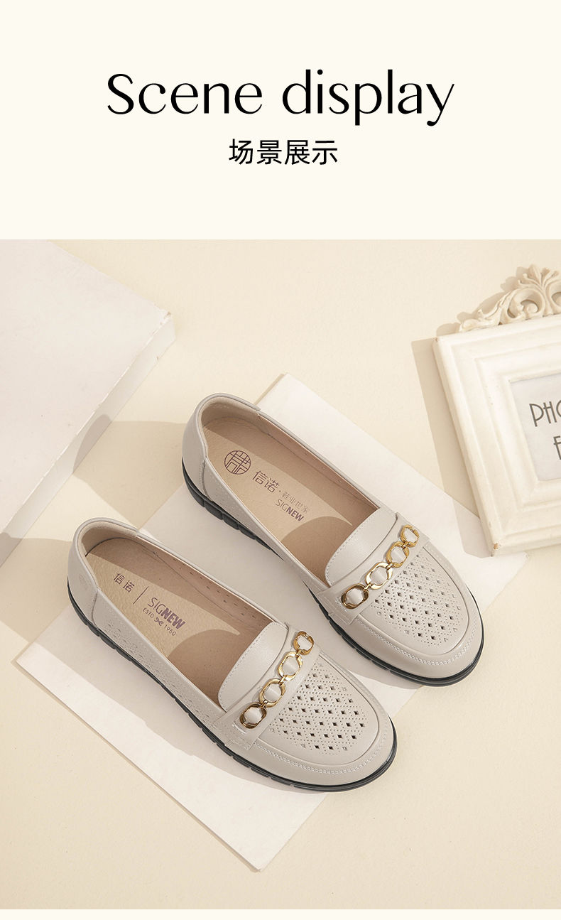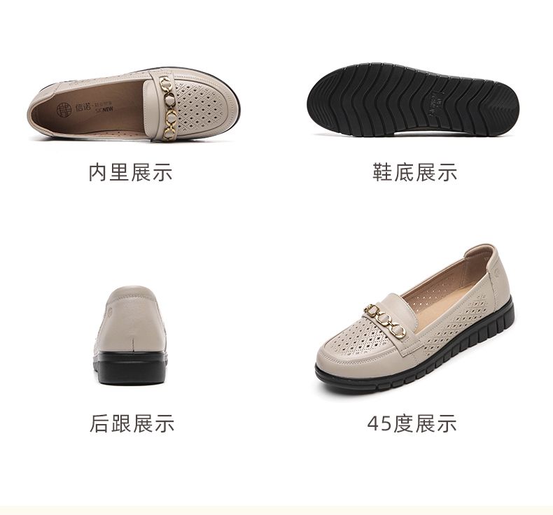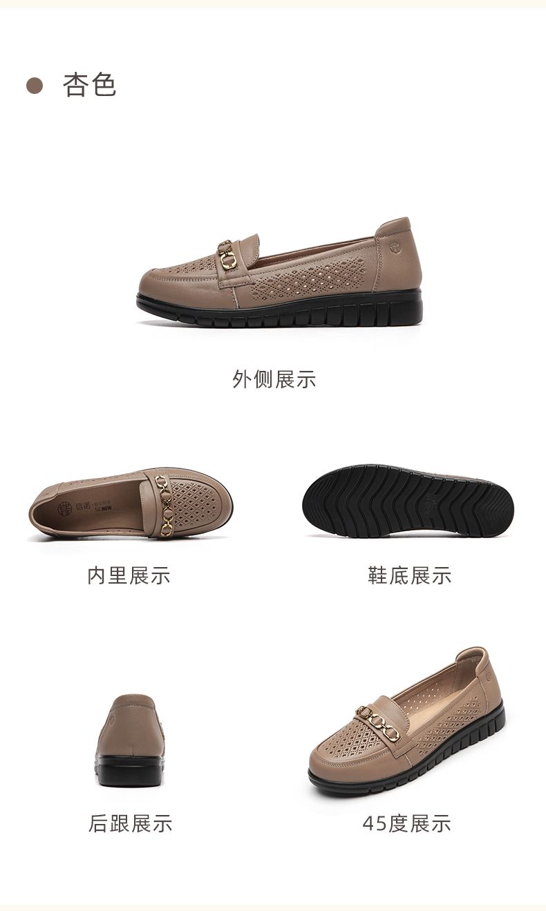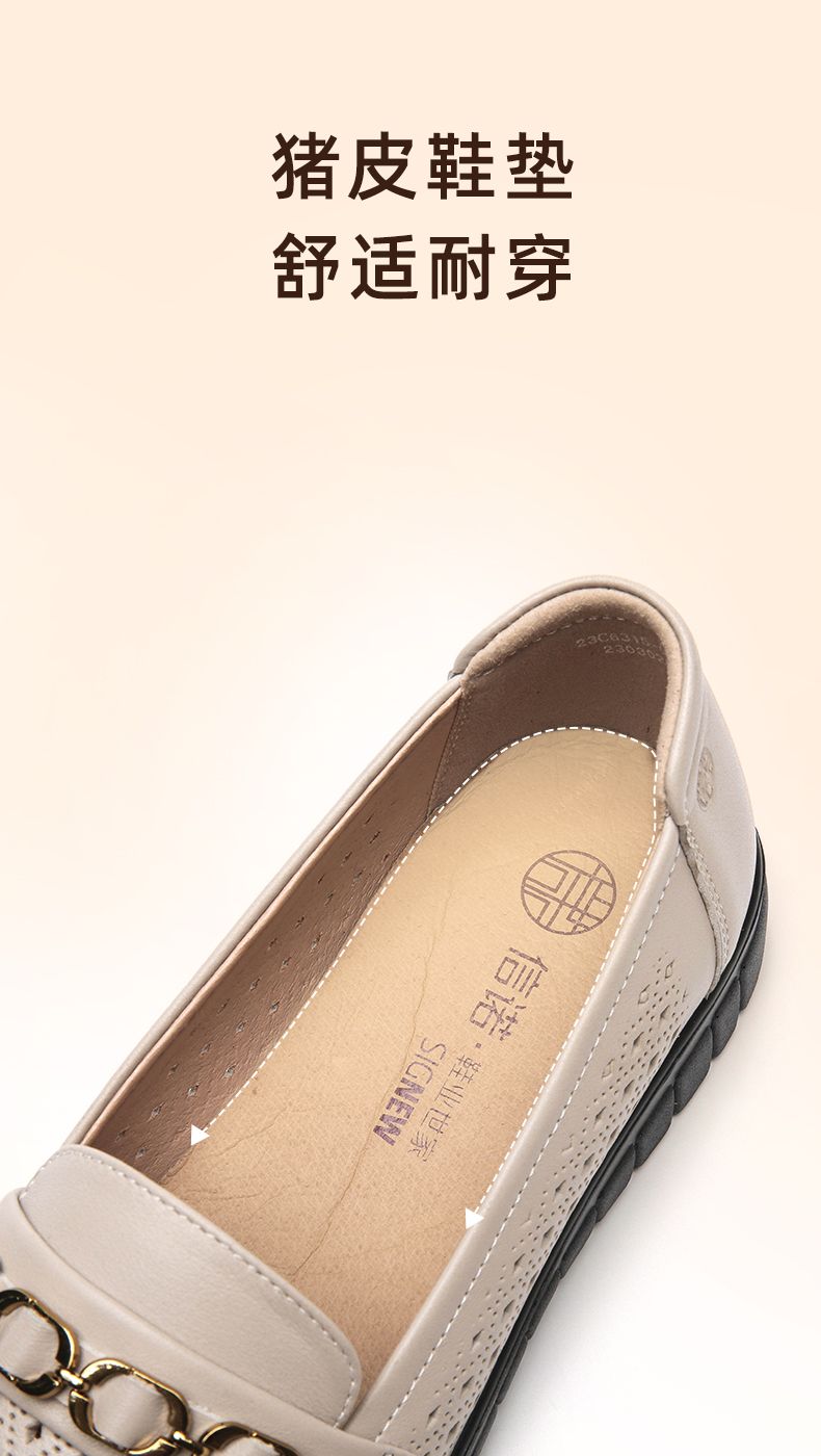 信诺真皮透气妈妈鞋子2023新款夏季软底镂空中老年乐福皮鞋女凉鞋23C6315-083