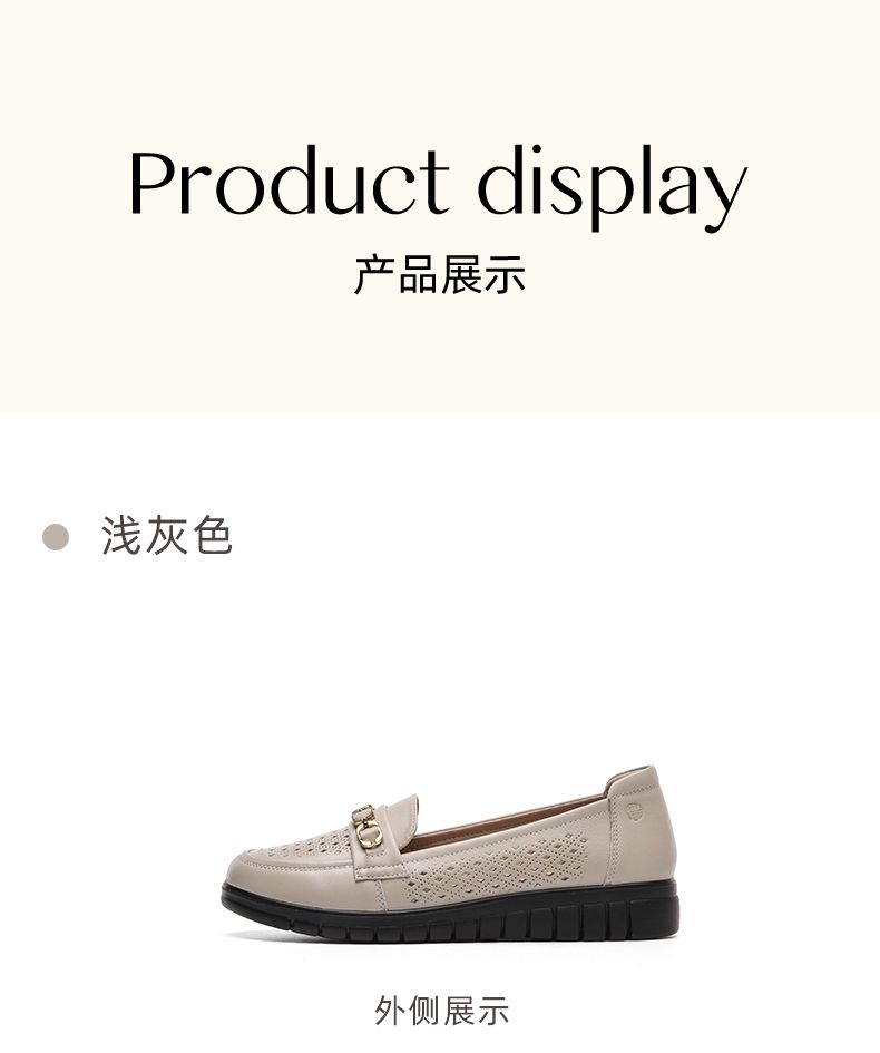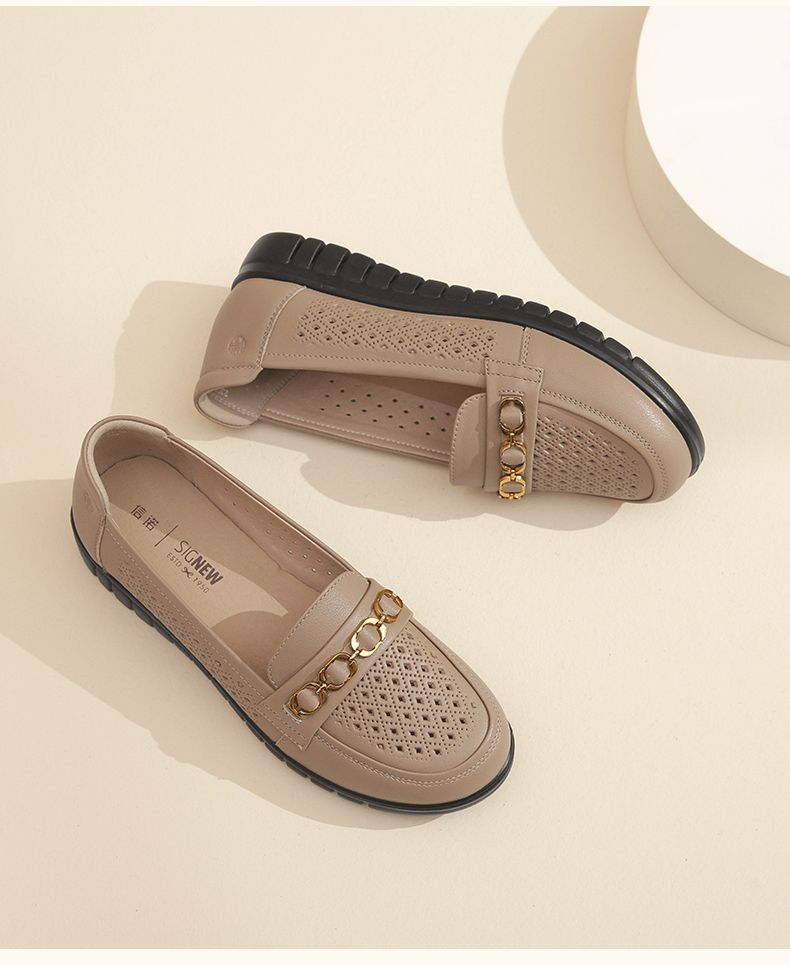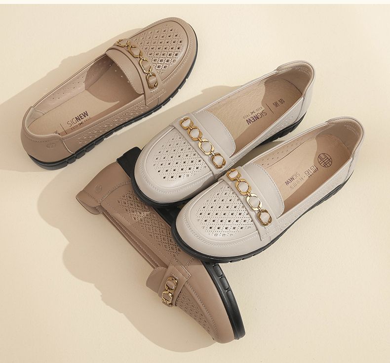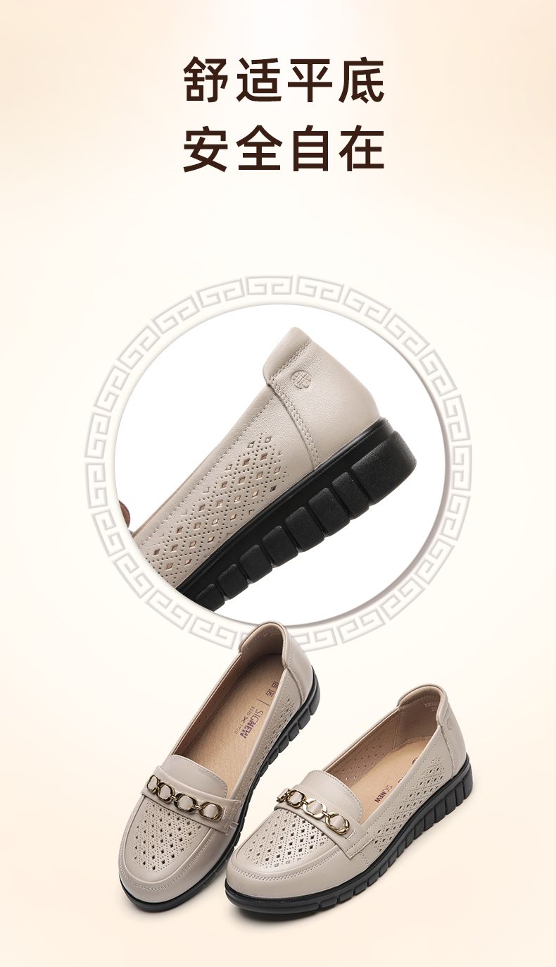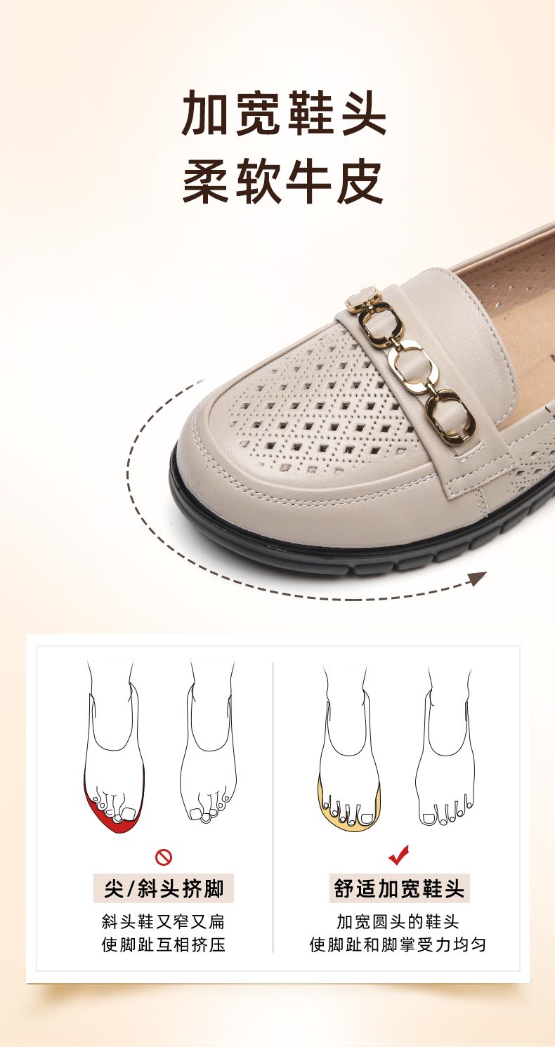 信诺真皮透气妈妈鞋子2023新款夏季软底镂空中老年乐福皮鞋女凉鞋23C6315-083