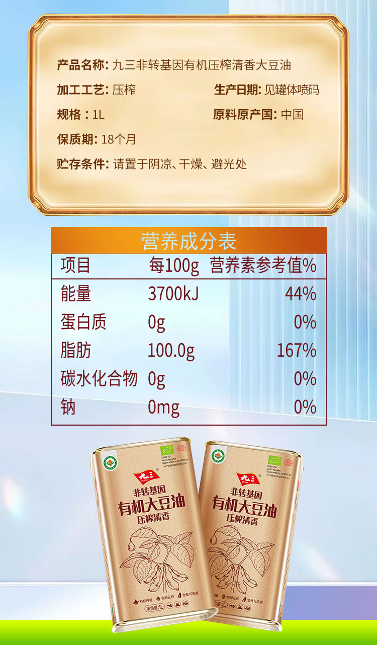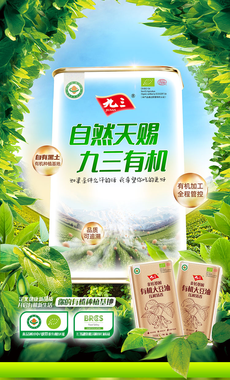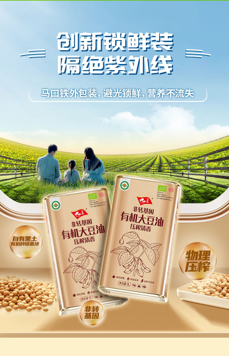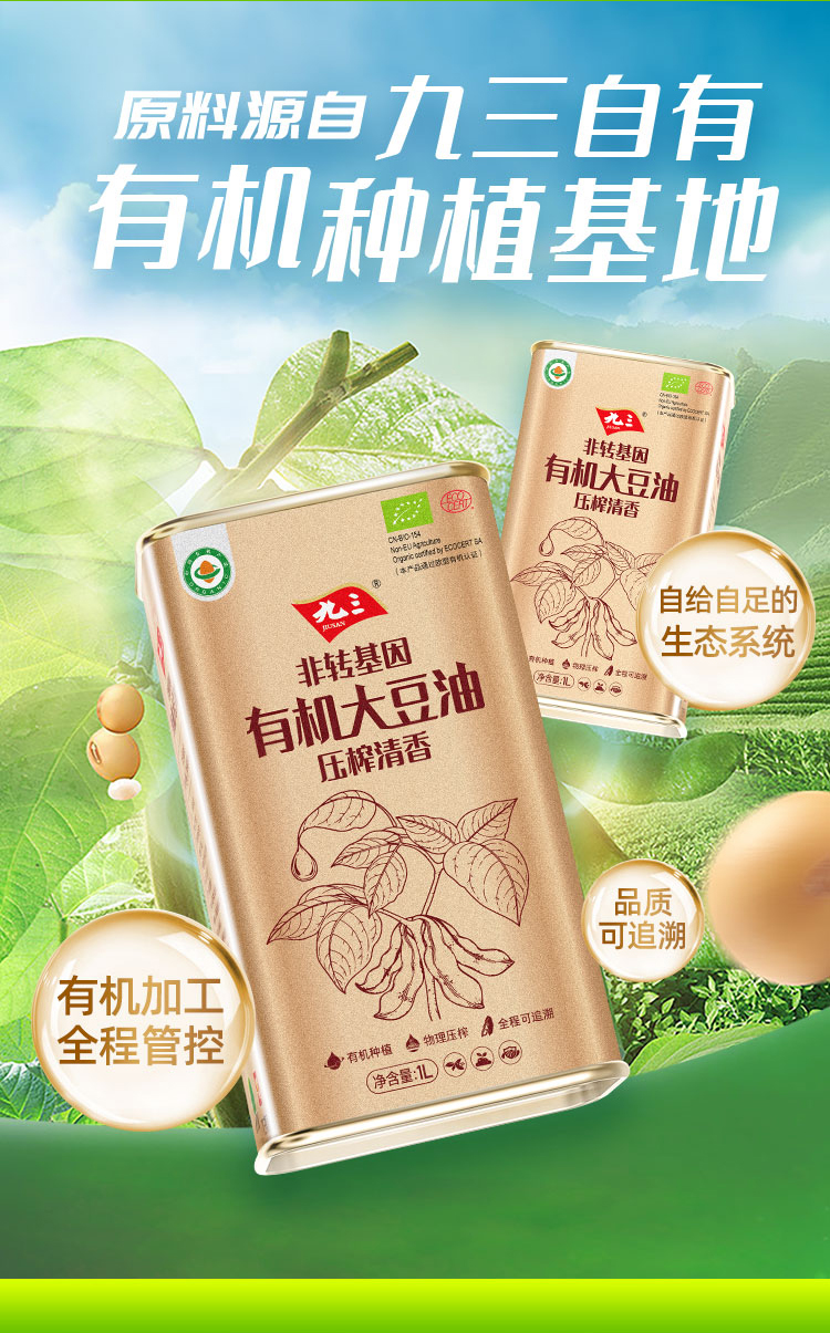 【中国农垦】九三非转基因压榨清香有机大豆油1L