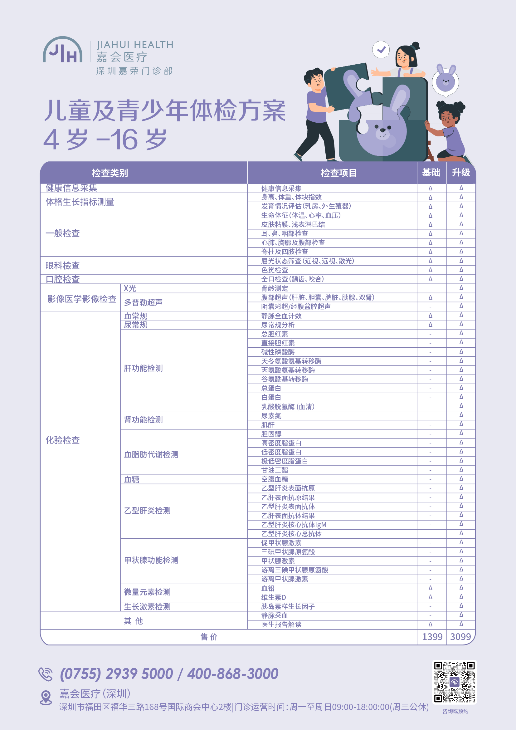 仅限深圳 儿童及青少年体检方案(4-16岁)