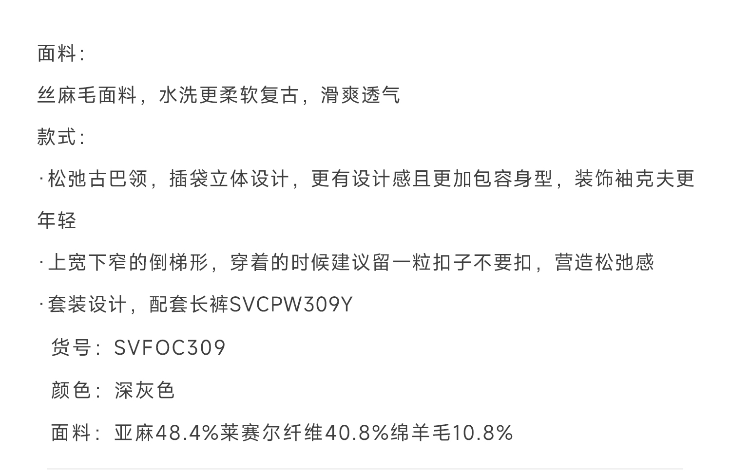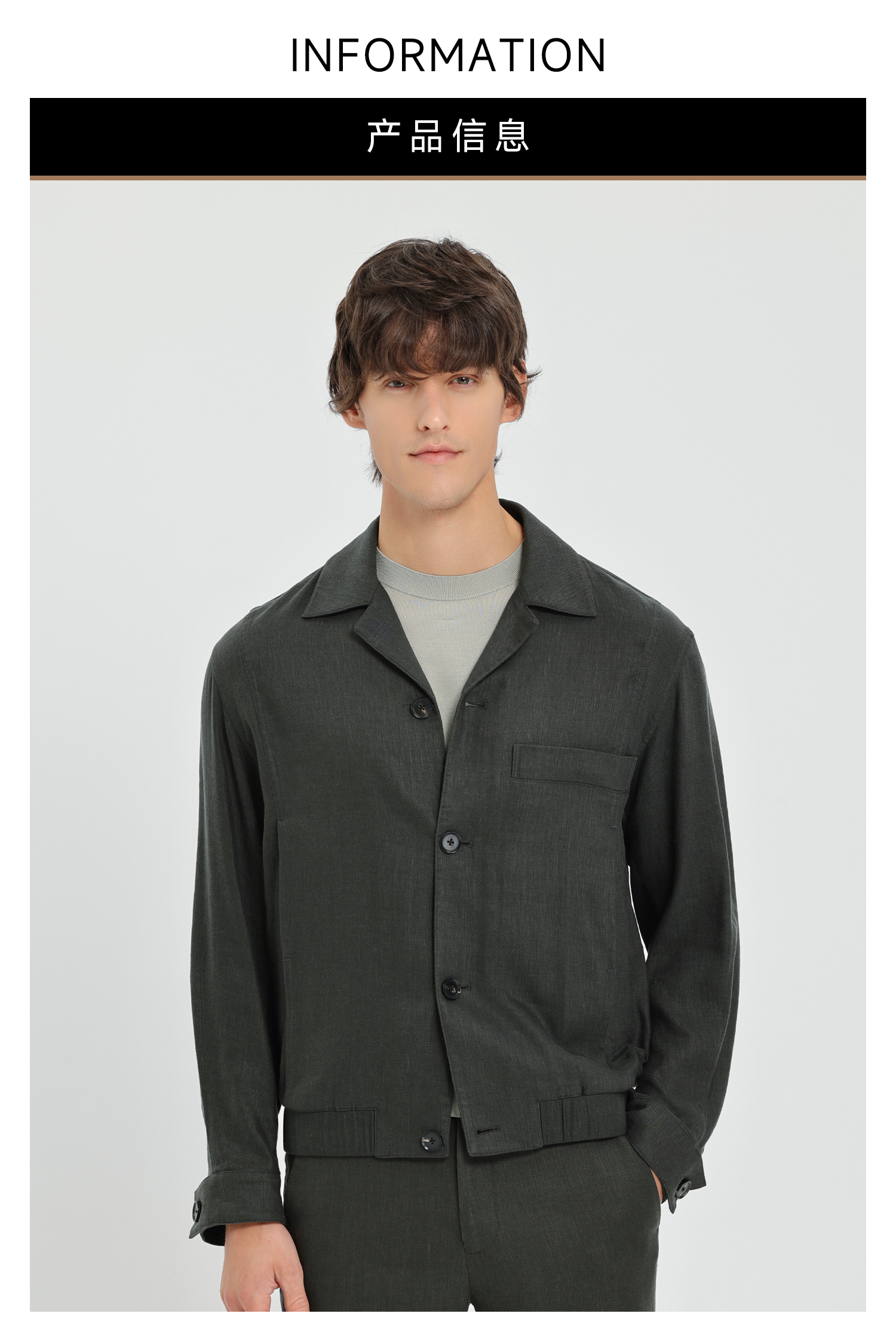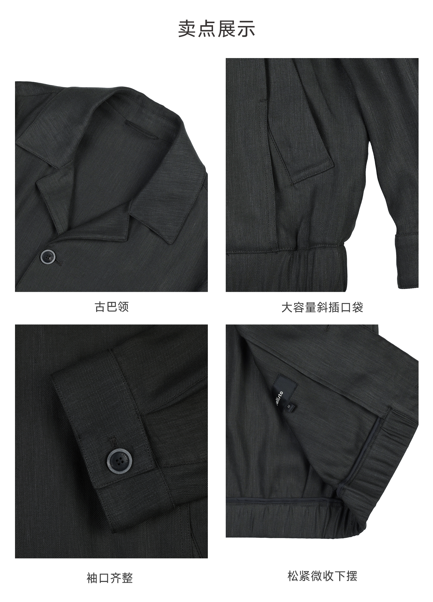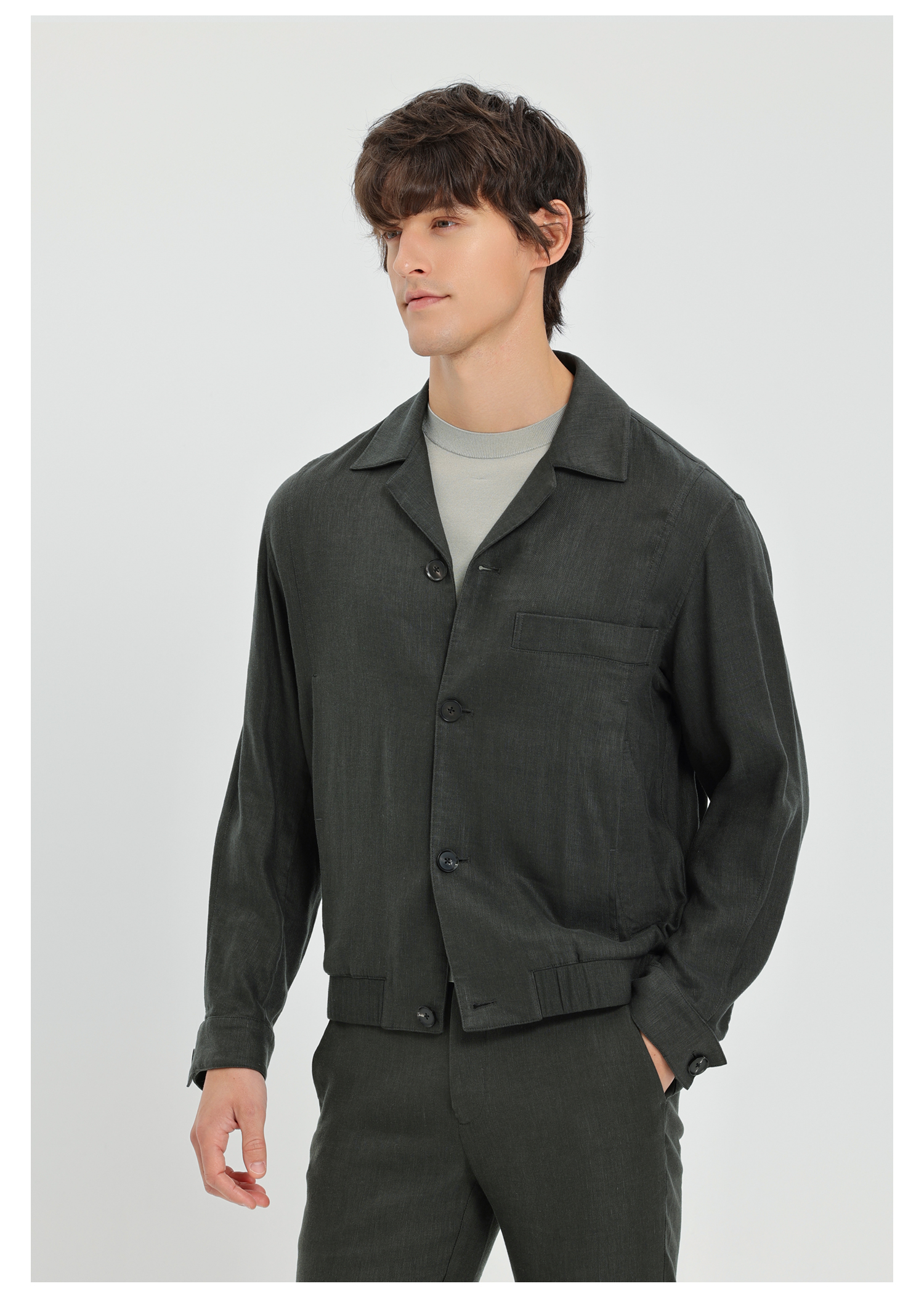 callisto深灰丝麻毛面料松弛古巴领松弛复古外套
