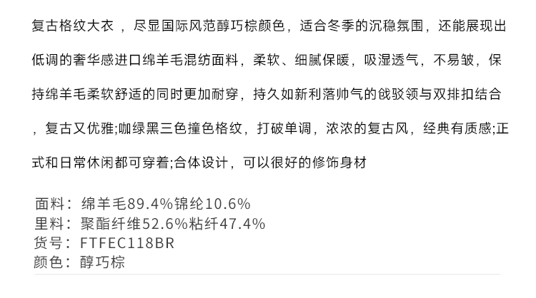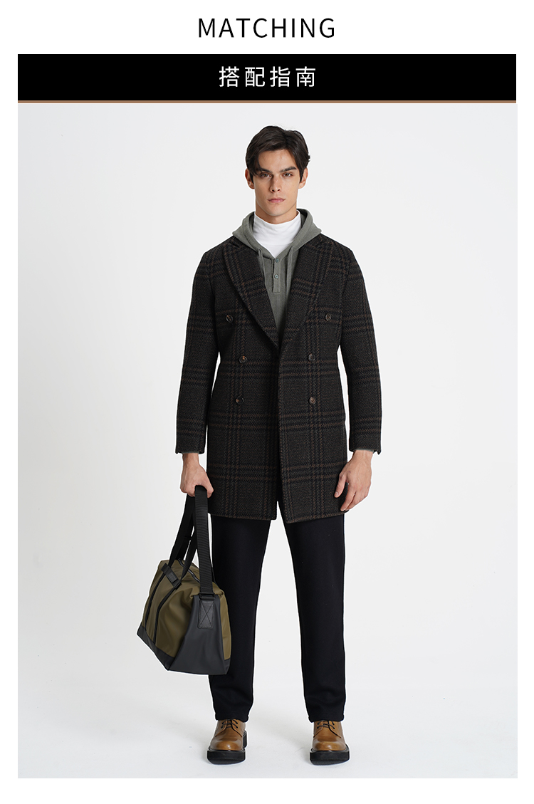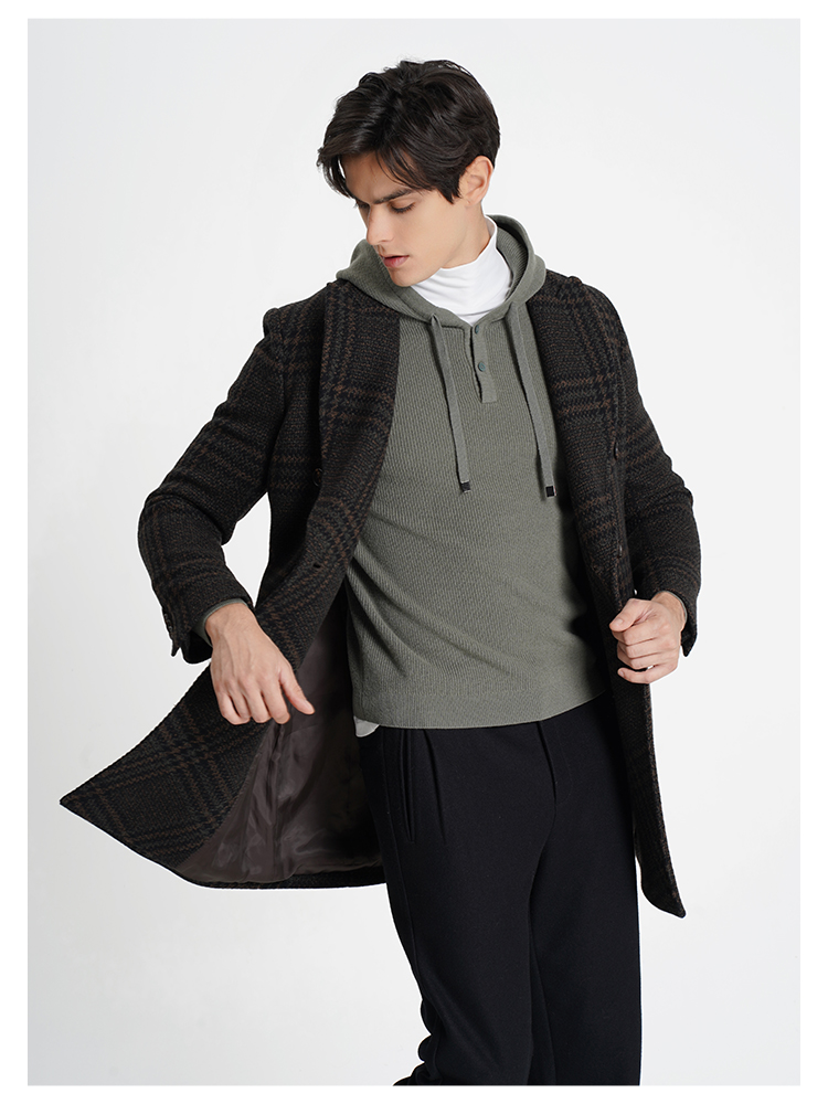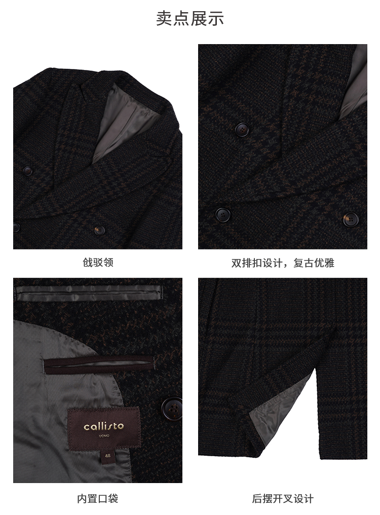 callisto高智系列咖啡色绵羊毛混纺大衣