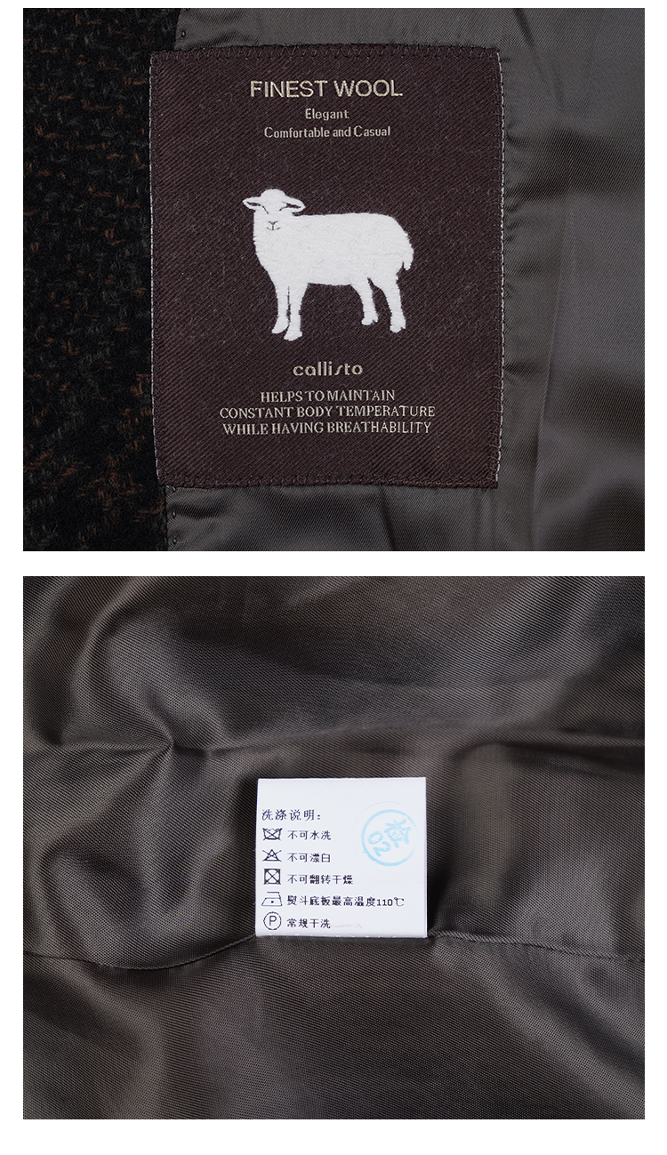 callisto高智系列山影灰黑色千鸟格绵羊毛西服