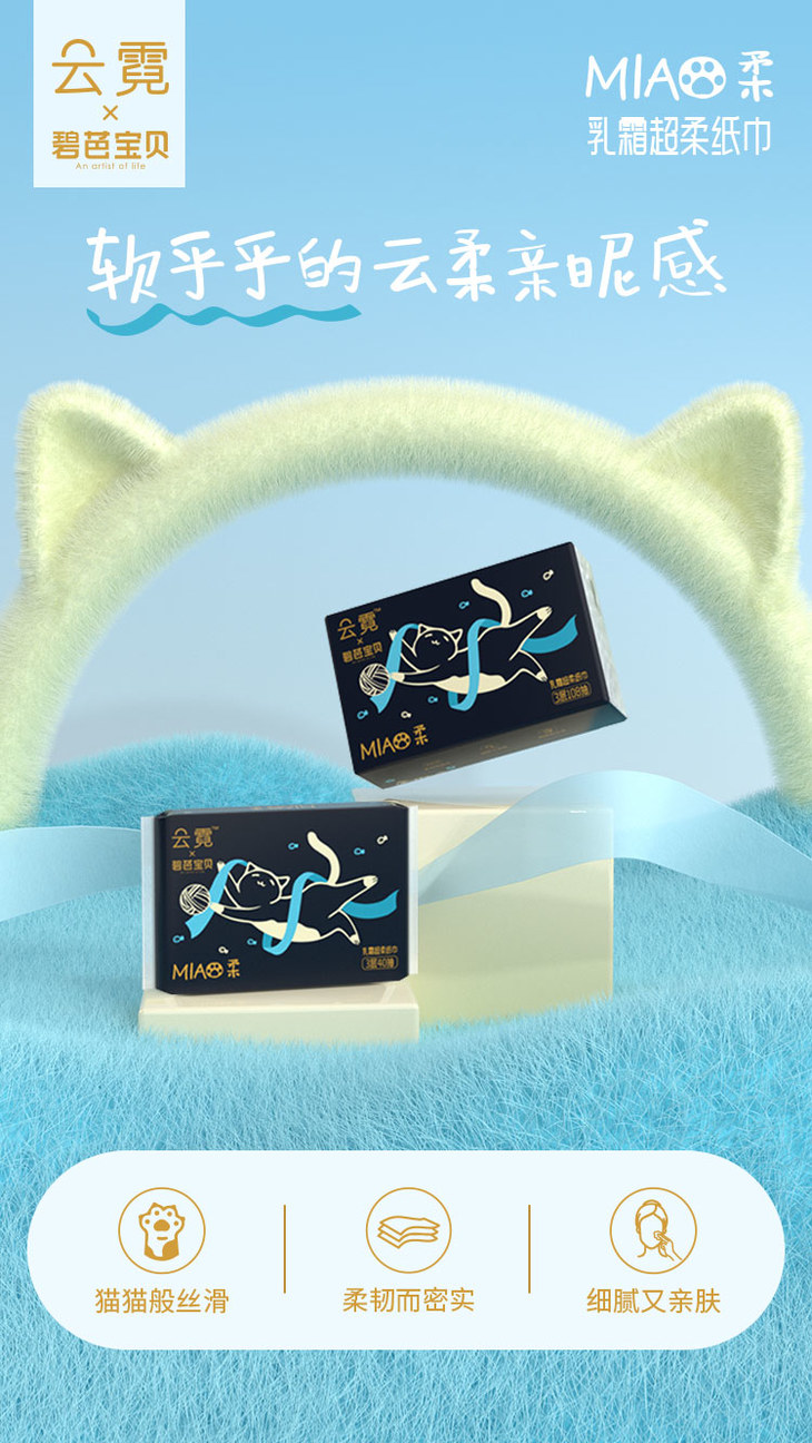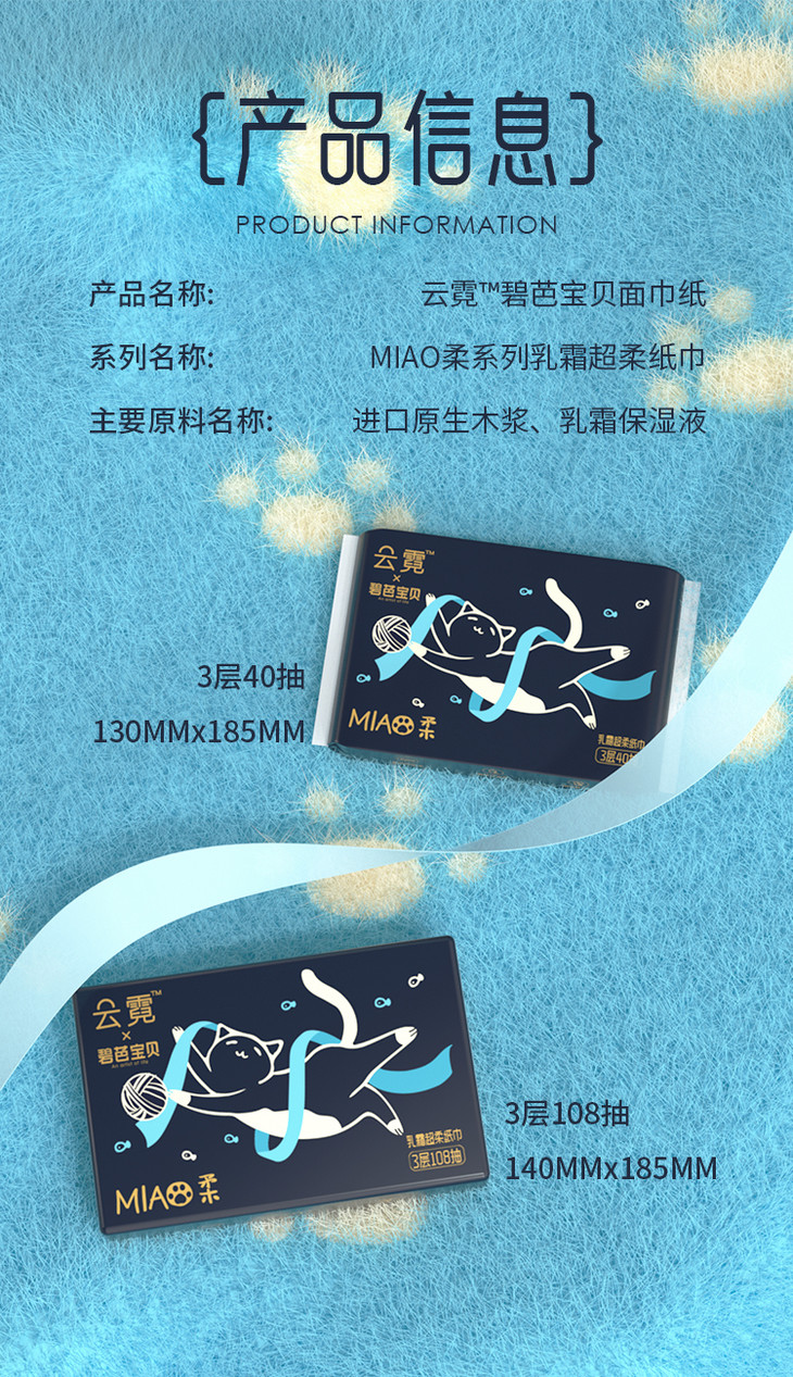 云霓 碧芭宝贝 MIAO柔系列乳霜超柔纸巾108抽3连包*4提