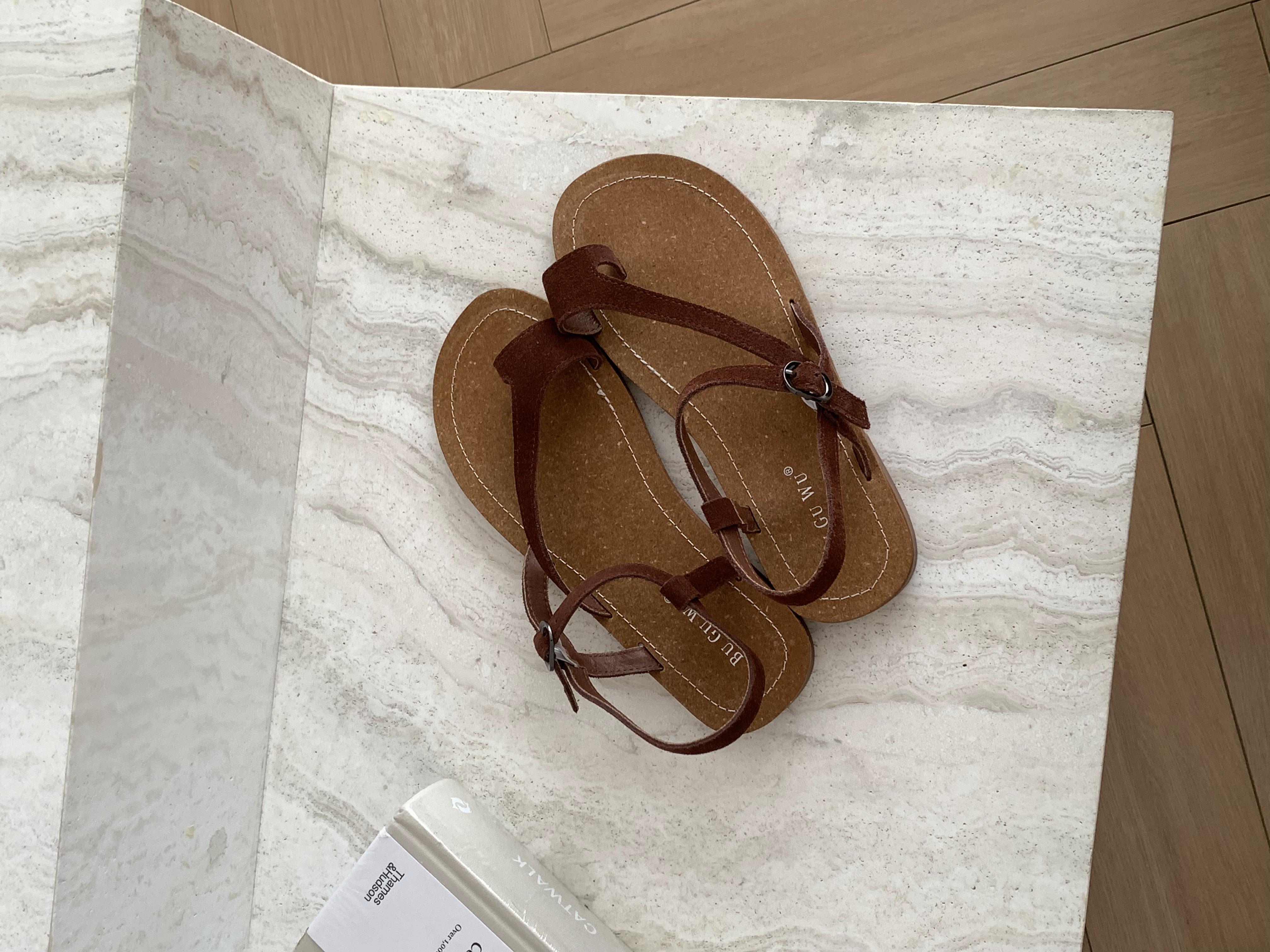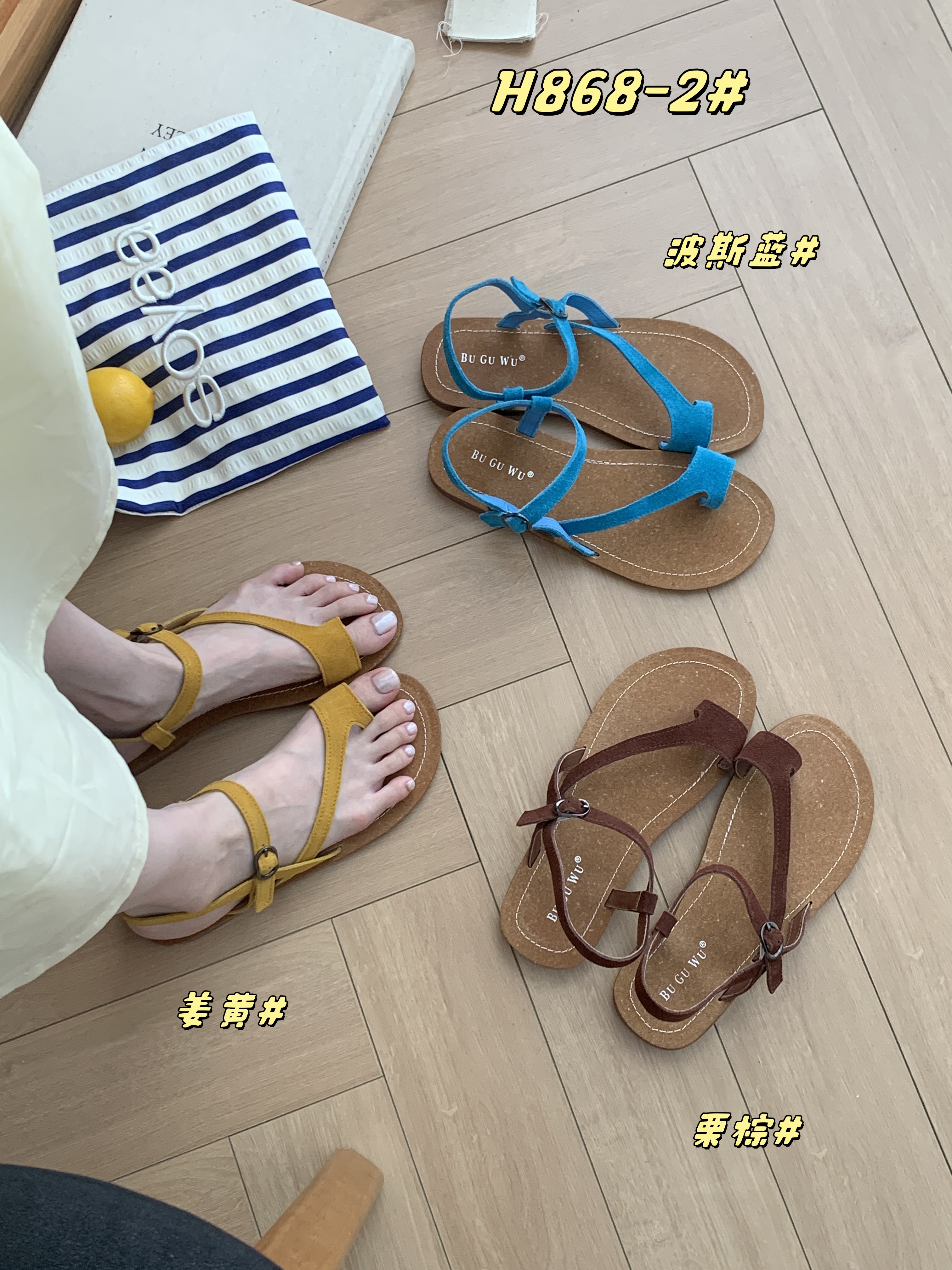 【GZ】无忧购“清仓大促”森系复古磨砂牛皮小众度假夹趾凉鞋H868-2(截单后3-5天发货)