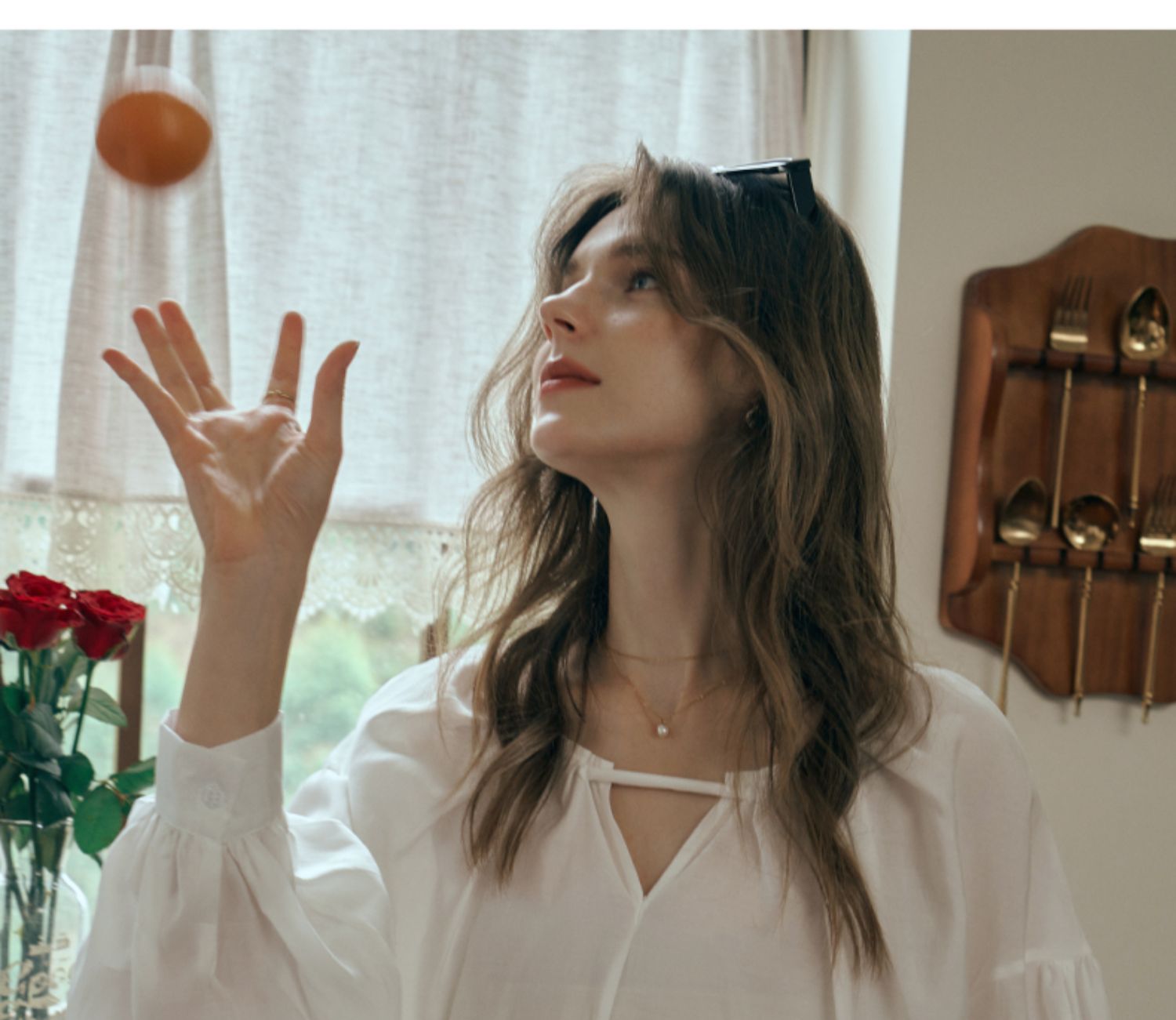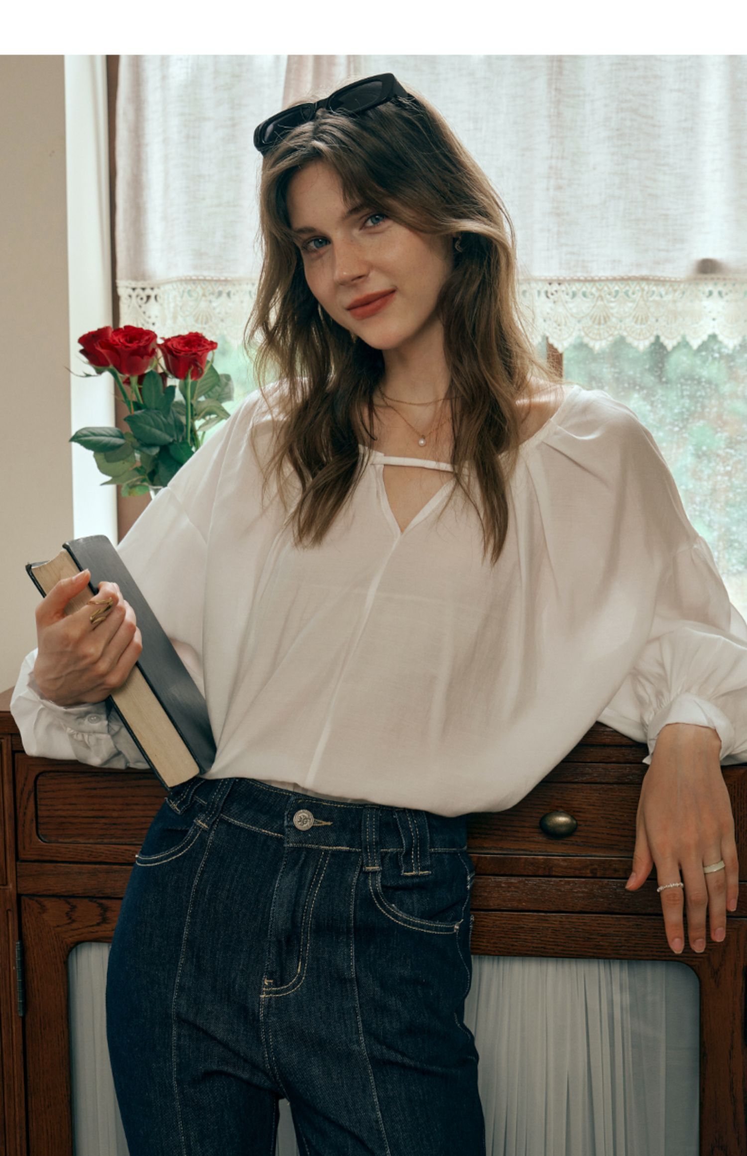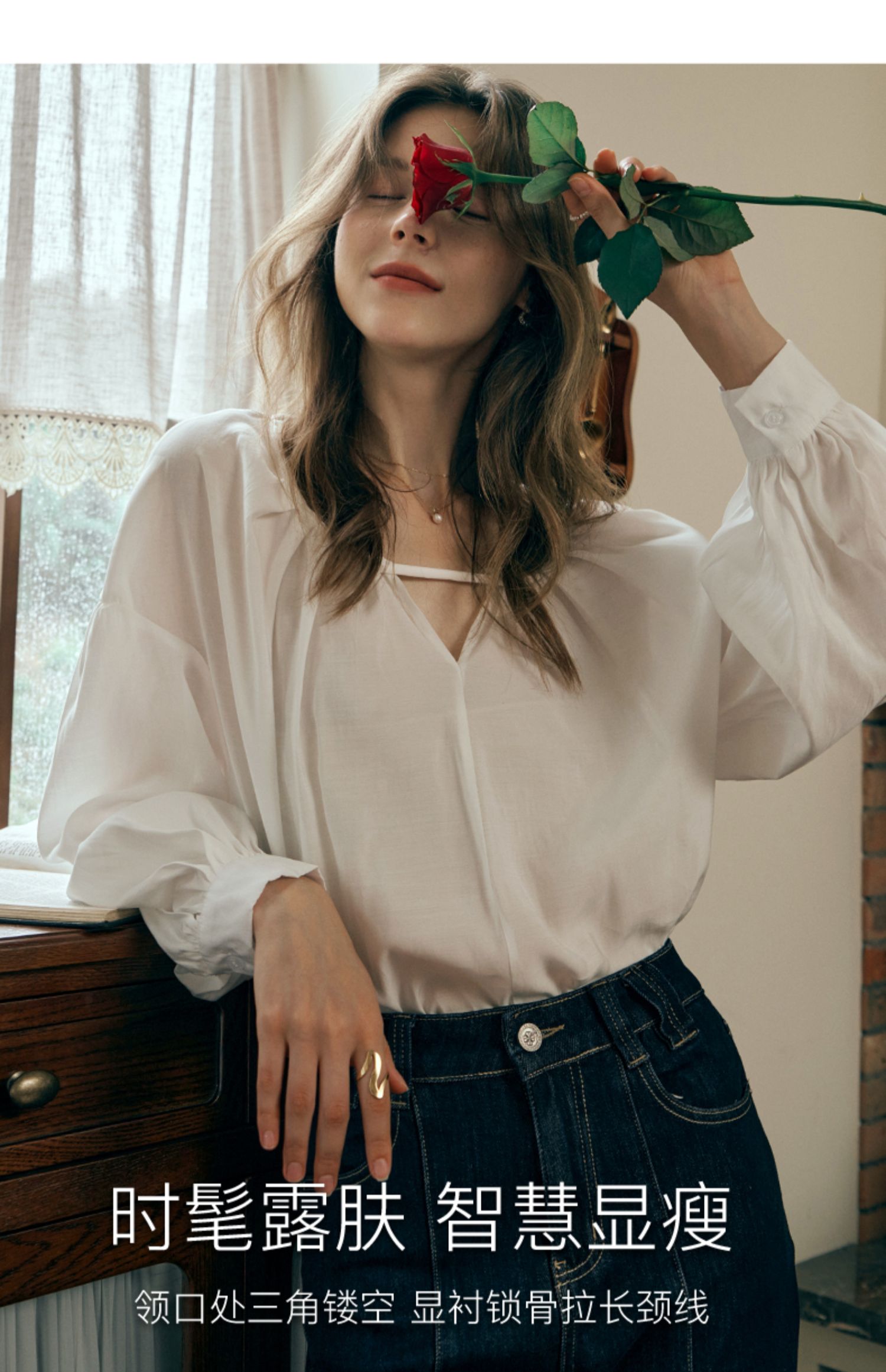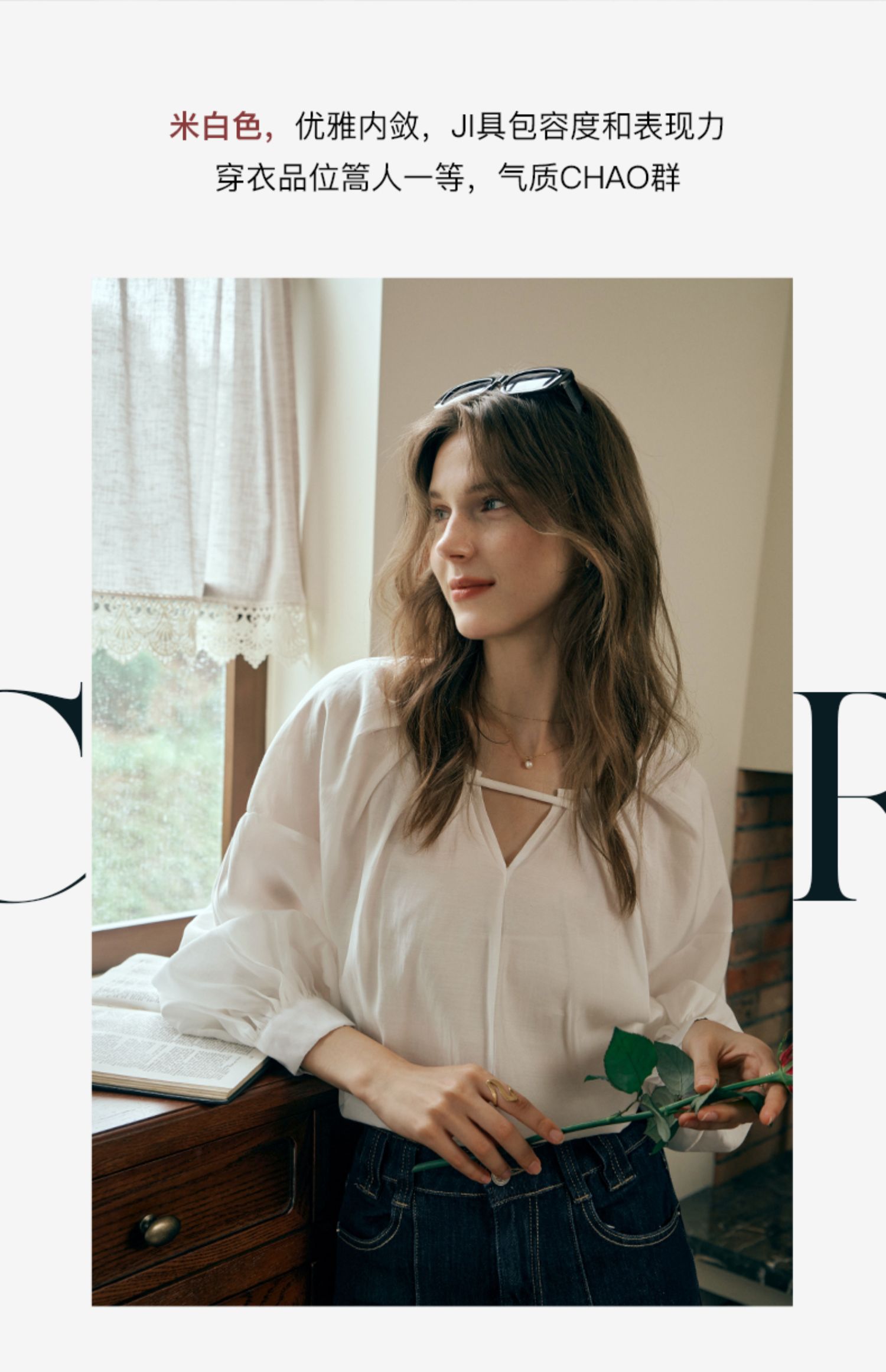 OLrain欧芮儿米白色蕾丝雪纺衫女初秋2023新款法式宽松灯笼袖小衫