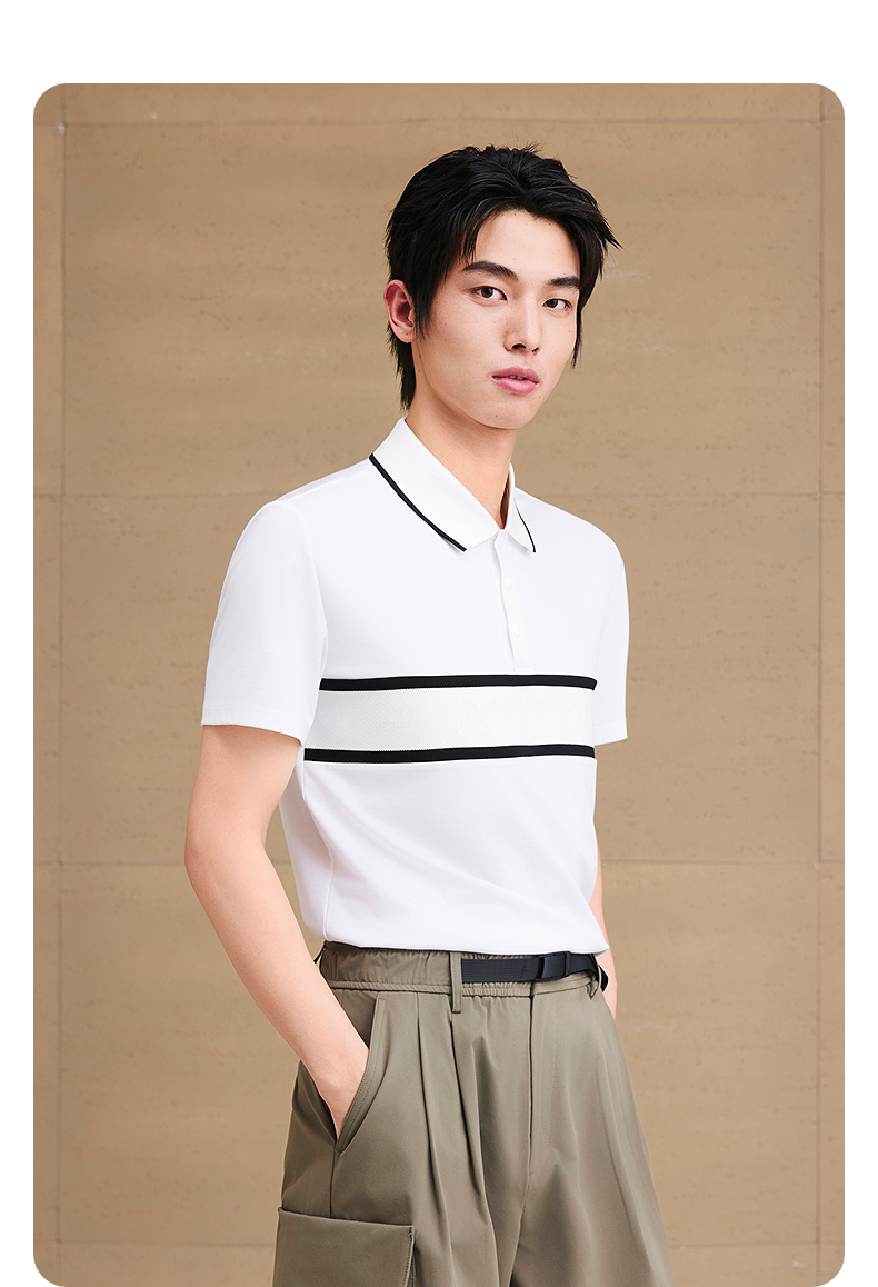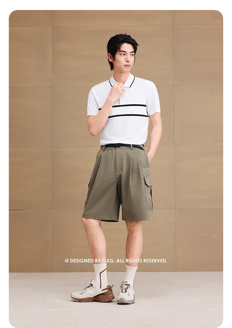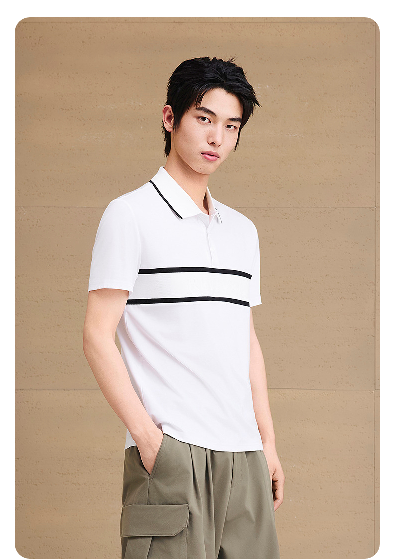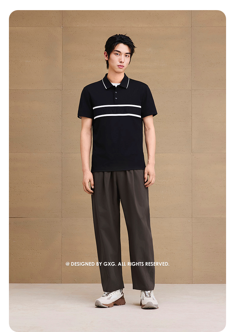 GXG男装 条纹撞色休闲polo衫男士简约翻领运动短袖 25夏新品