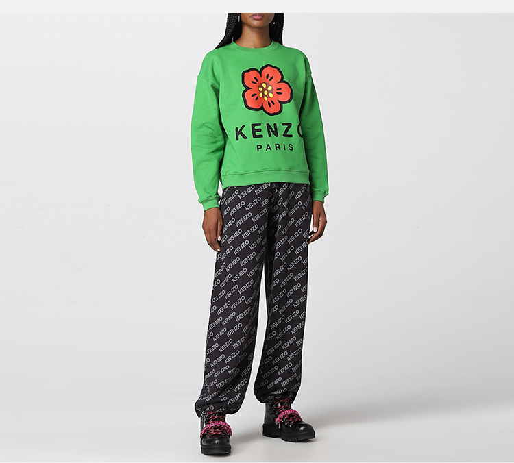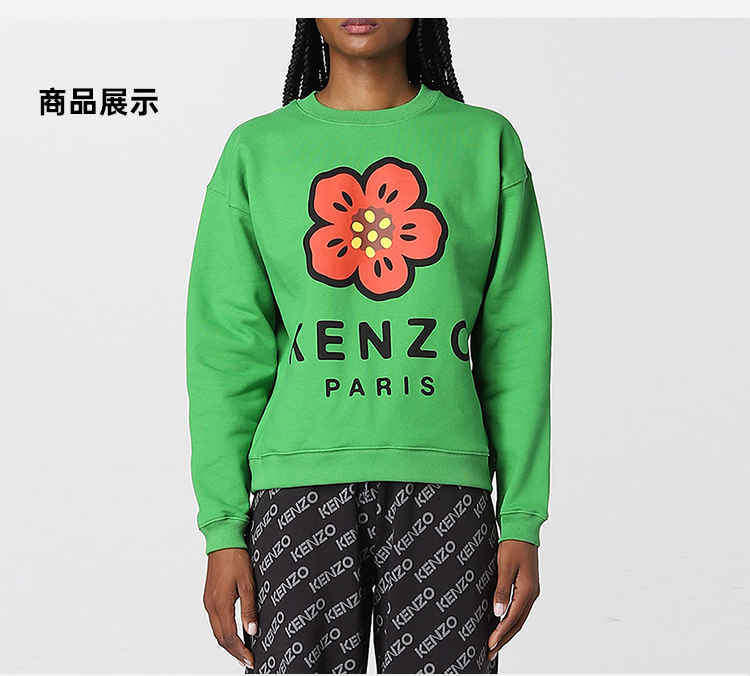 KENZO 高田贤三 女士棉质字母花徽标印花圆领长袖卫衣 绿色 FC62 SW011 4ME 57