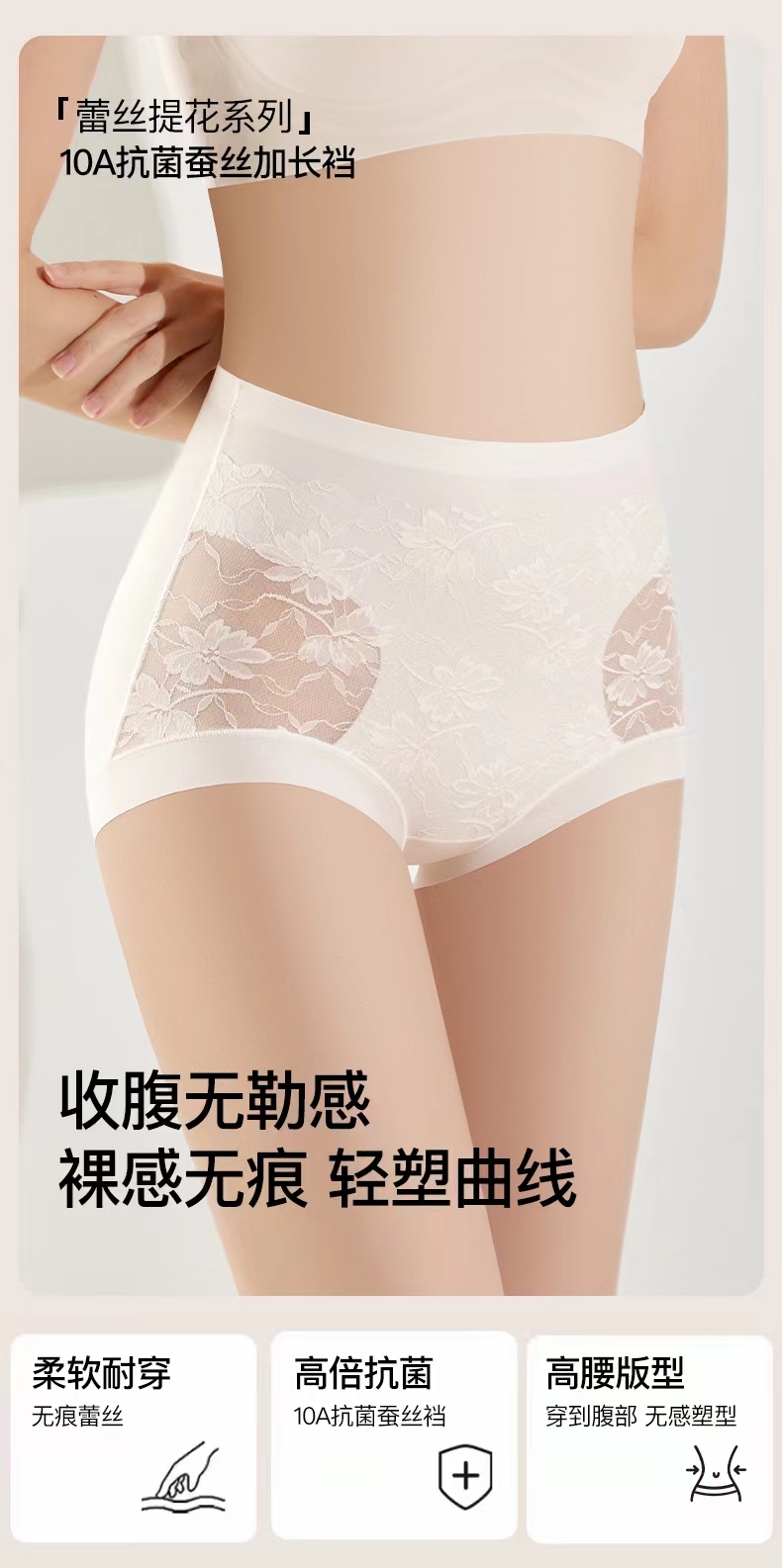 【多妈团购 婷美同款收腹内裤4条装】10A级桑蚕丝内裆,呵护私处健康,蕾丝拼接,提拉腹部赘肉,塑造细瘦腰身!弹力超足贴合曲线-安嘉
