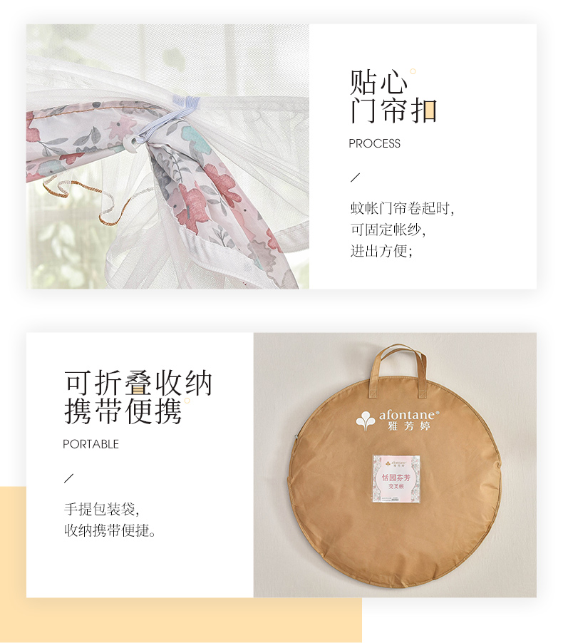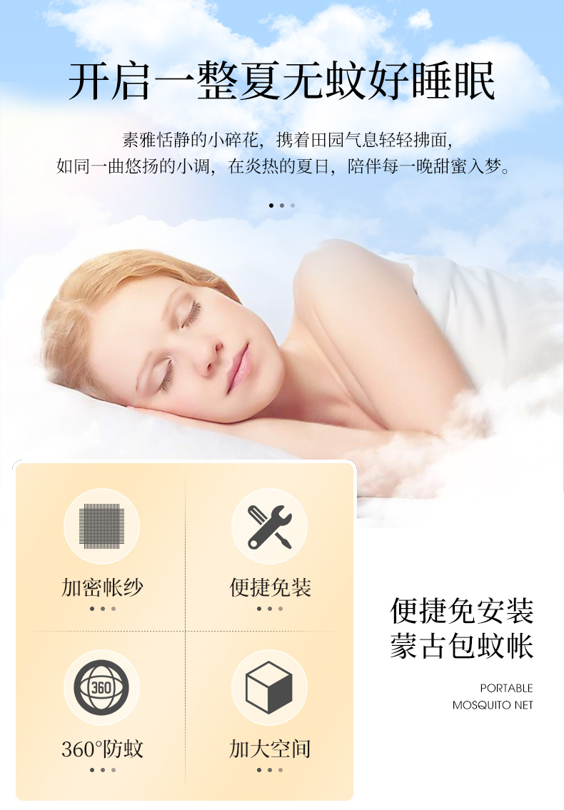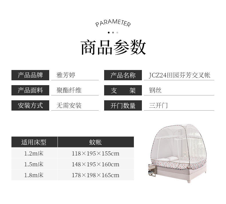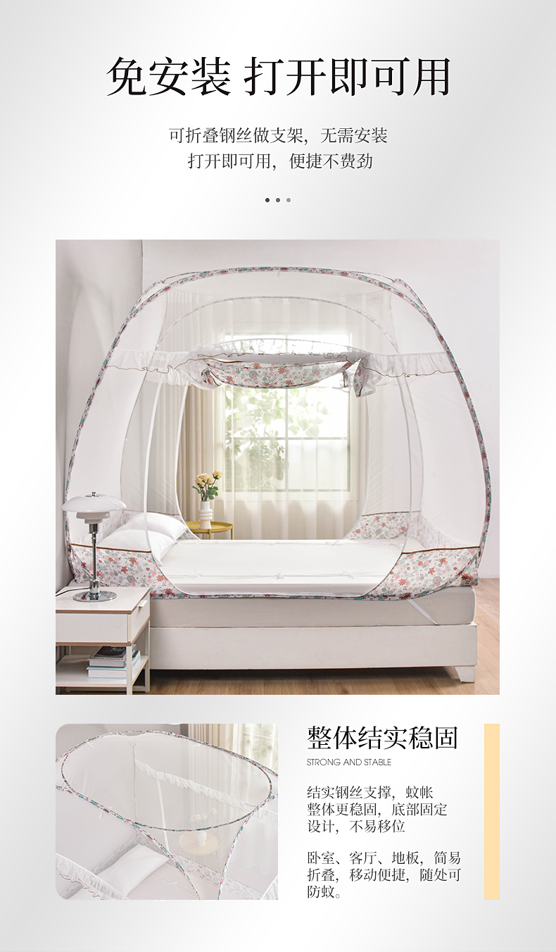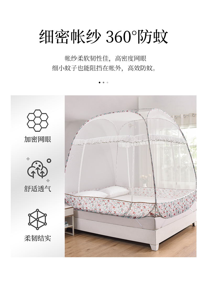 雅芳婷2024新款蒙古包蚊帐家用免安装卧室学生宿舍儿童防摔三开门