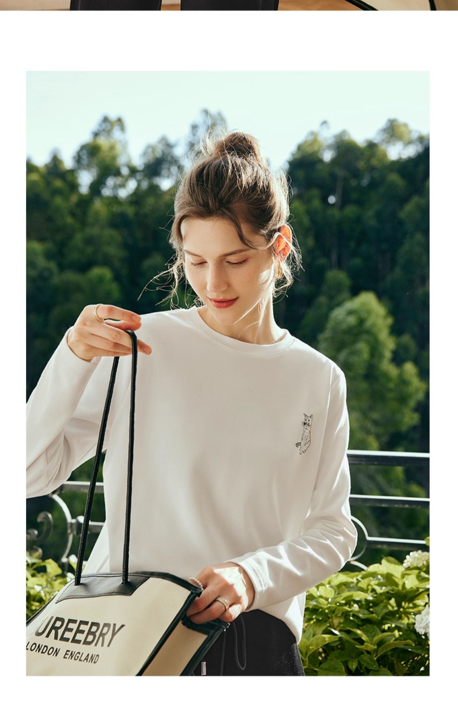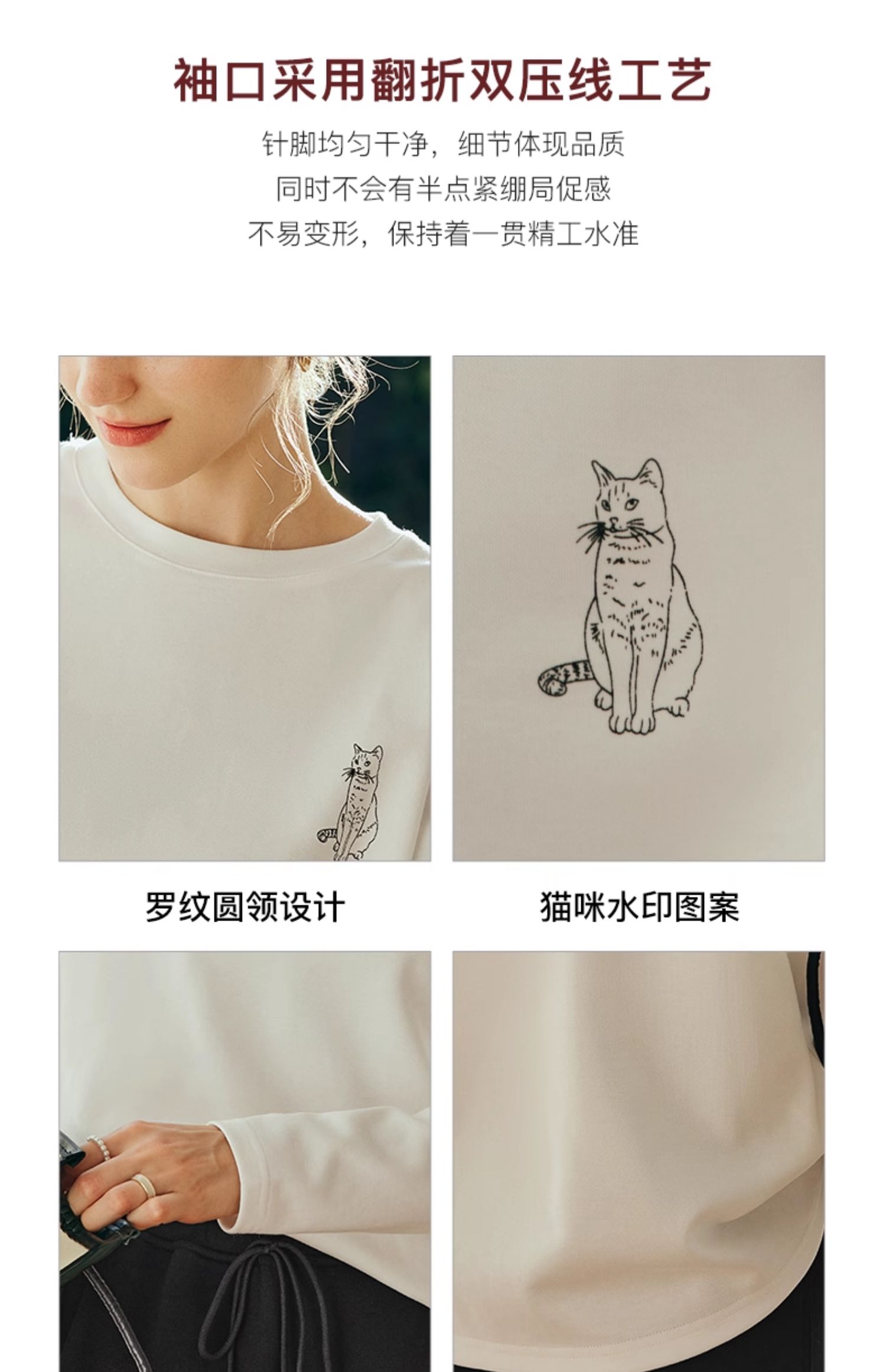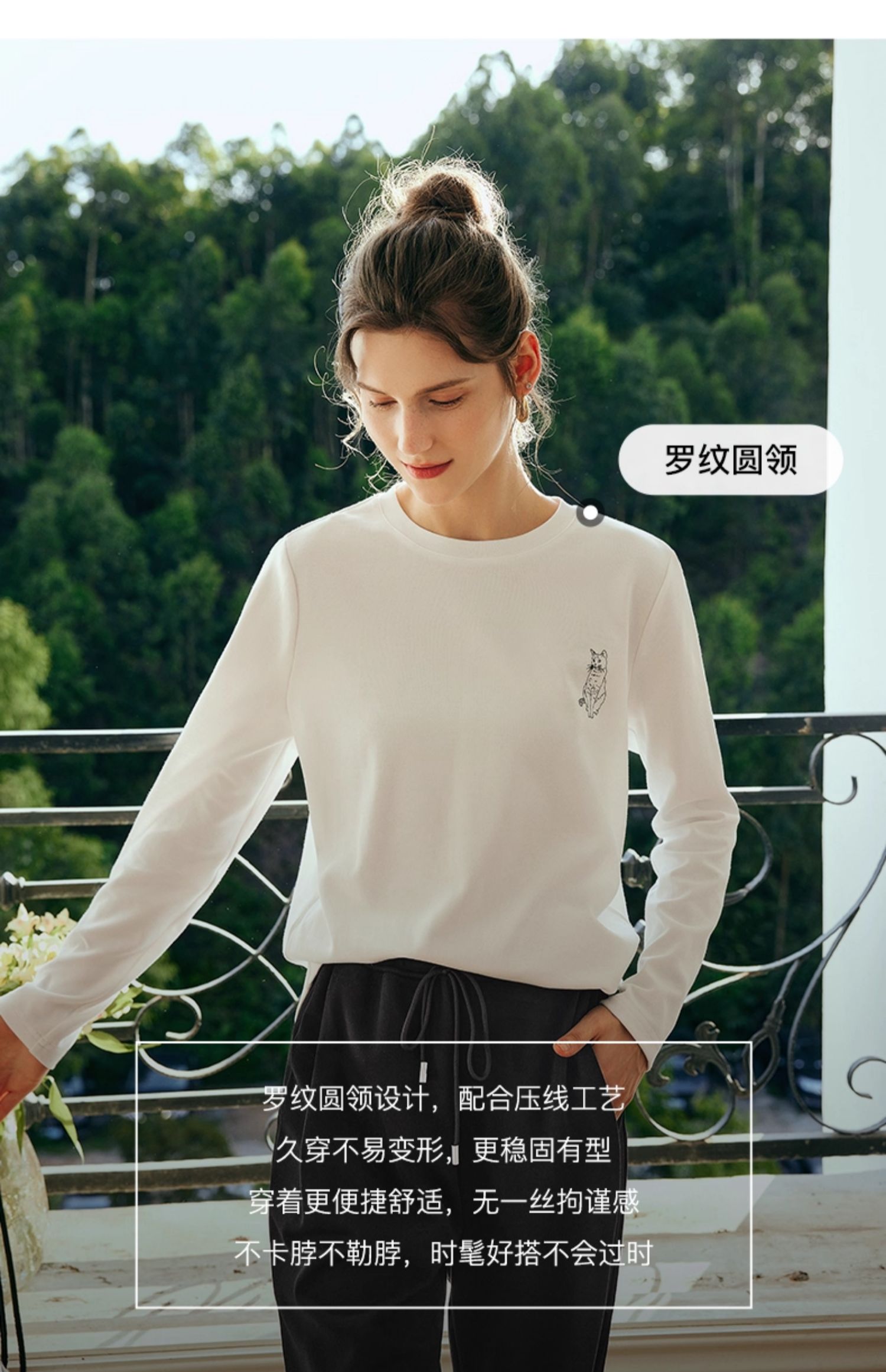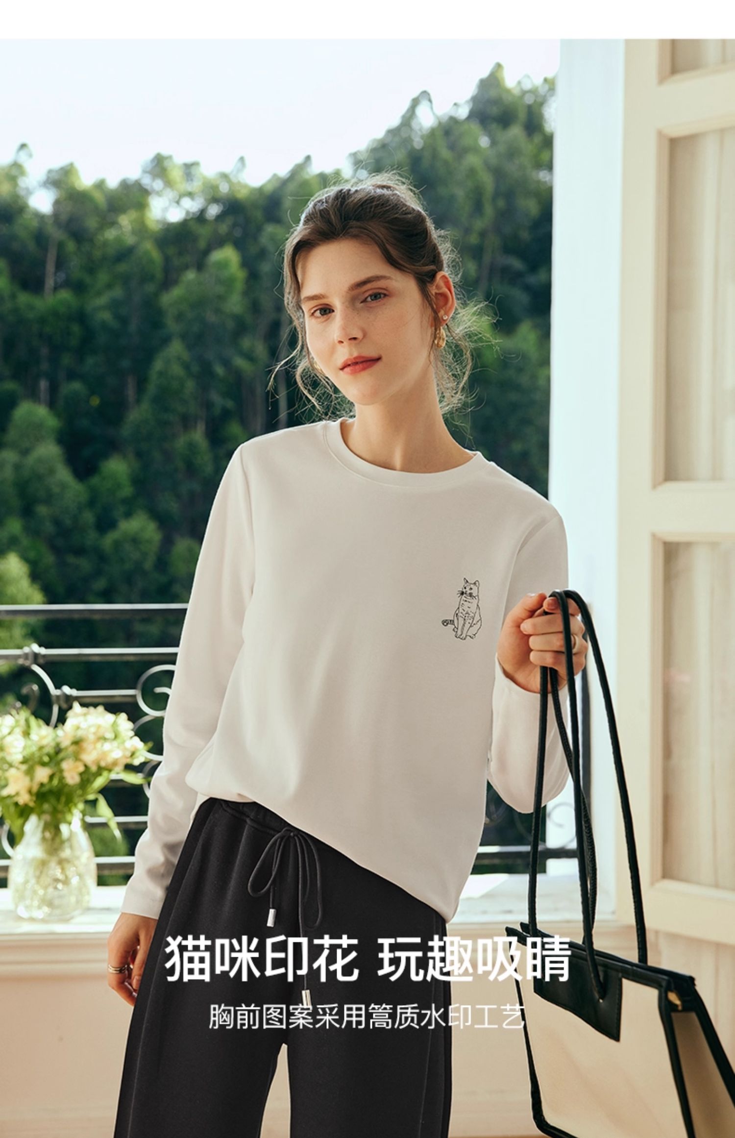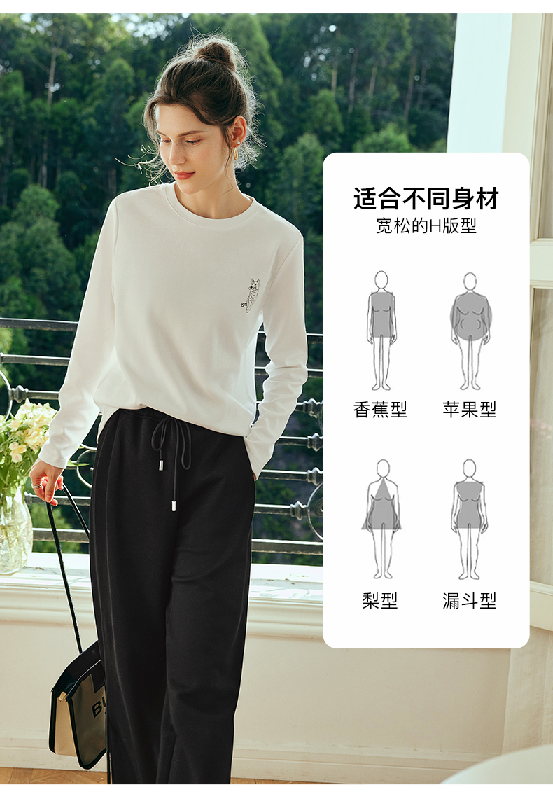 OLrain欧芮儿法式白色长袖T恤女秋季2025年新款宽松趣味水印上衣