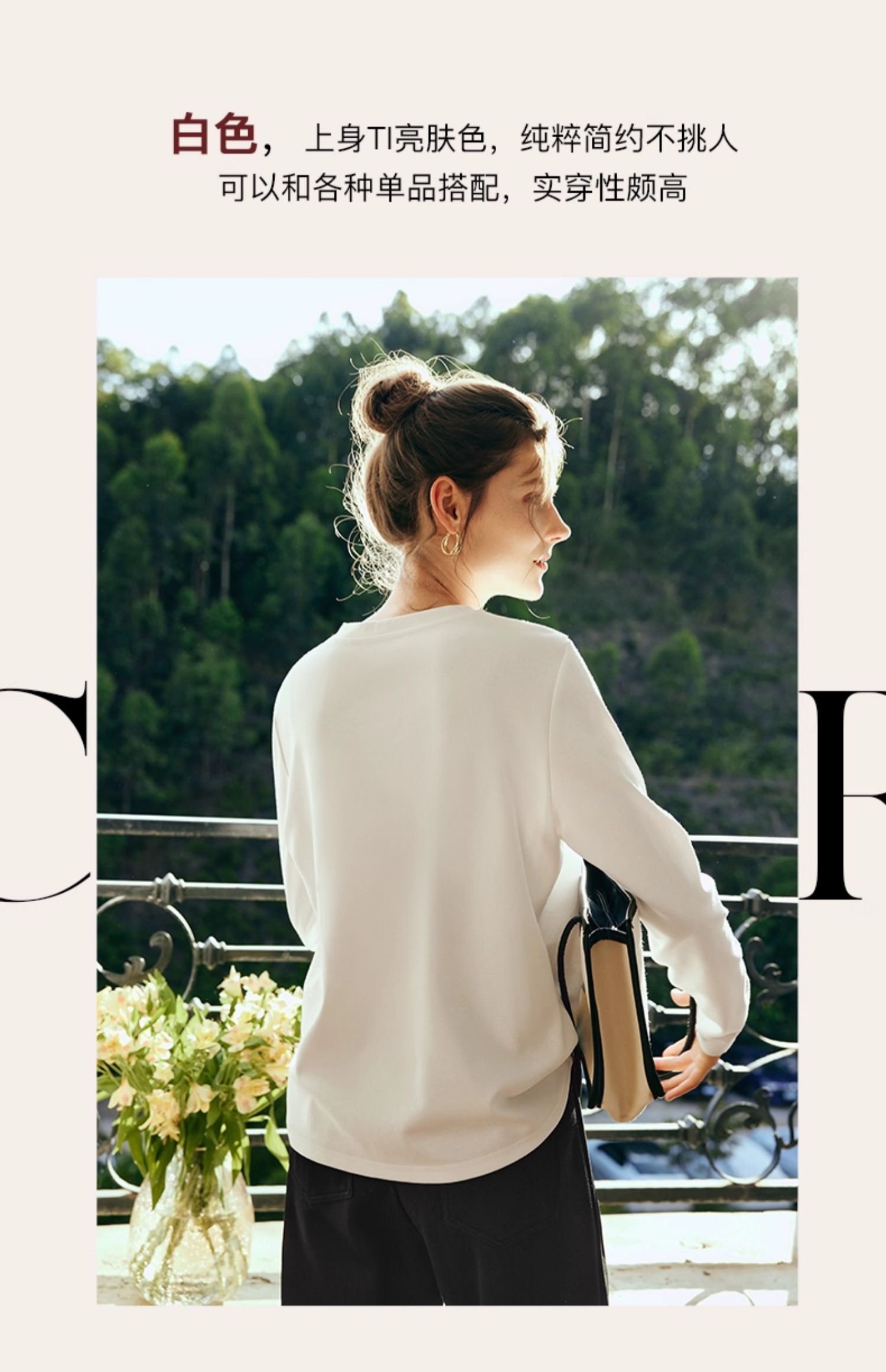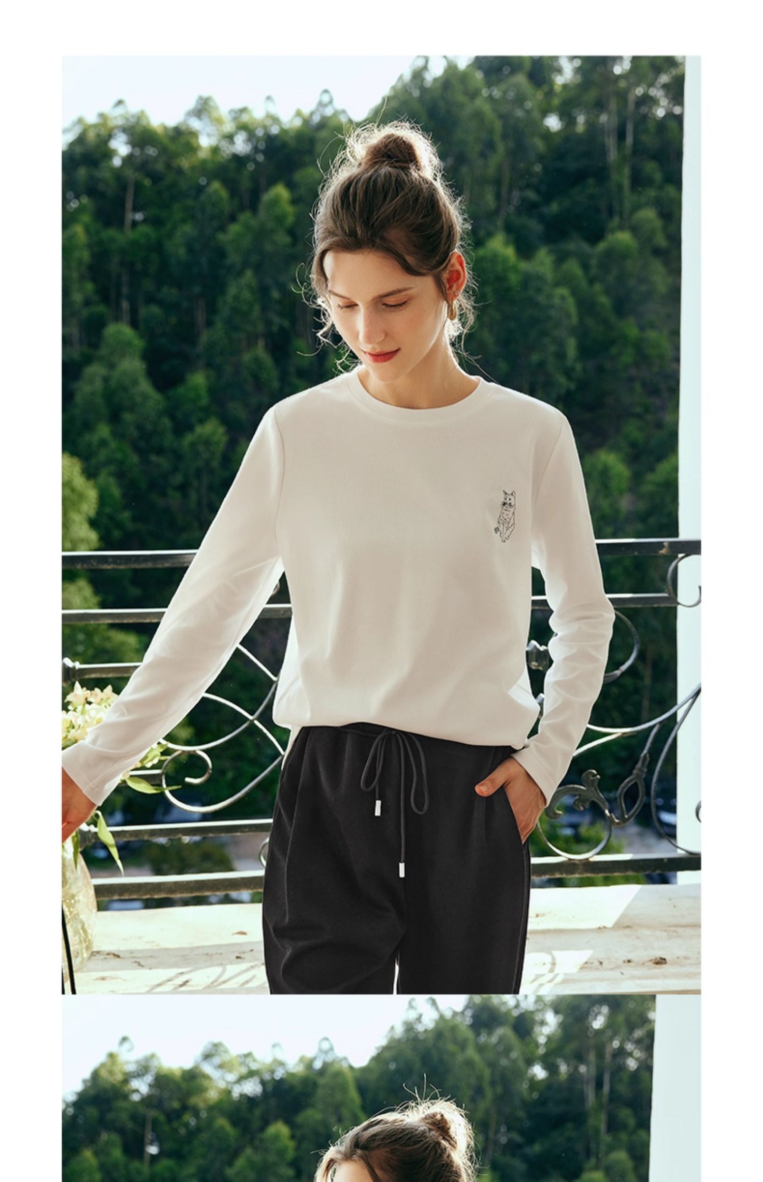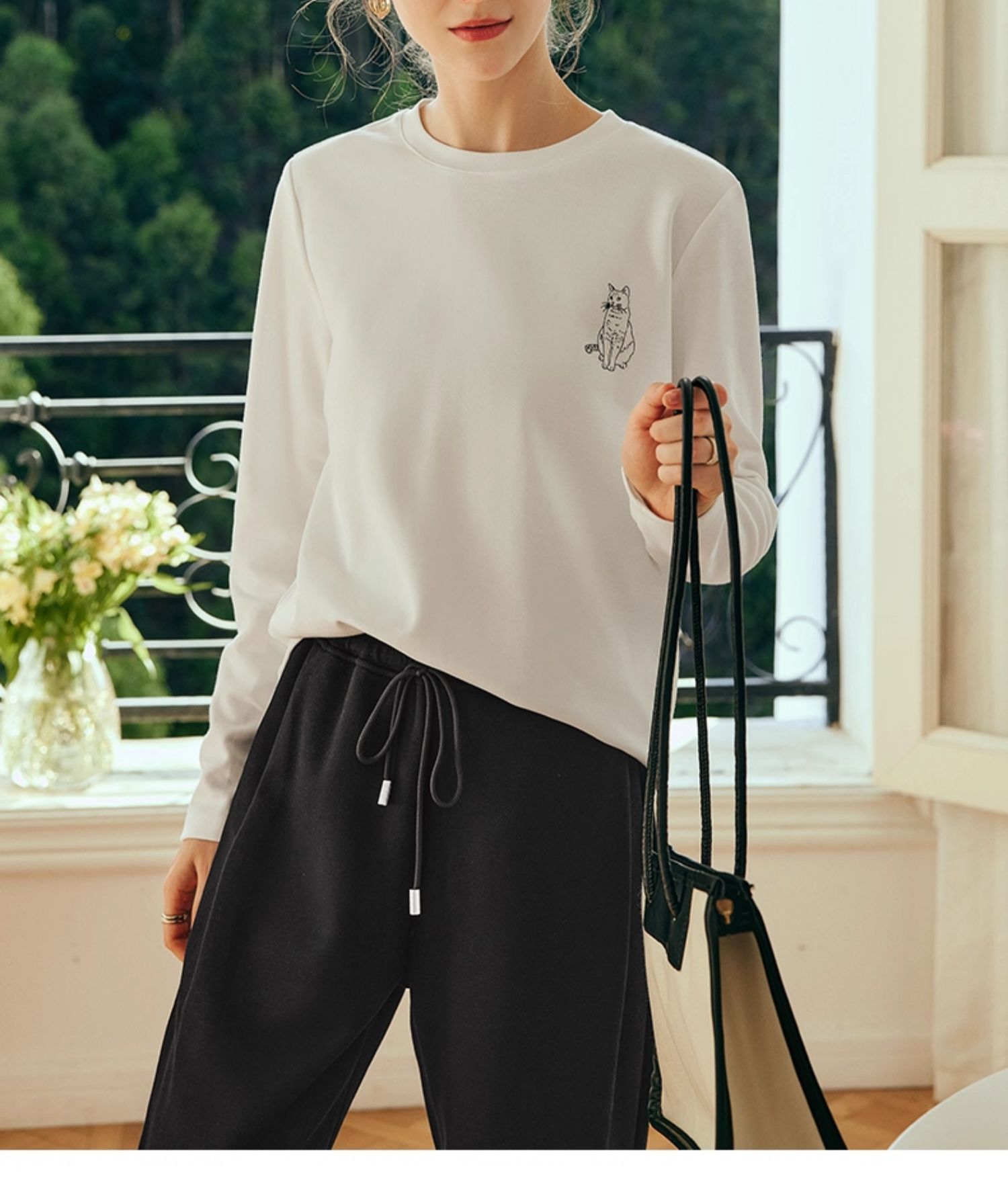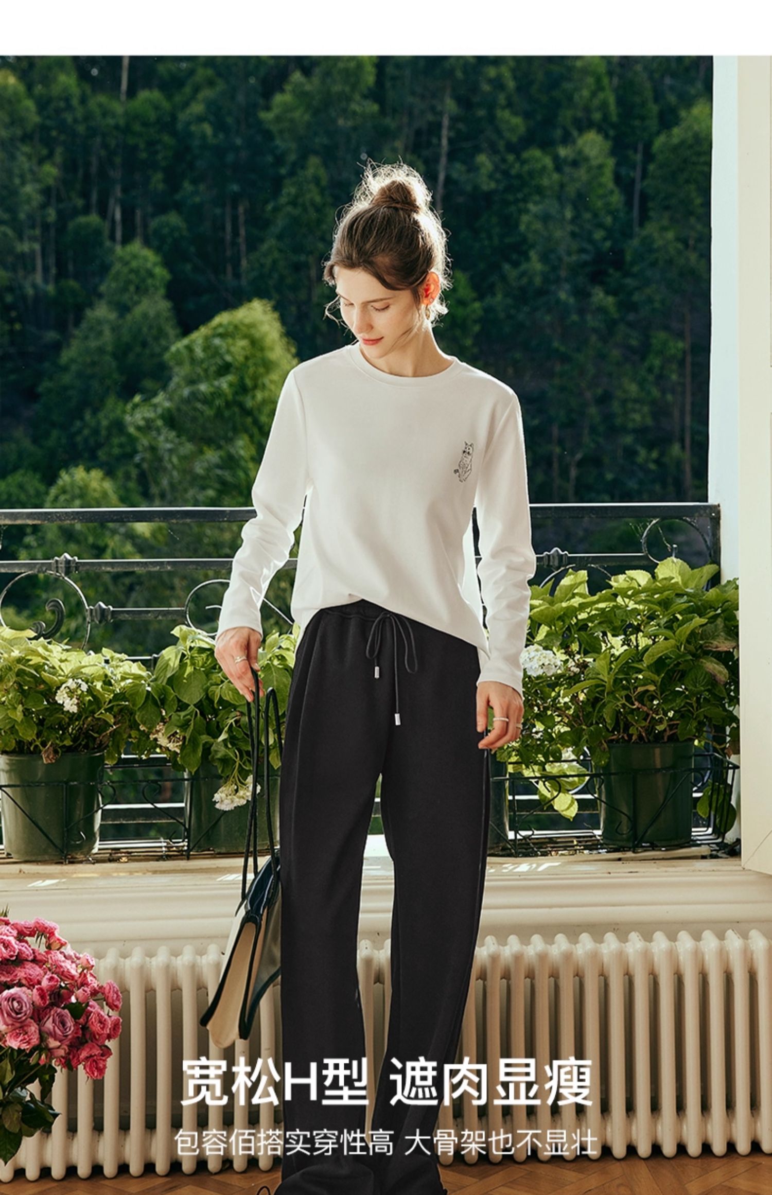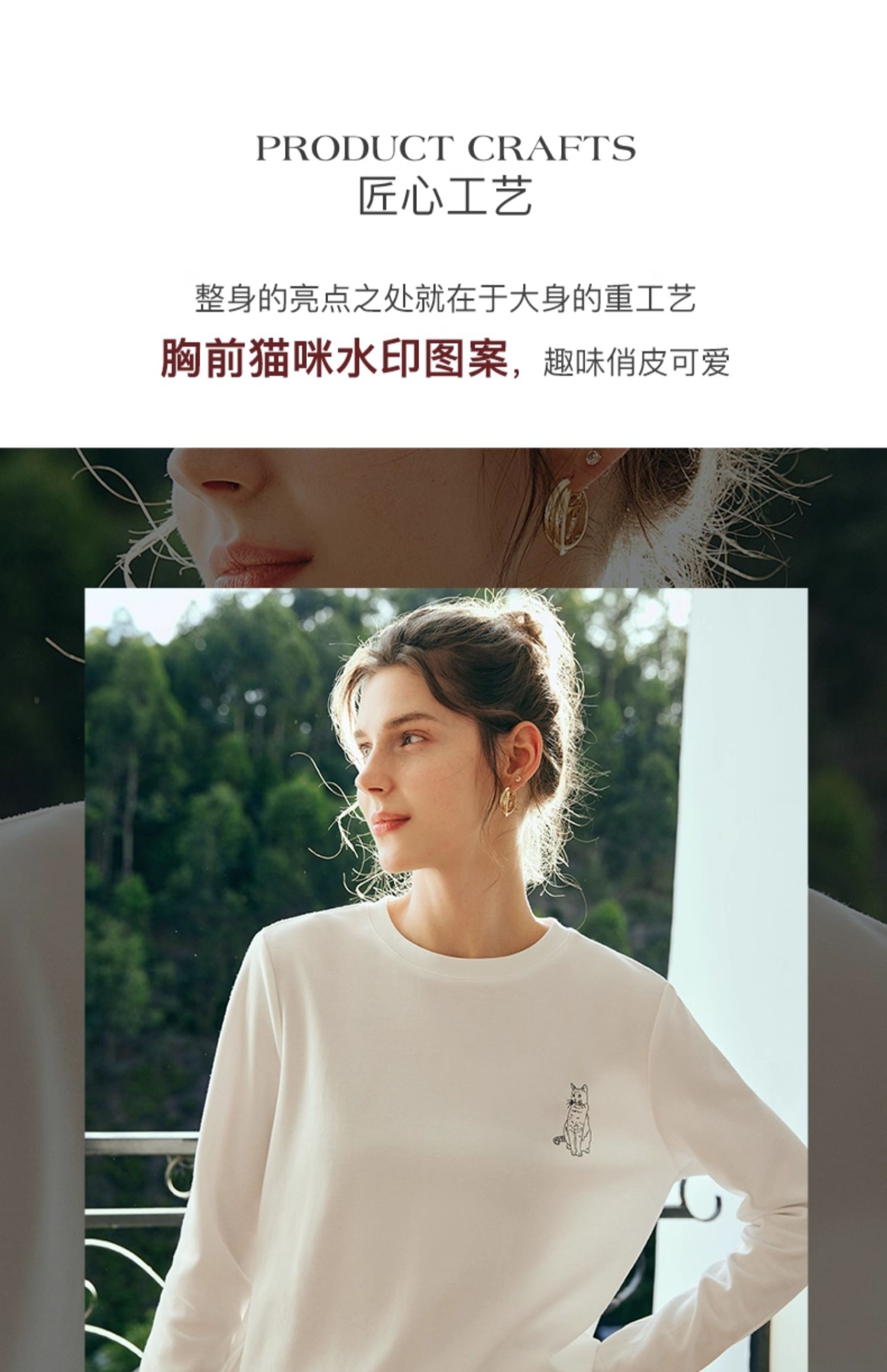 OLrain欧芮儿法式白色长袖T恤女秋季2025年新款宽松趣味水印上衣