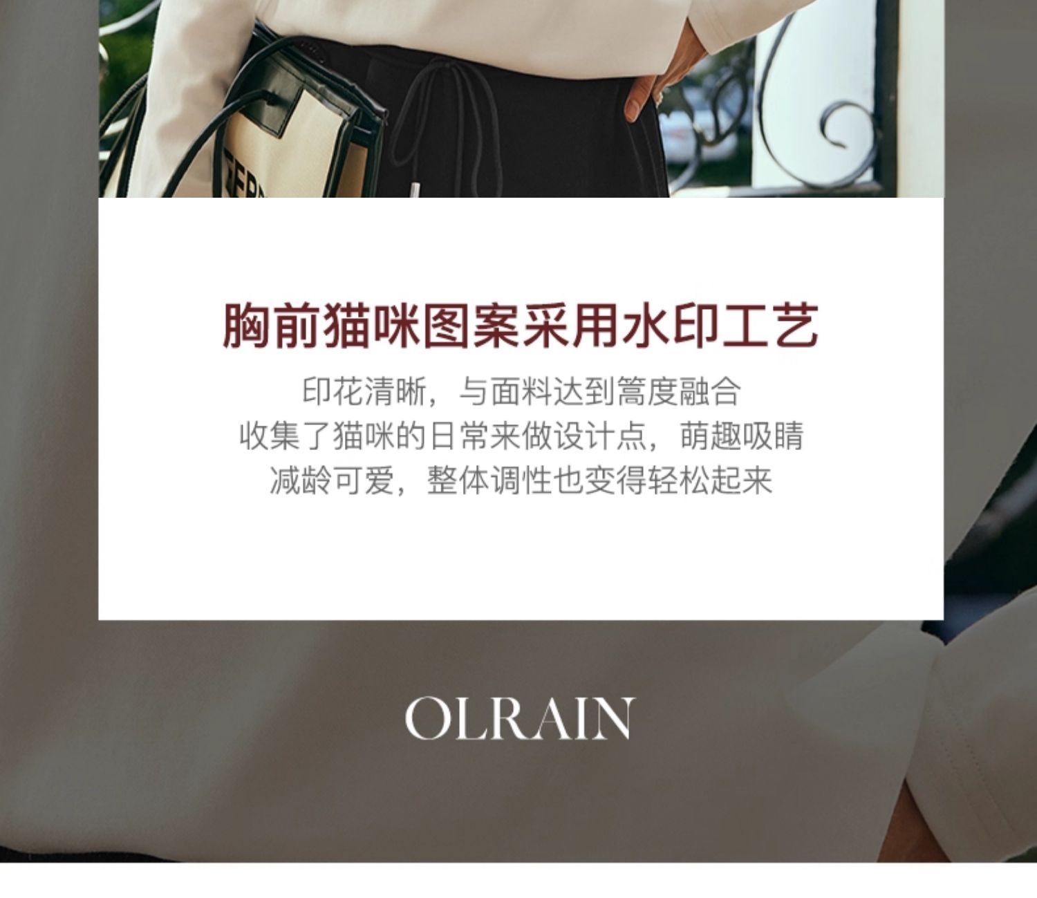 - “精致”是欧芮儿olrain品牌文化的核心,欧芮儿认为,精致的女人,不但要外在动人,更要内在迷人,内外兼修,有魅力、有气质、有内涵,自信而不自傲,优雅而不矫揉,自有万种风情而不轻浮,更不故作矜持。