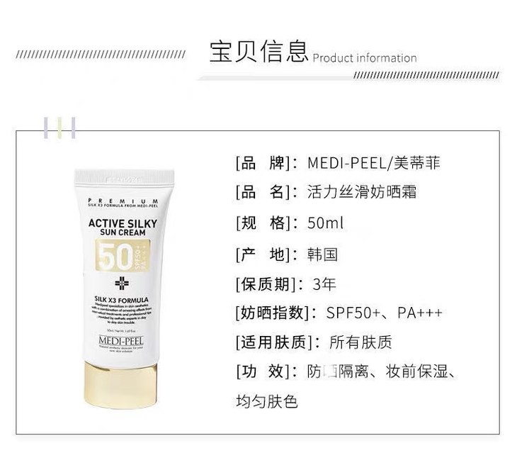 MEDI-PEEL/美蒂菲韩国防晒修复隔离霜面部长效防水隔离SPF50美白50ml/支