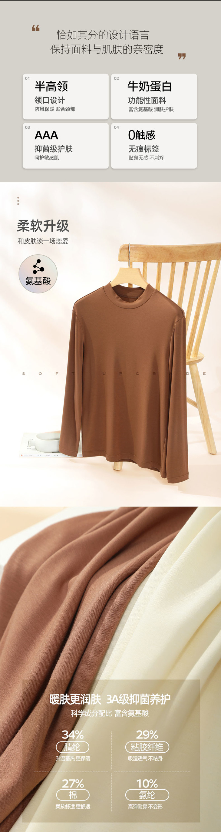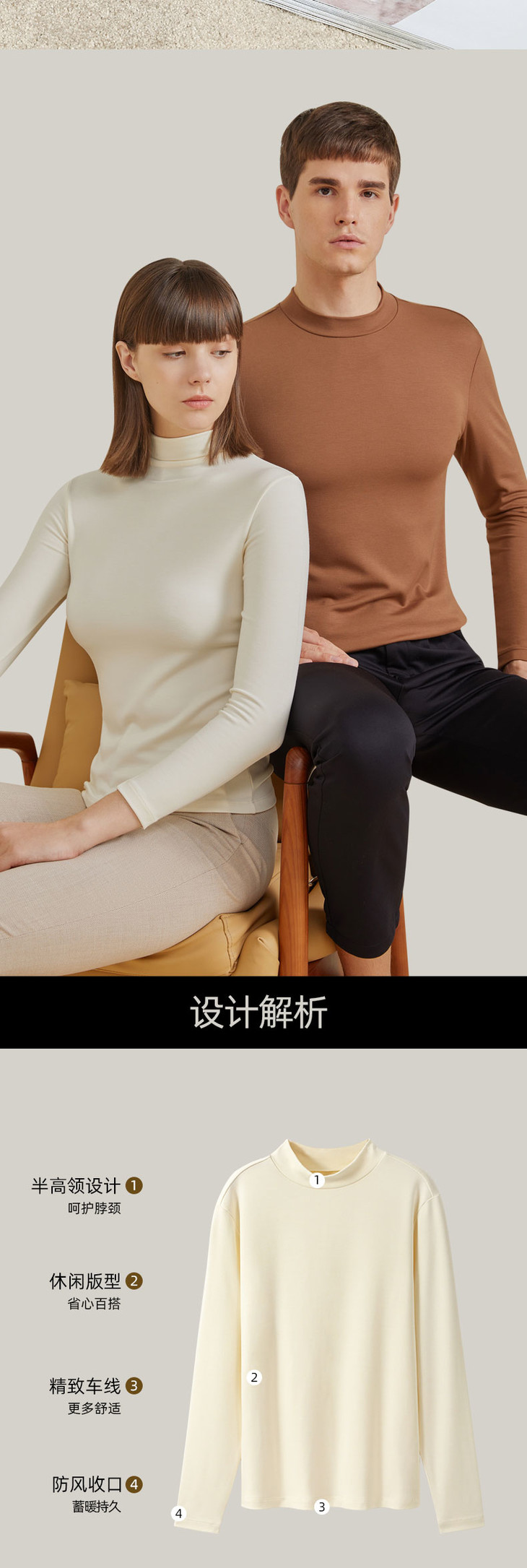 皮尔卡丹牛奶男女半高领打底衫