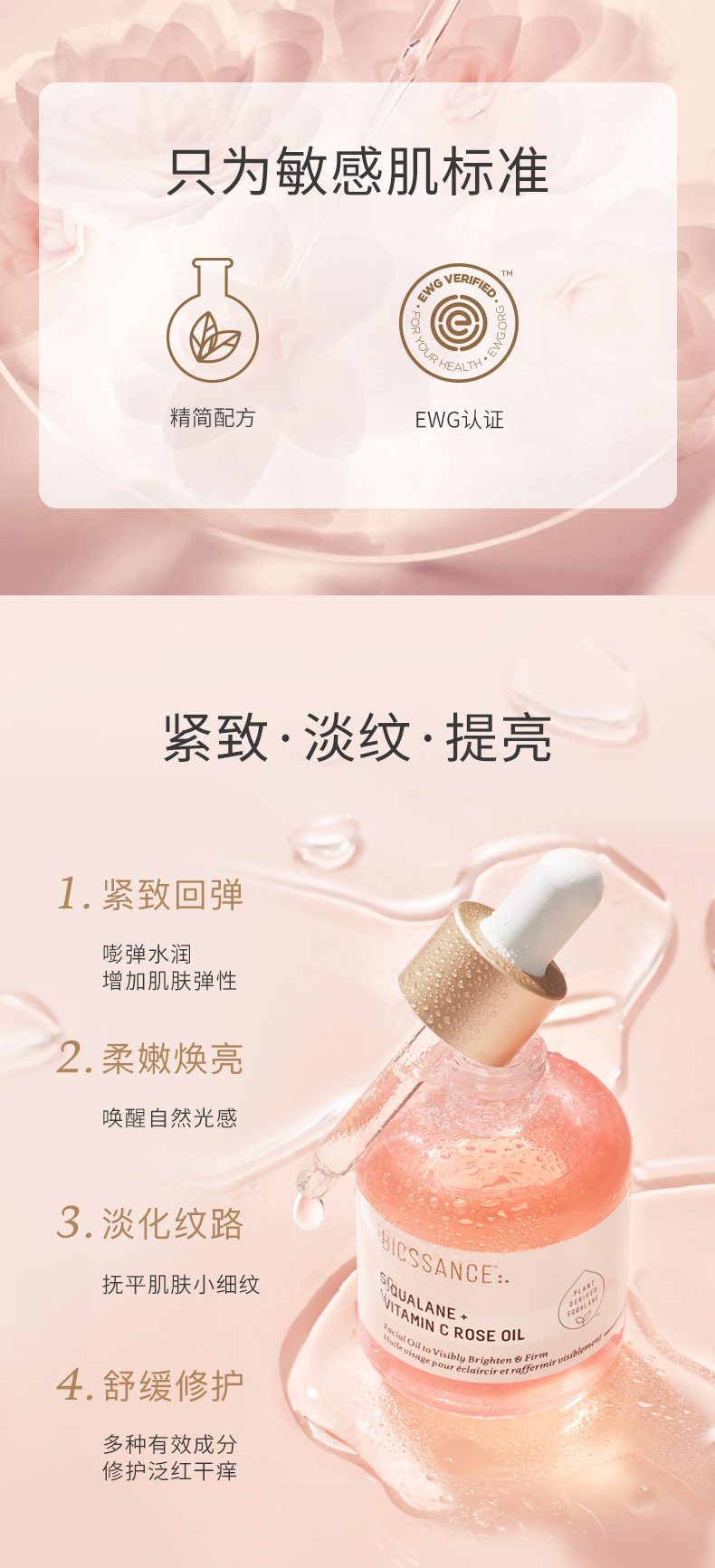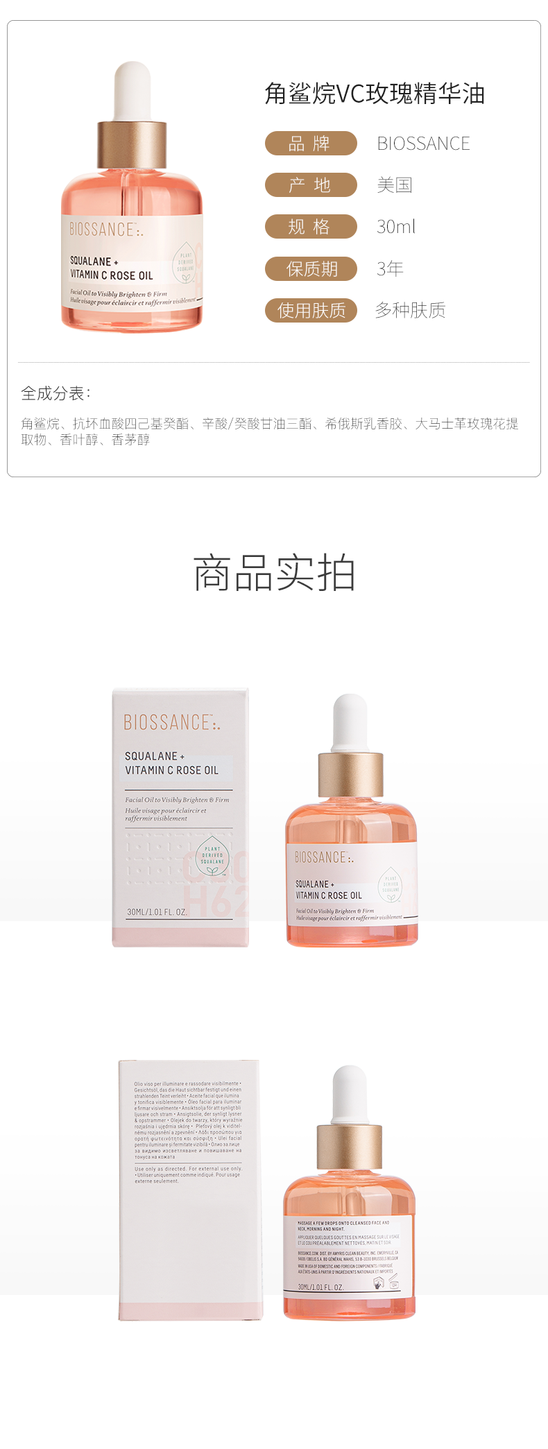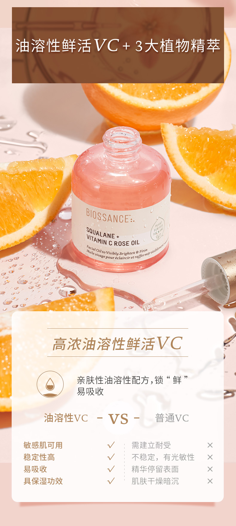 保税直发 BIOSSANCE 角鲨烷玫瑰VC精华油 30mL